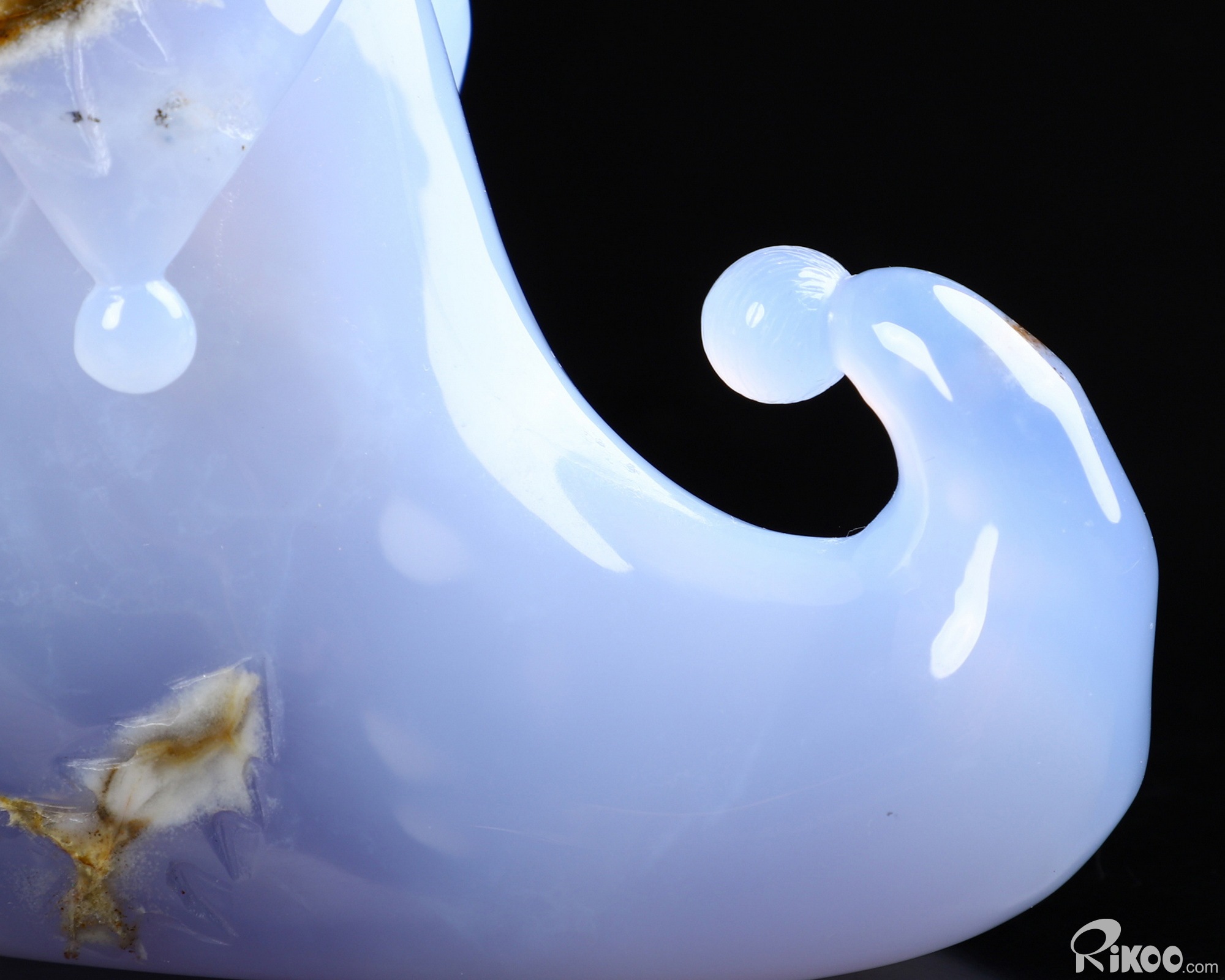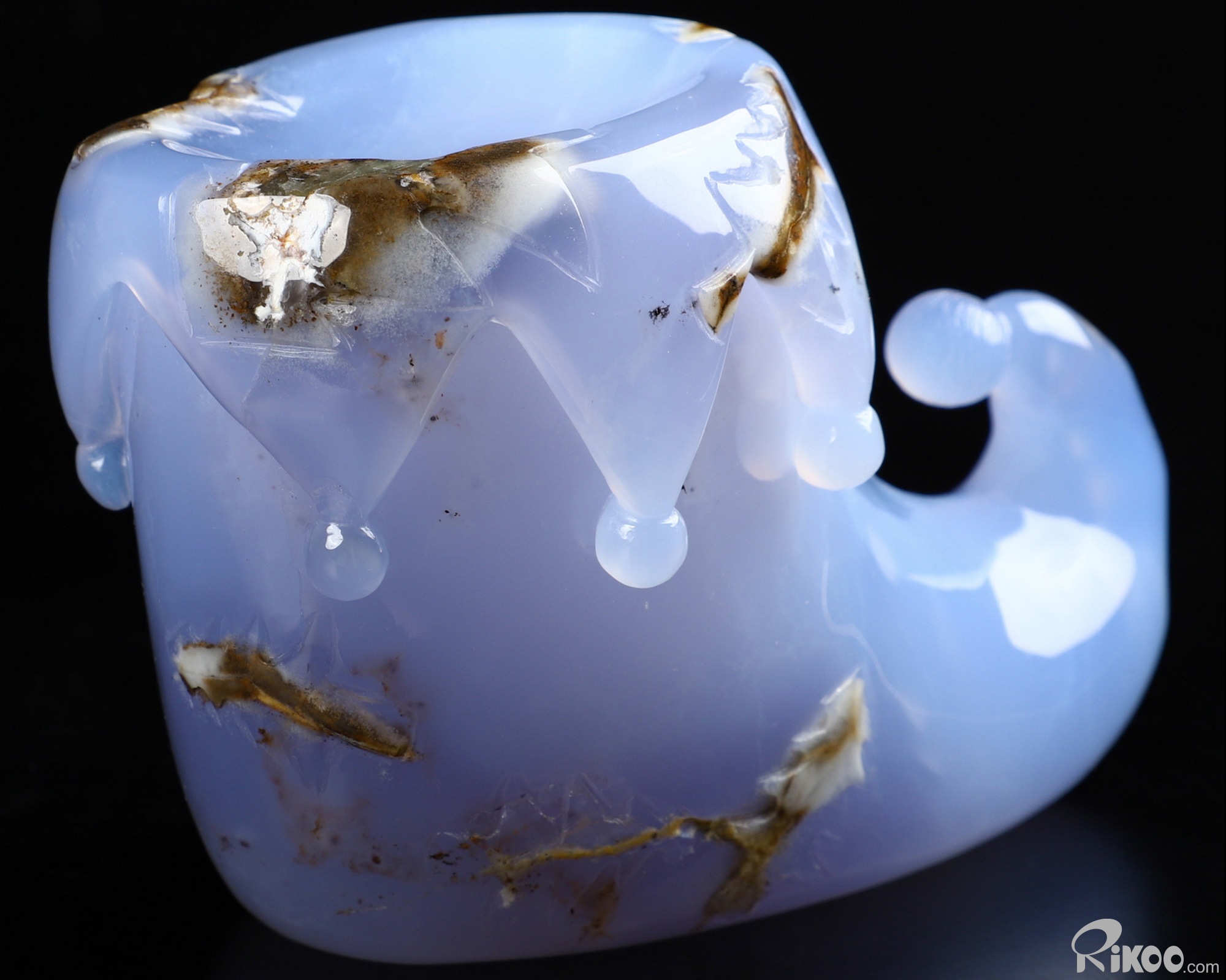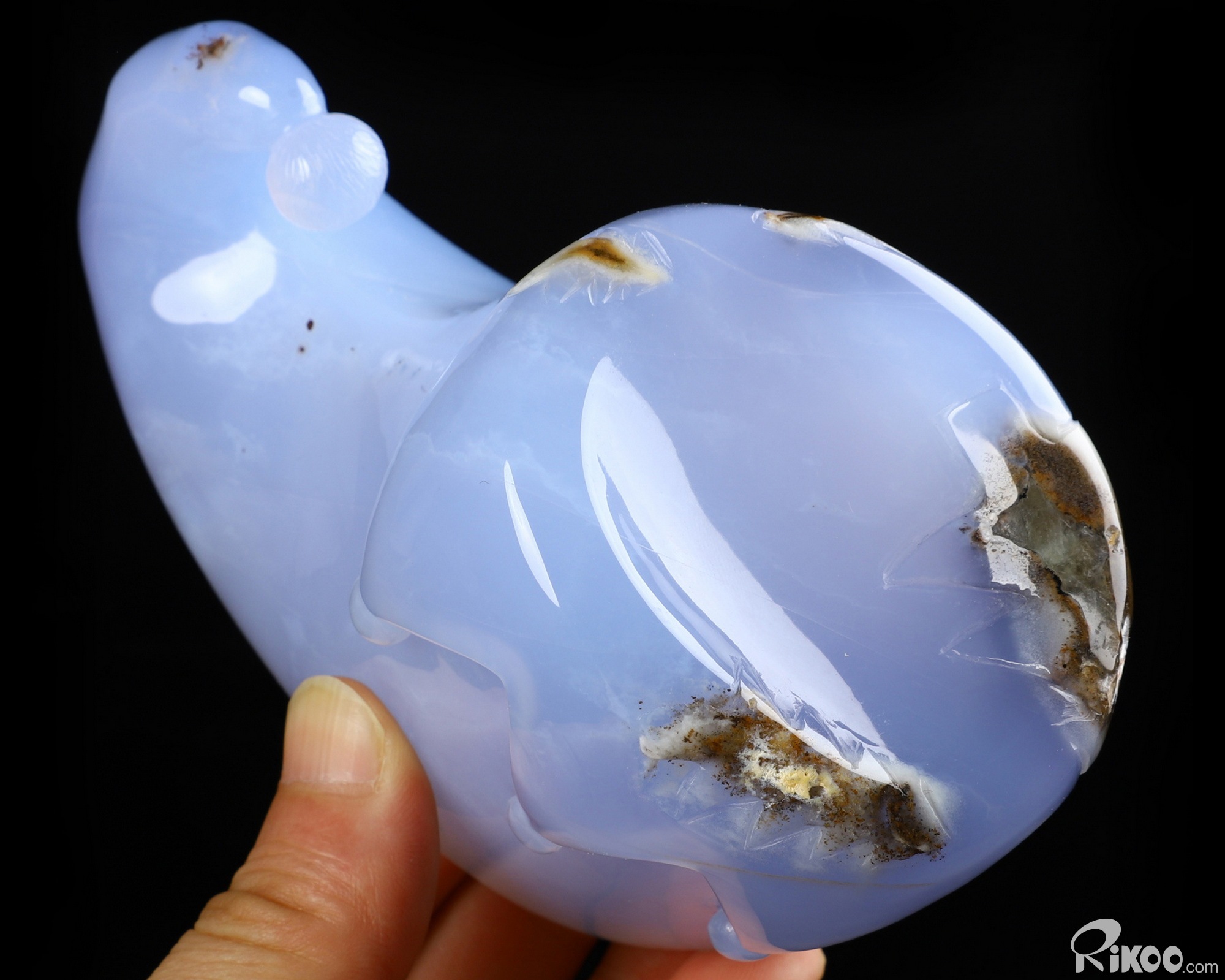 You are looking at a Blue Chalcedony skull. The skull is 5.1 inches long from front to back.