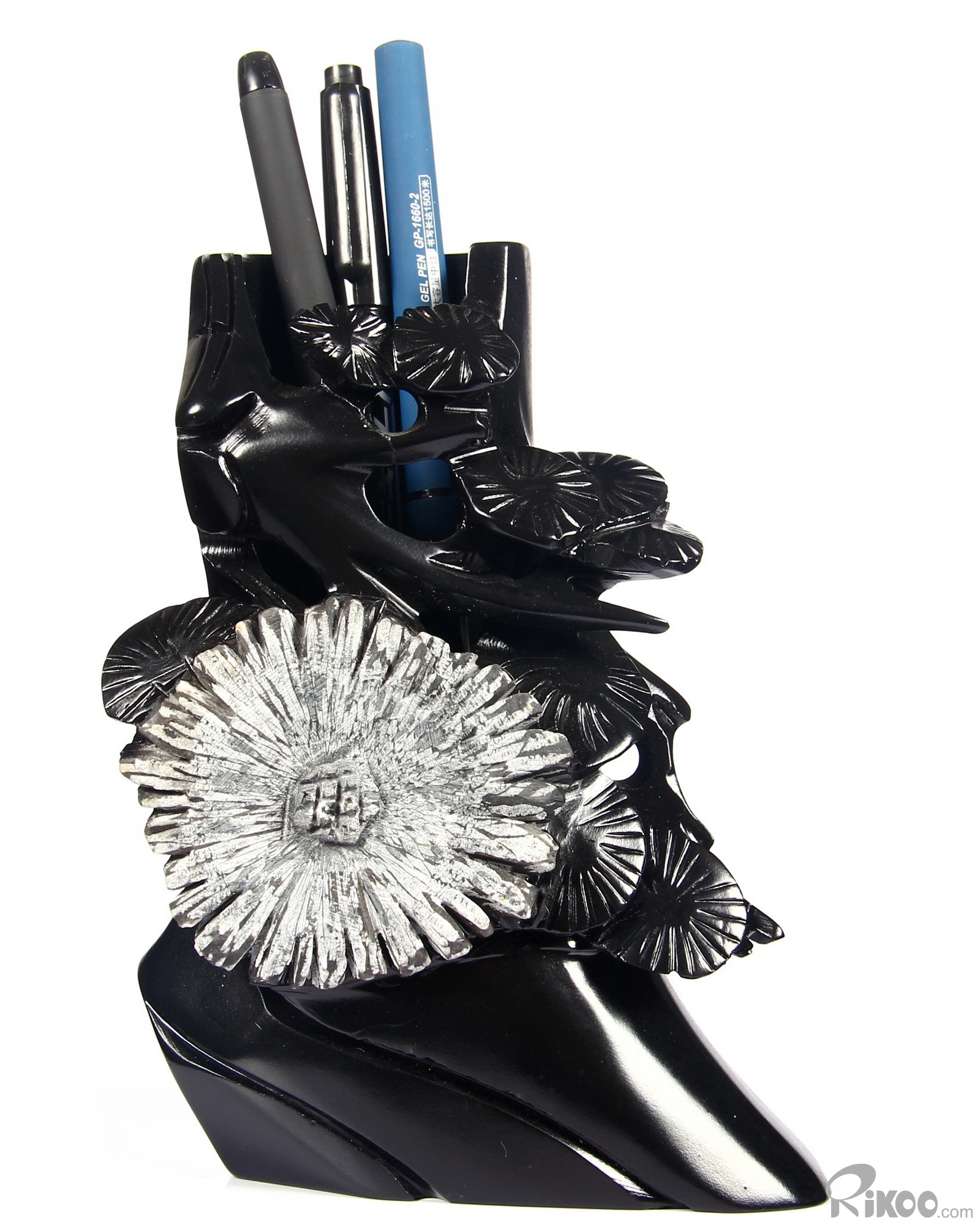 Chrysanthemum Stone Carved Crystal Pen Container