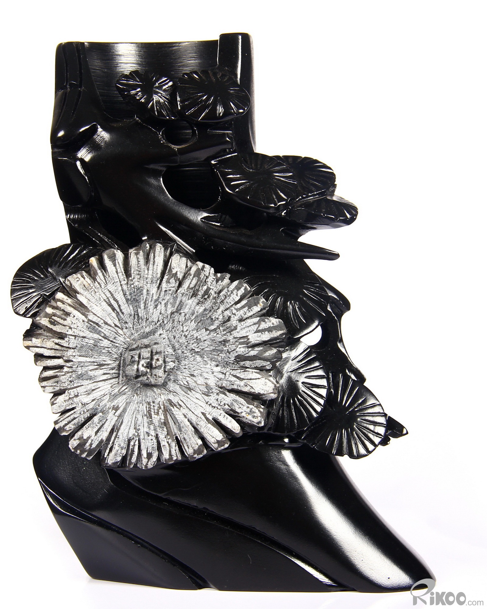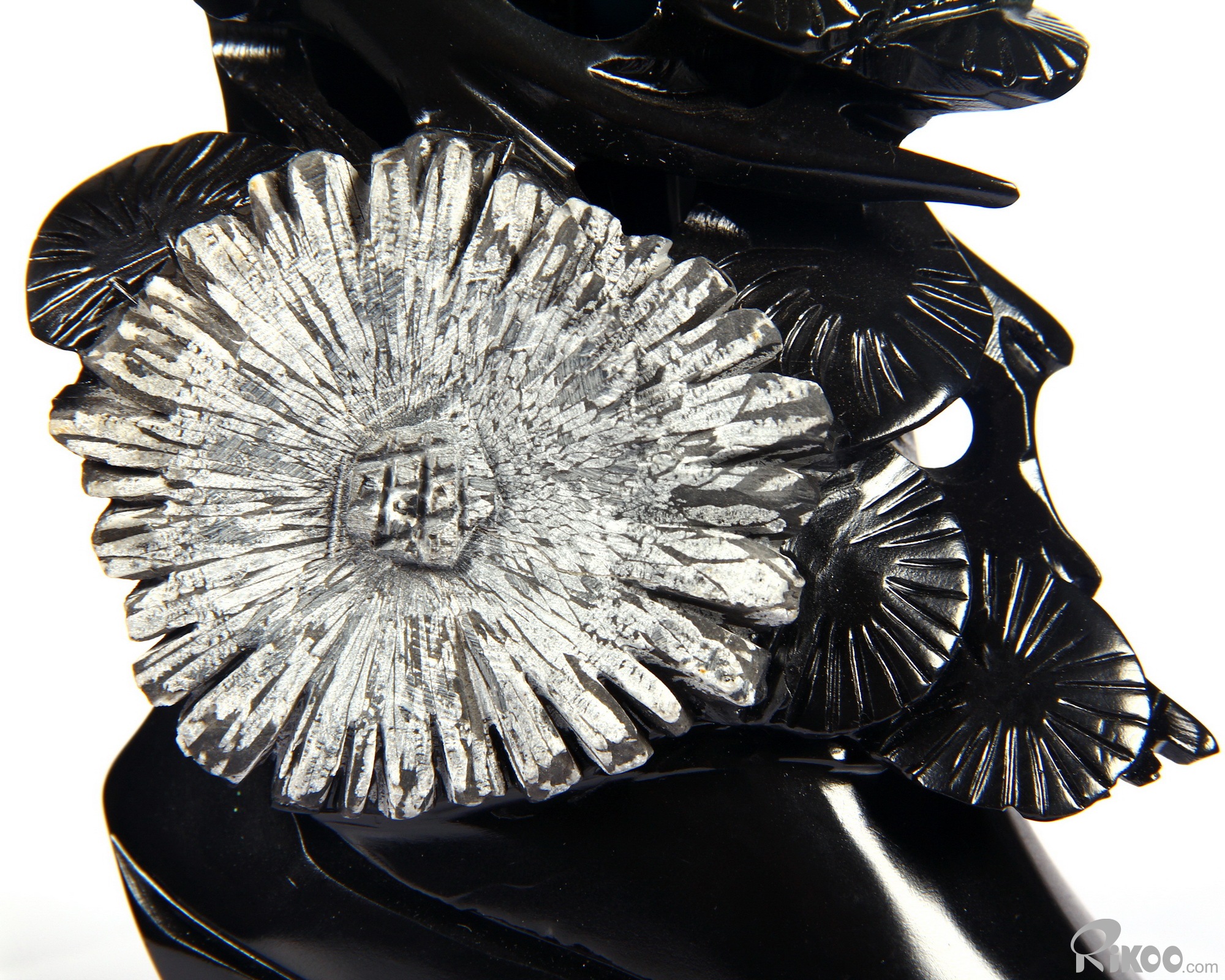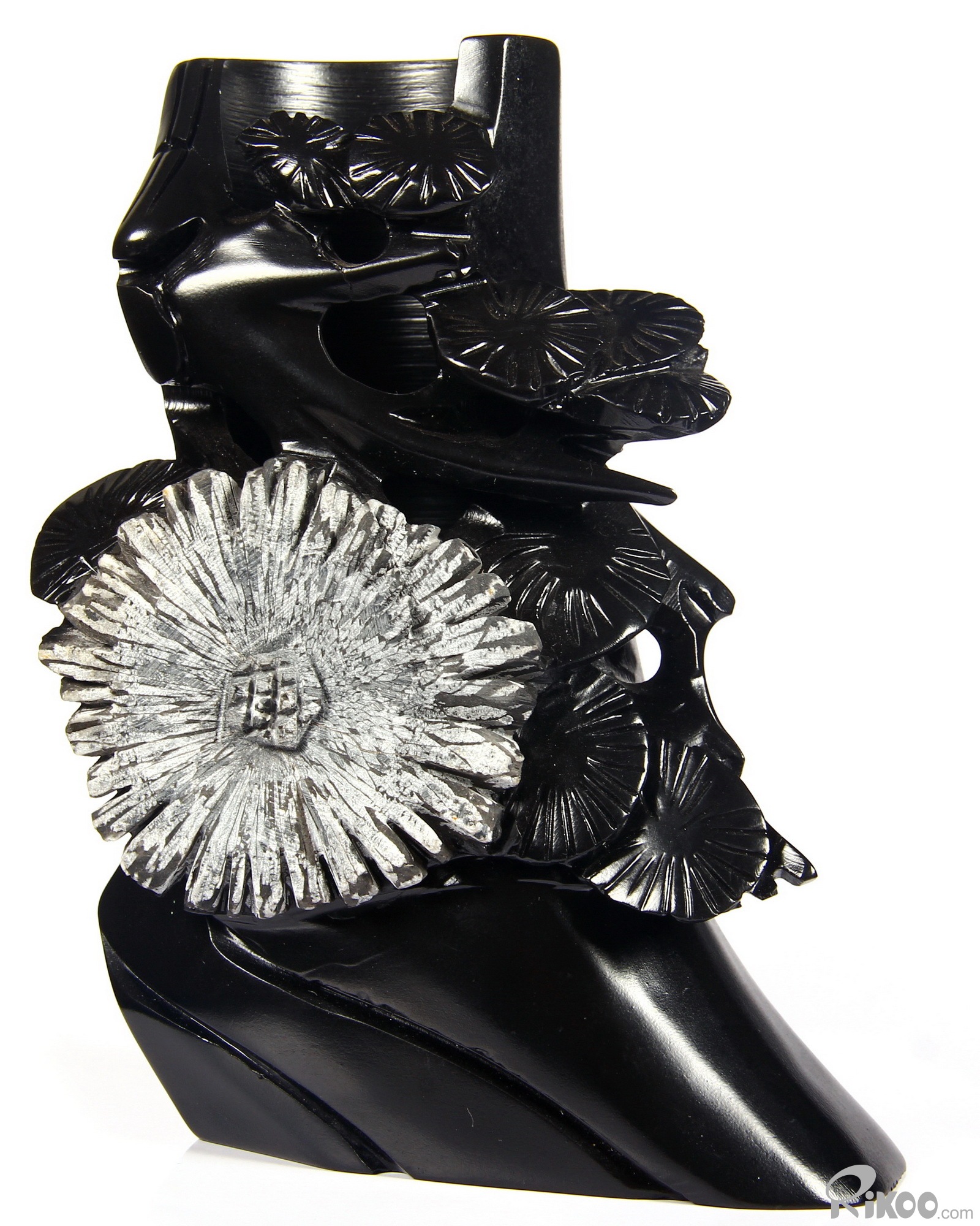 You are looking at a Chrysanthemum Stone sculpture. The sculpture is 6.5 inches long.