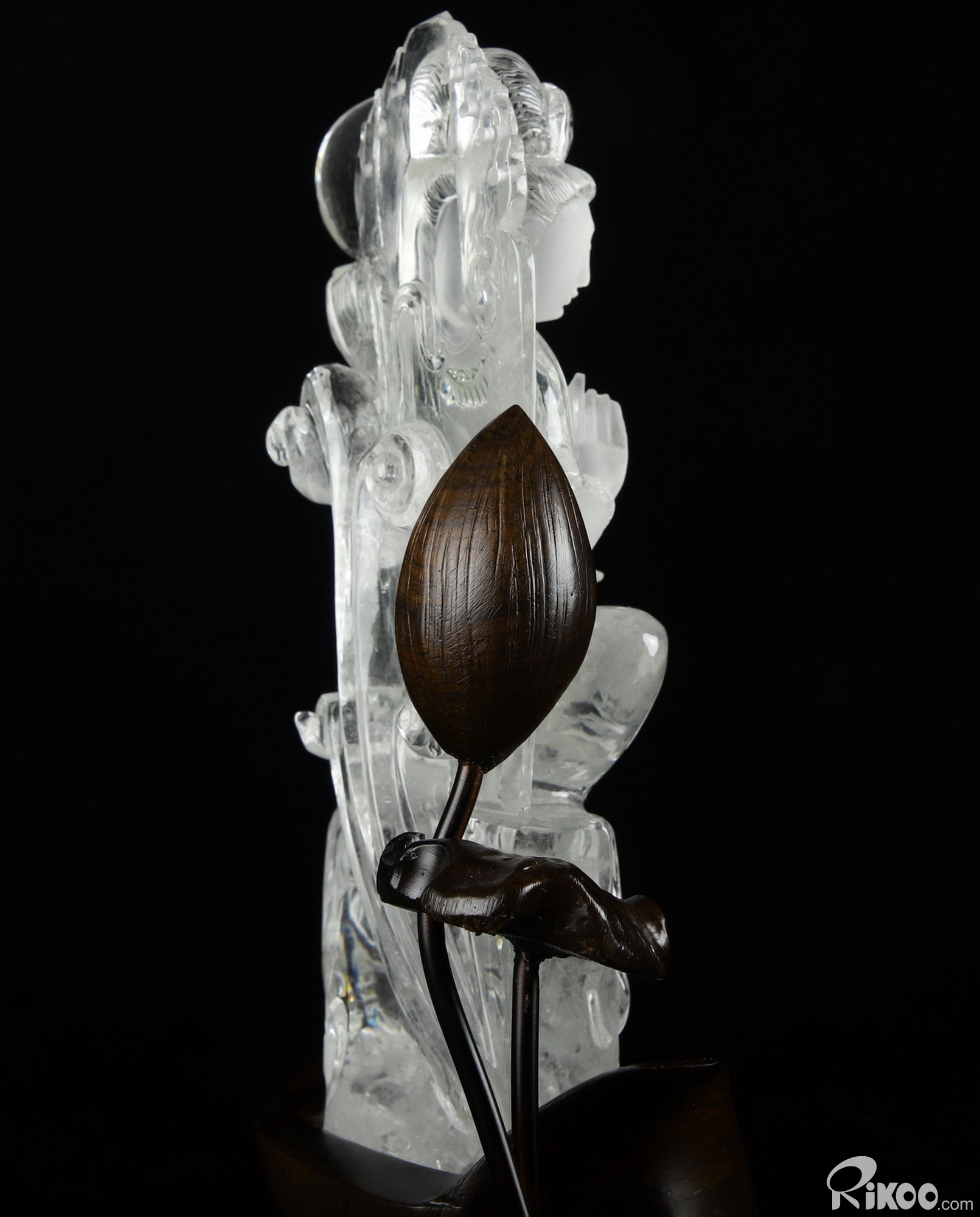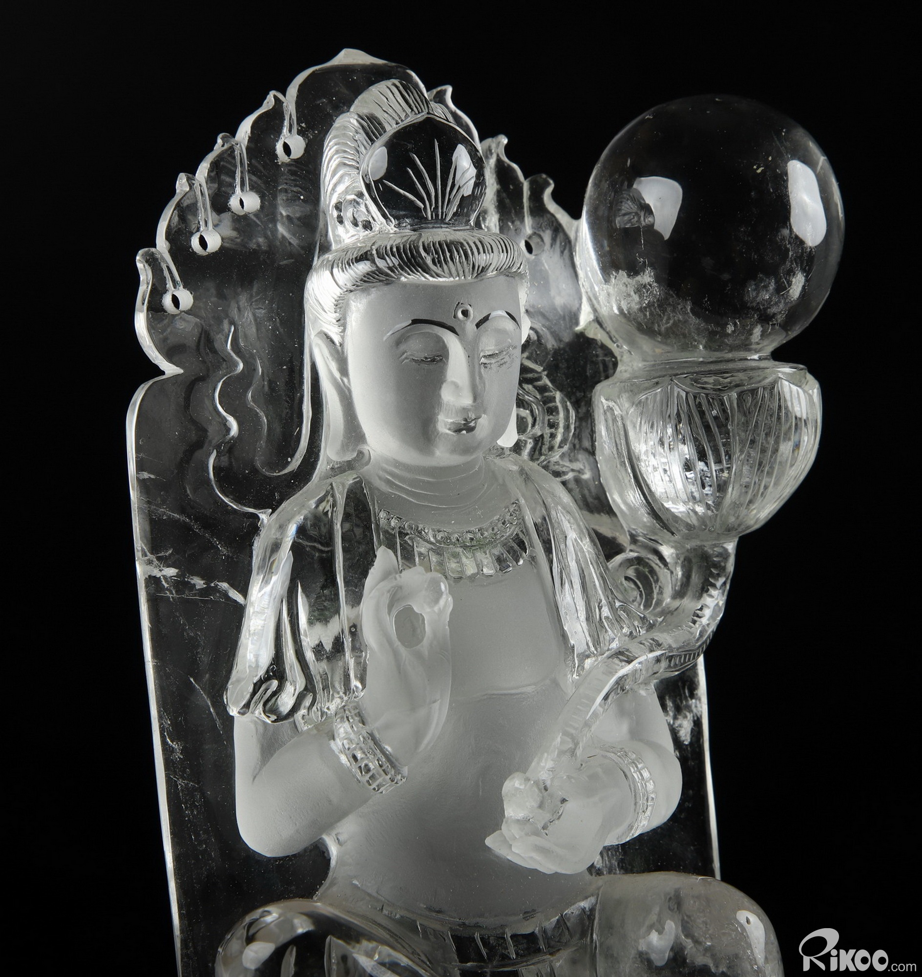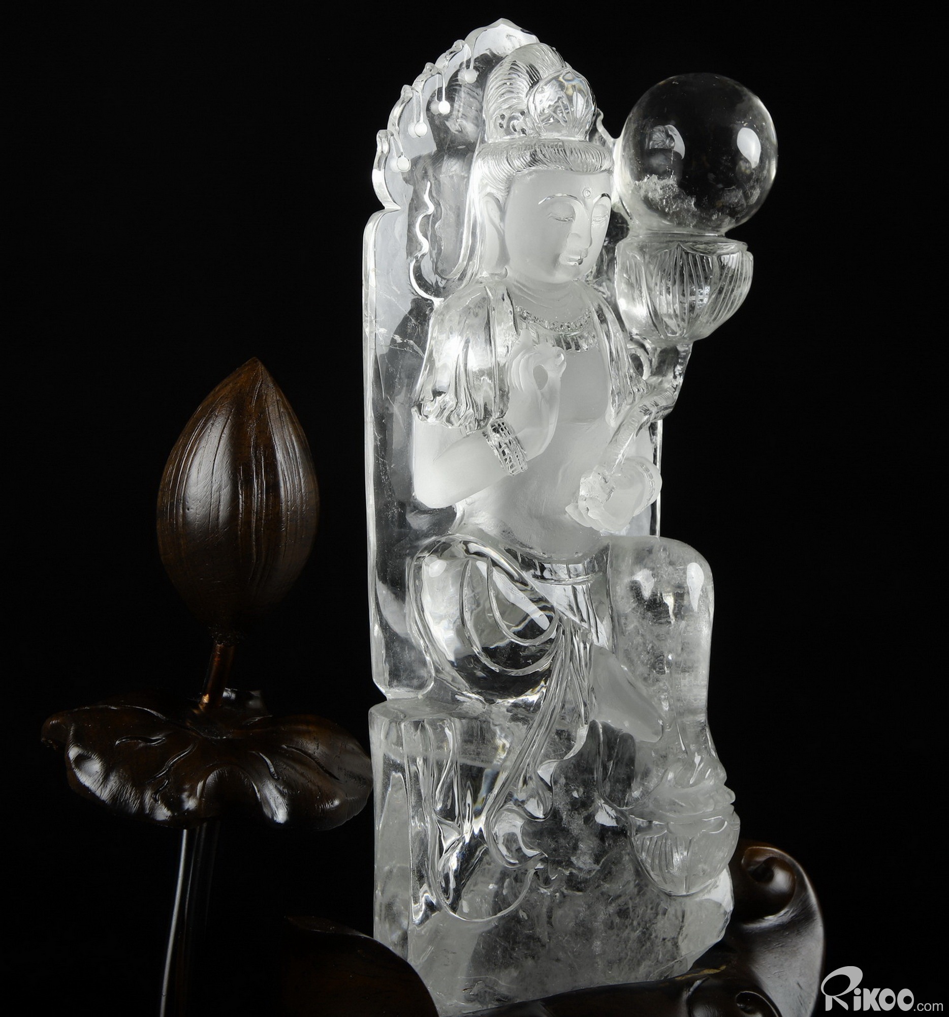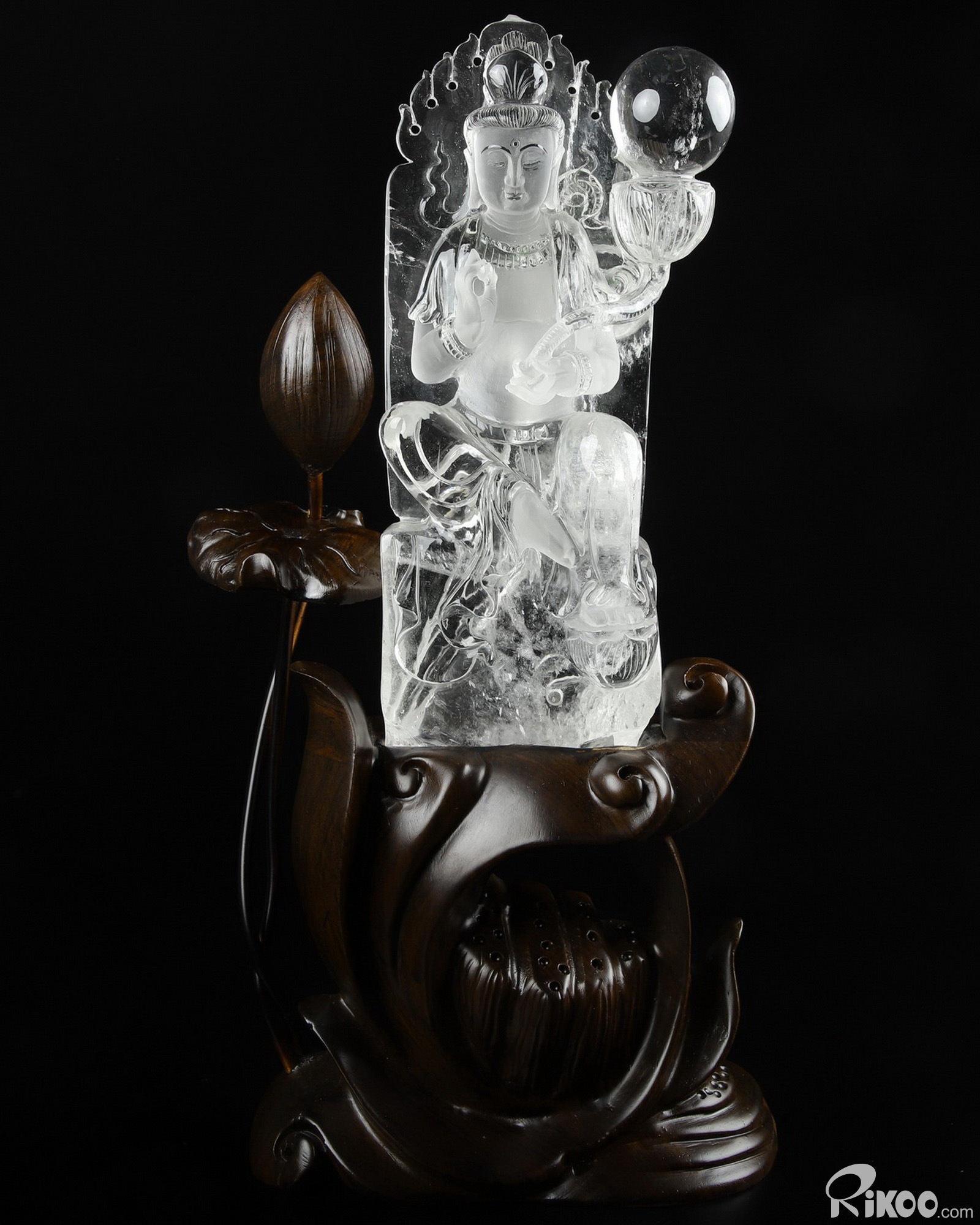 Clear 12.2" Quartz Rock Crystal Carved Crystal Kwan-yin Guanyin Sculpture & Stand, Crystal Healing