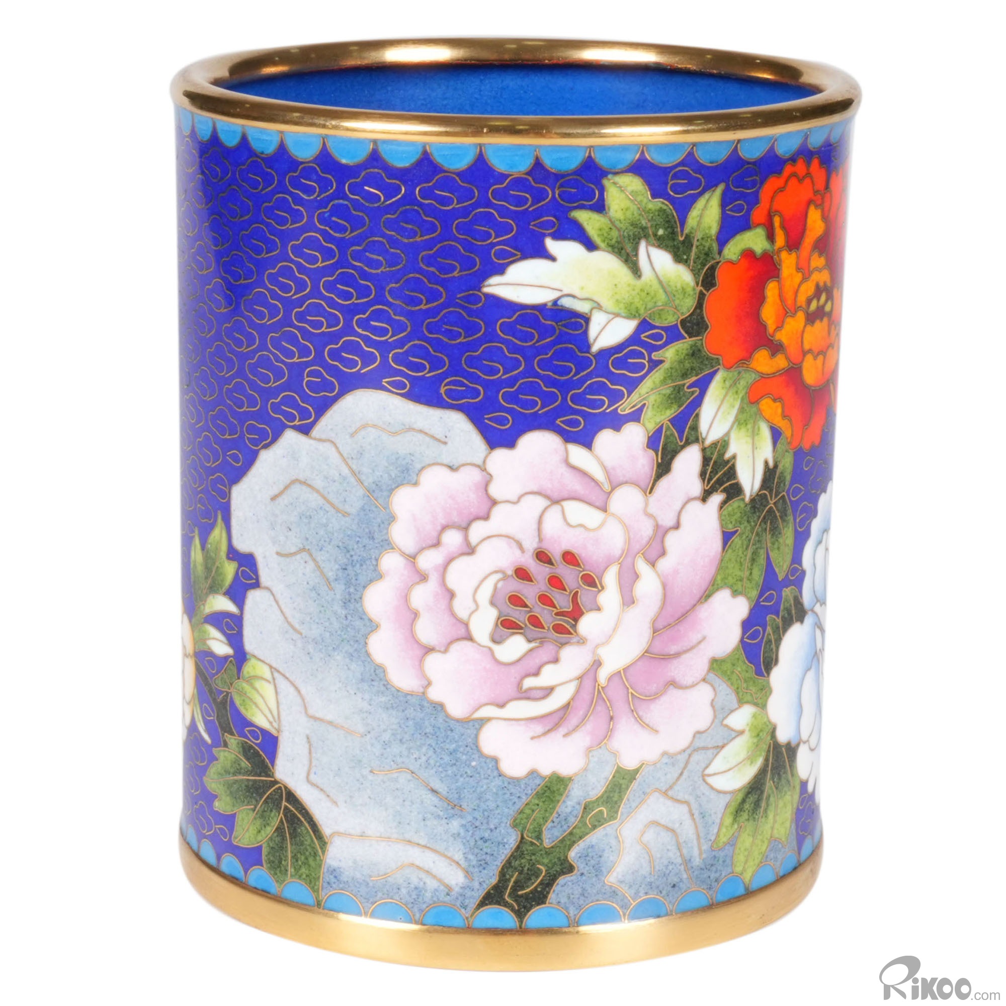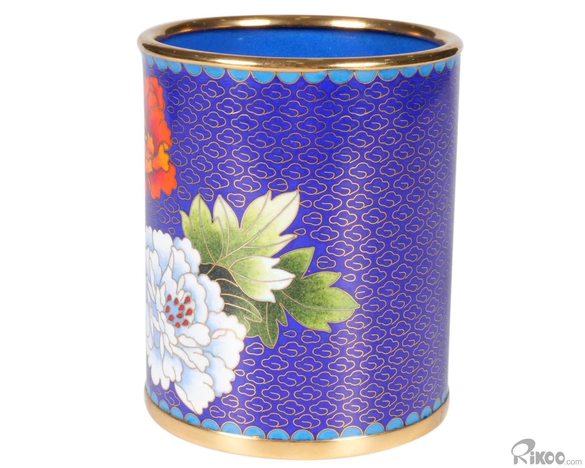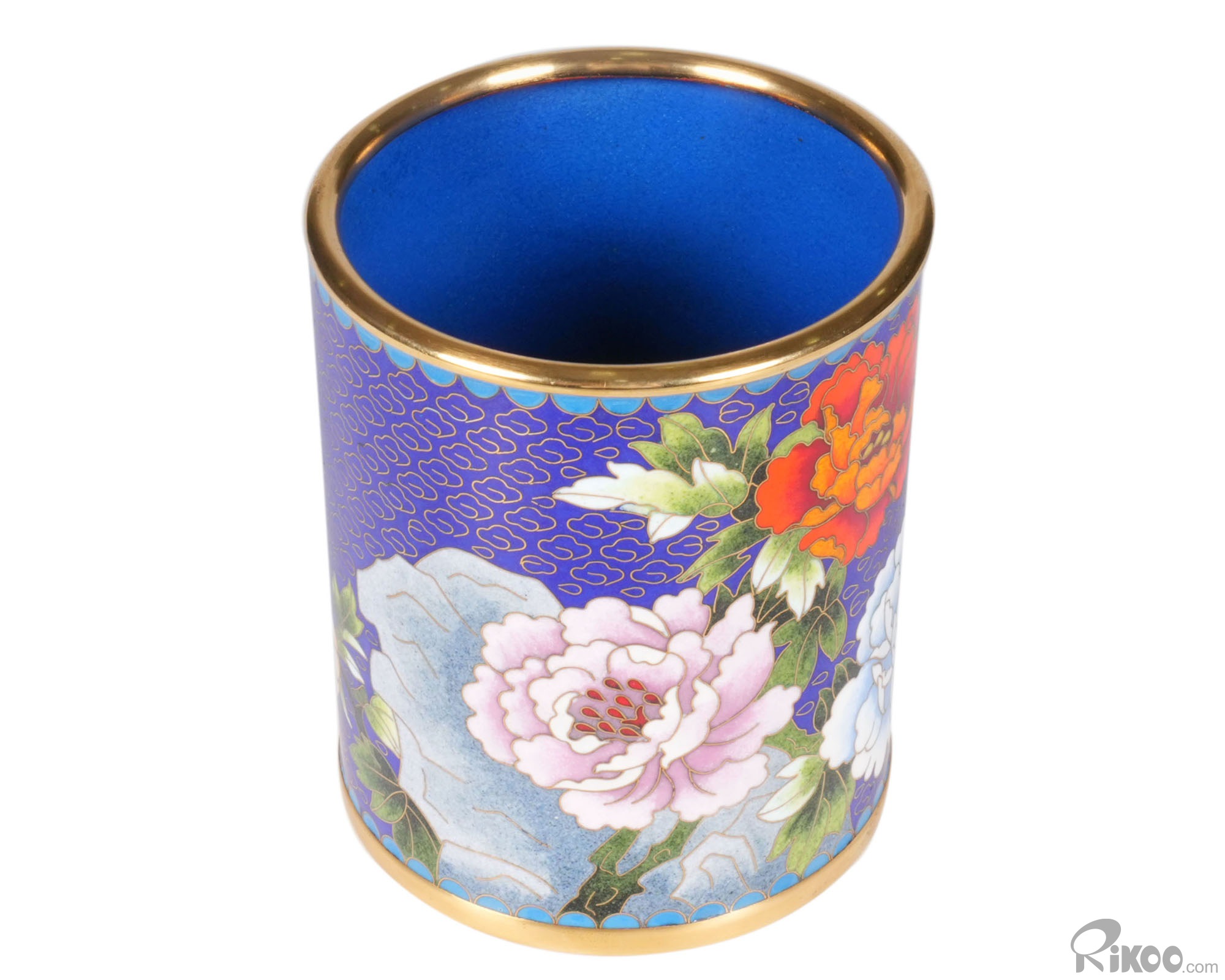 Cloisonné Pen Container, 4.3" Copper Handmade Pen Container Sculpture