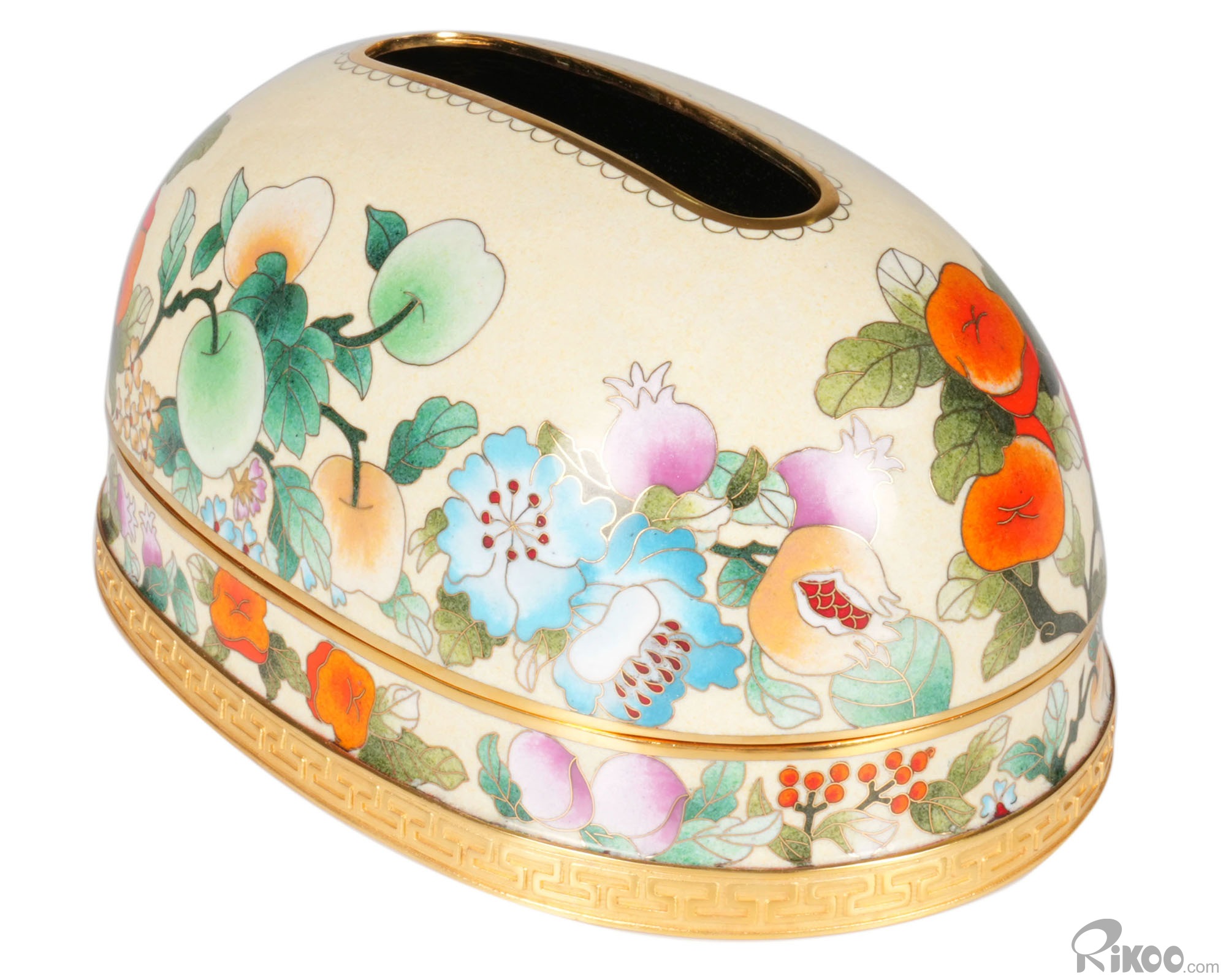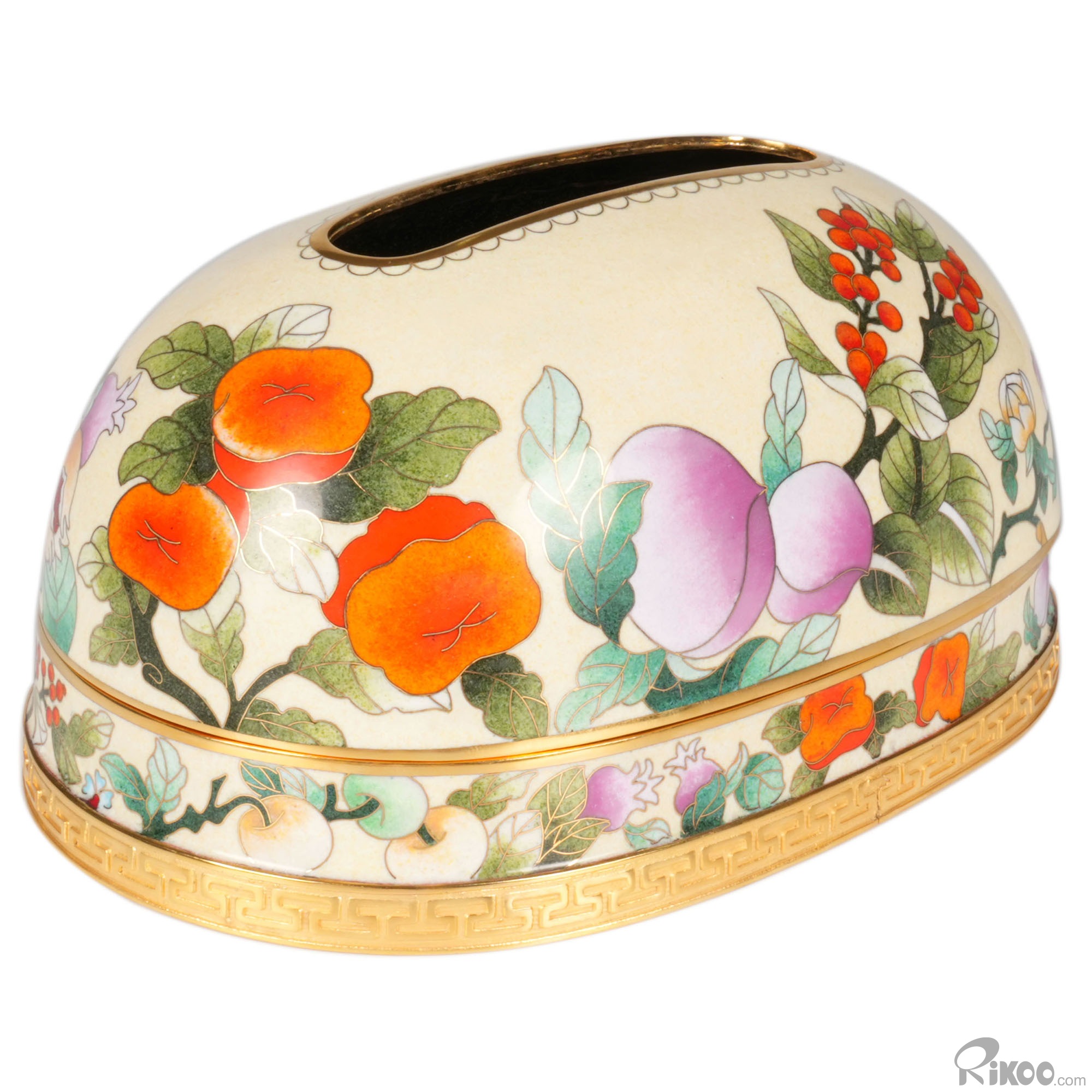 Cloisonné Tissue Box, 7.9" Copper Handmade Tissue Box Sculpture