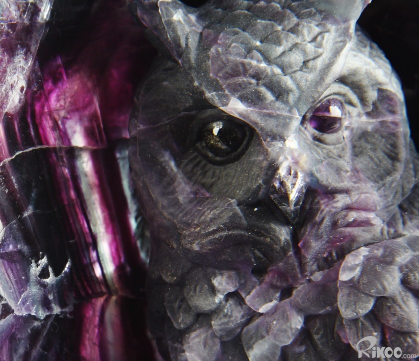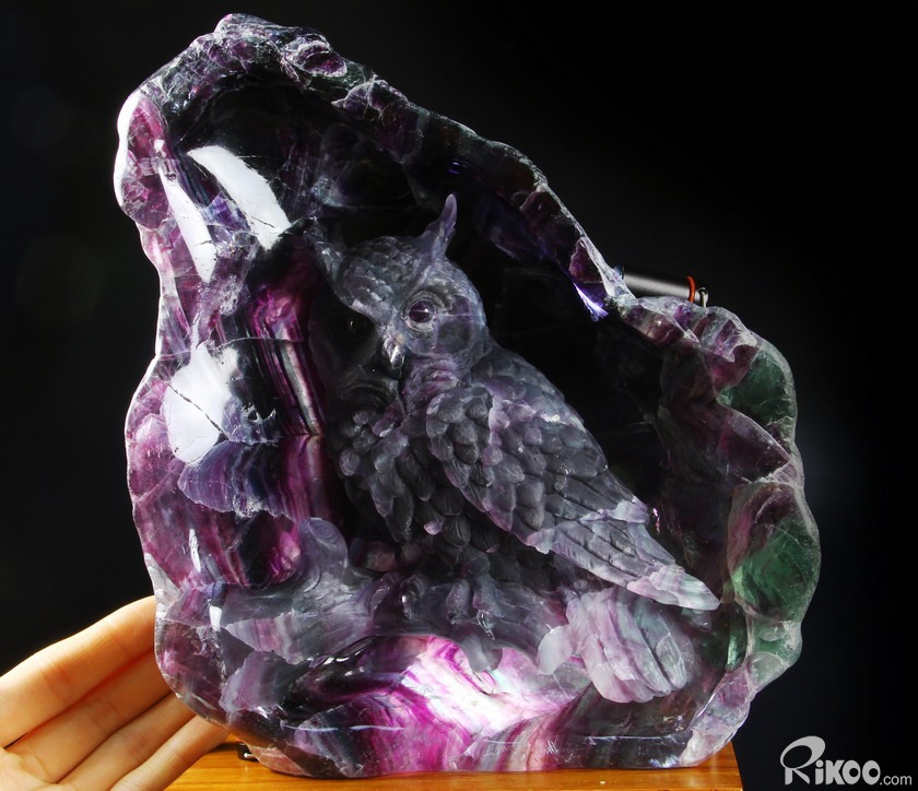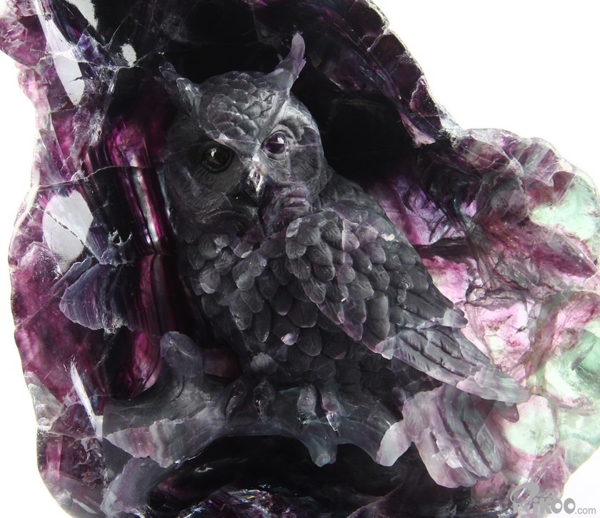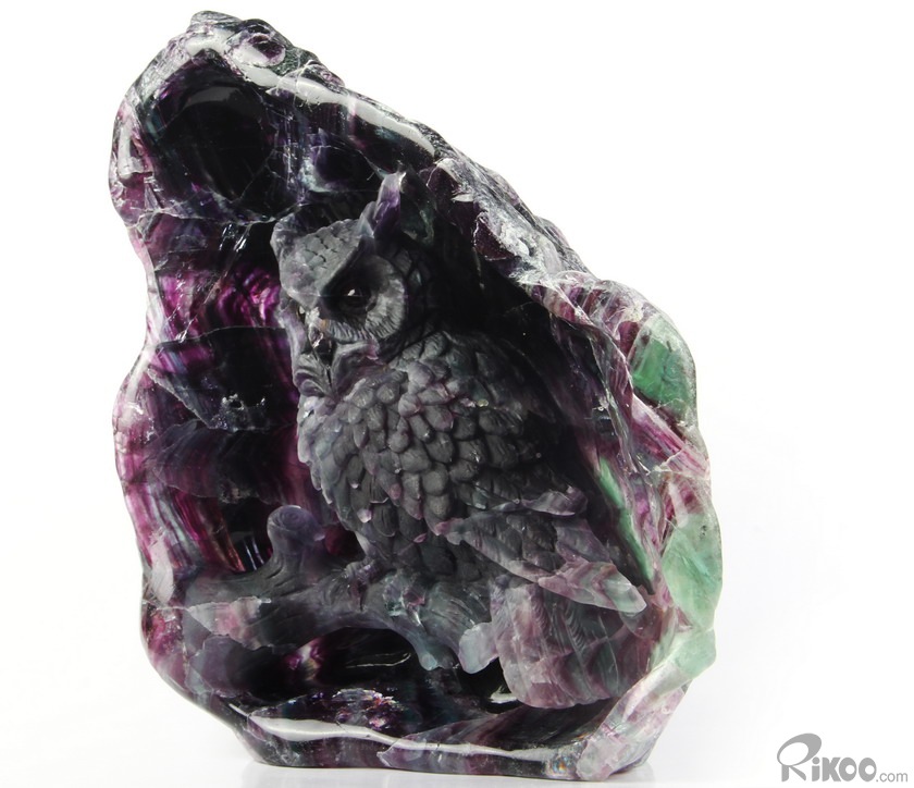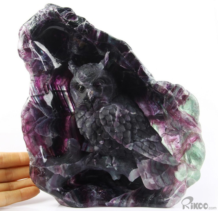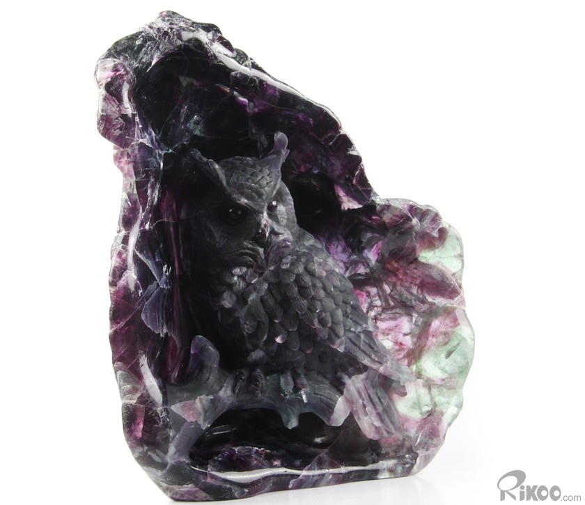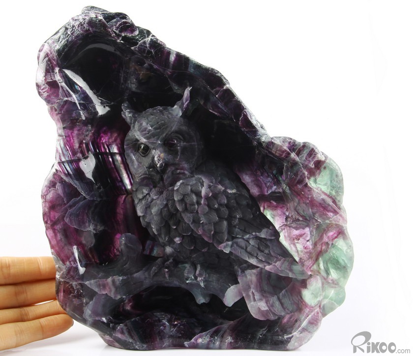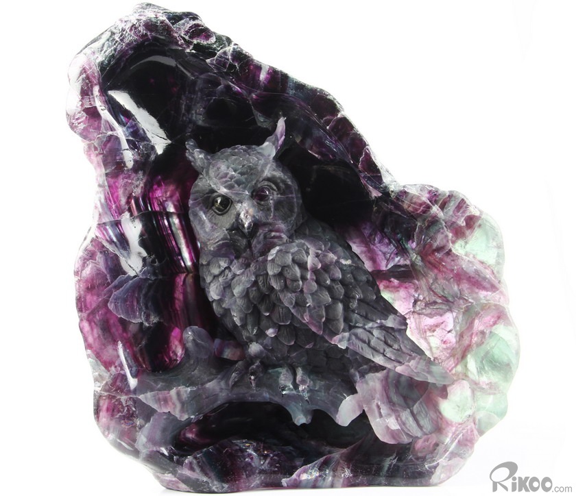 Colorful Giant 7.9" Fluorite Carved Crystal Owl Sculpture