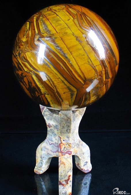 Crazy Lace Agate Carved Sphere Stand, Crystal