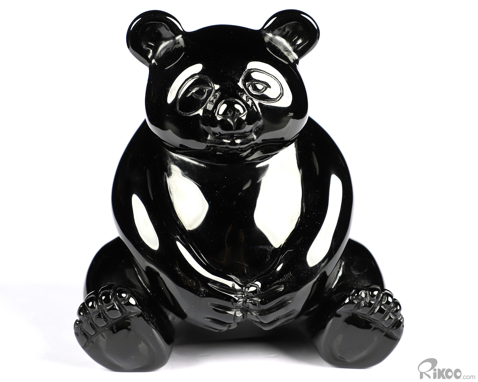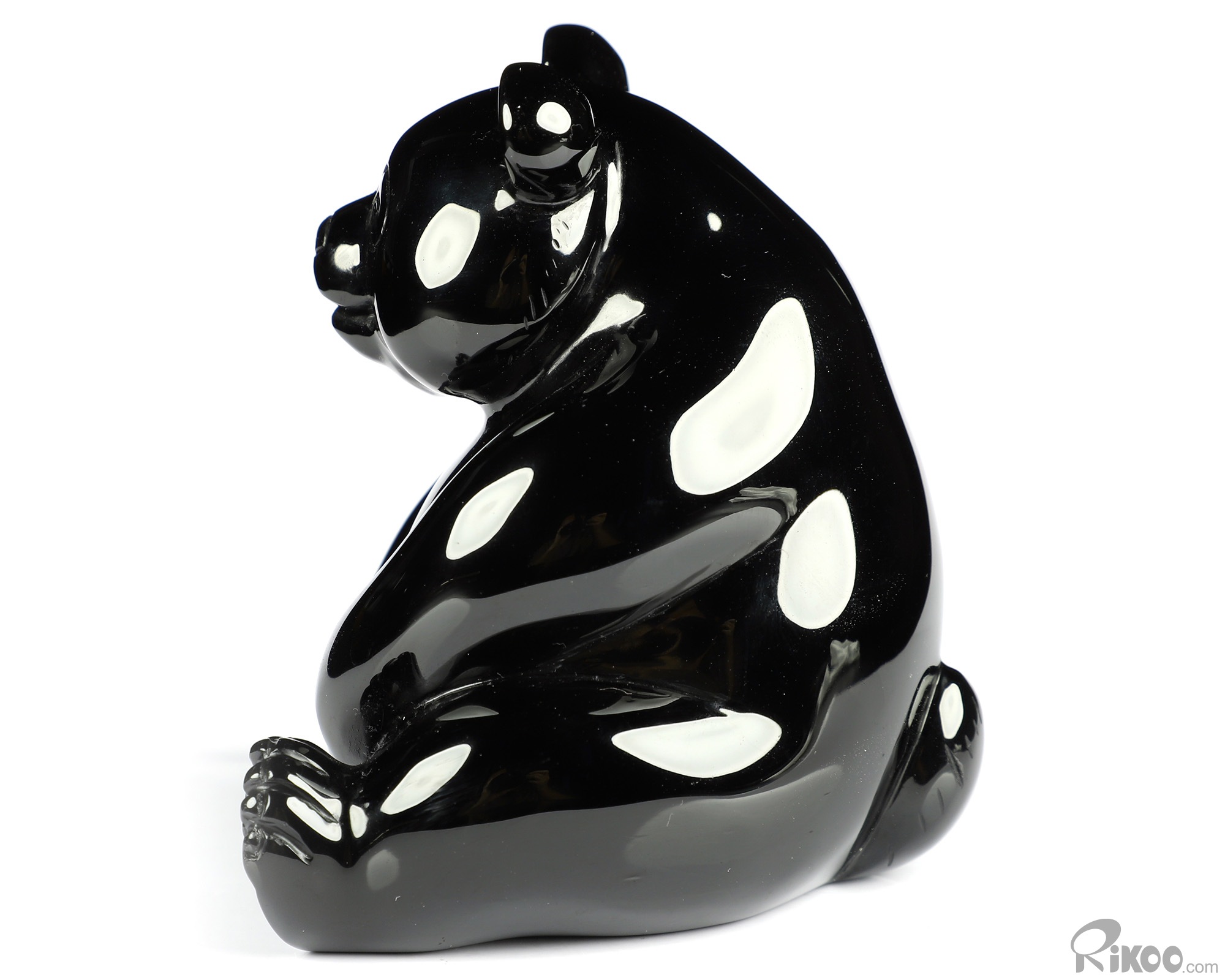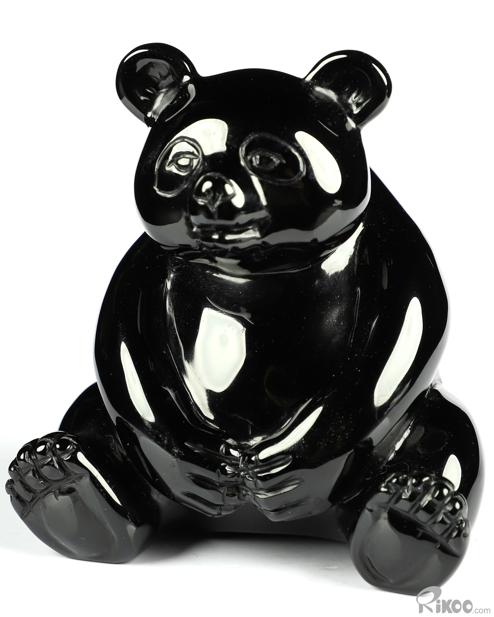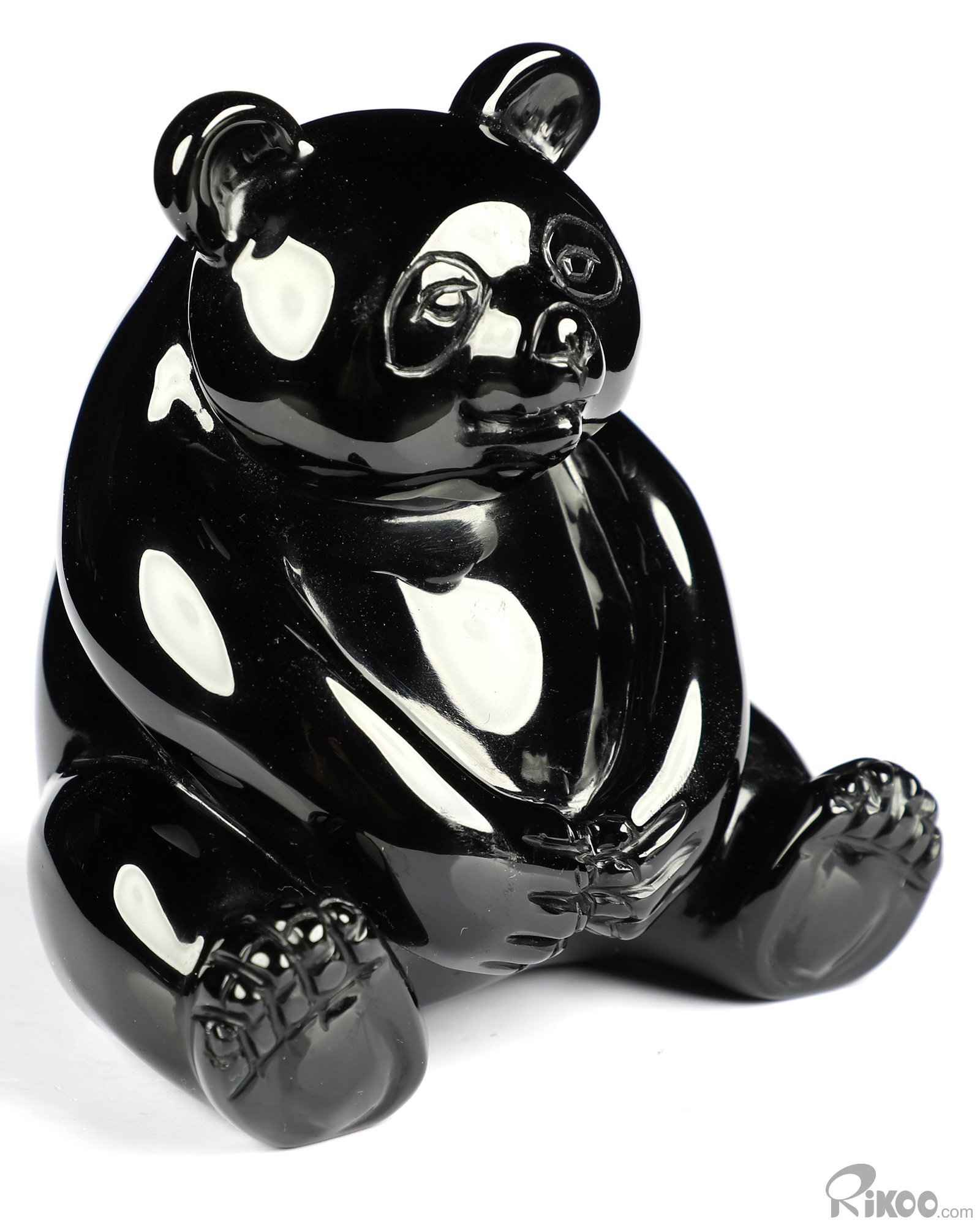 Cute 3.6" Black Obsidian Carved Crystal Panda Sculpture, Realistic