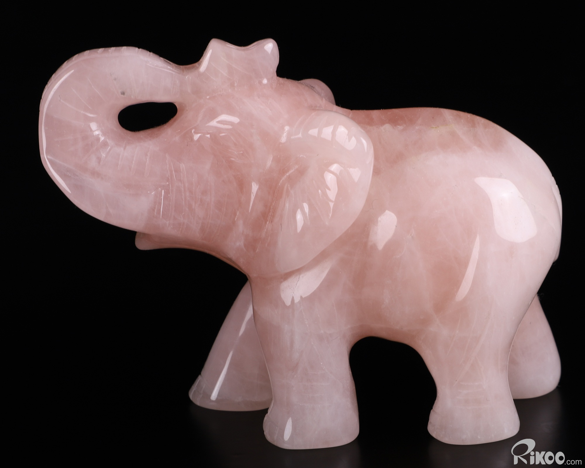 Cute 4.0" Rose Quartz Carved Crystal Elephant, Realistic, Crystal Healing
