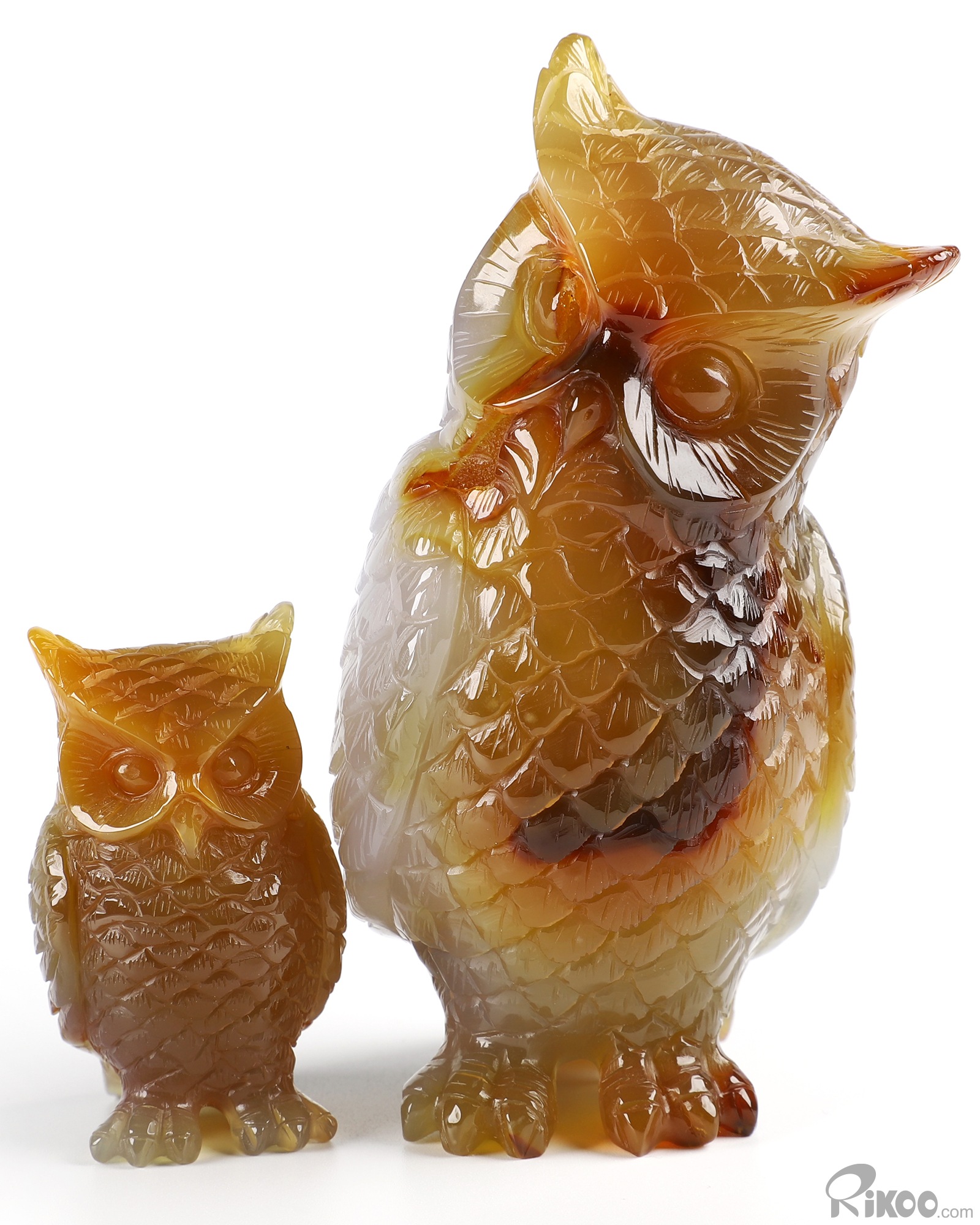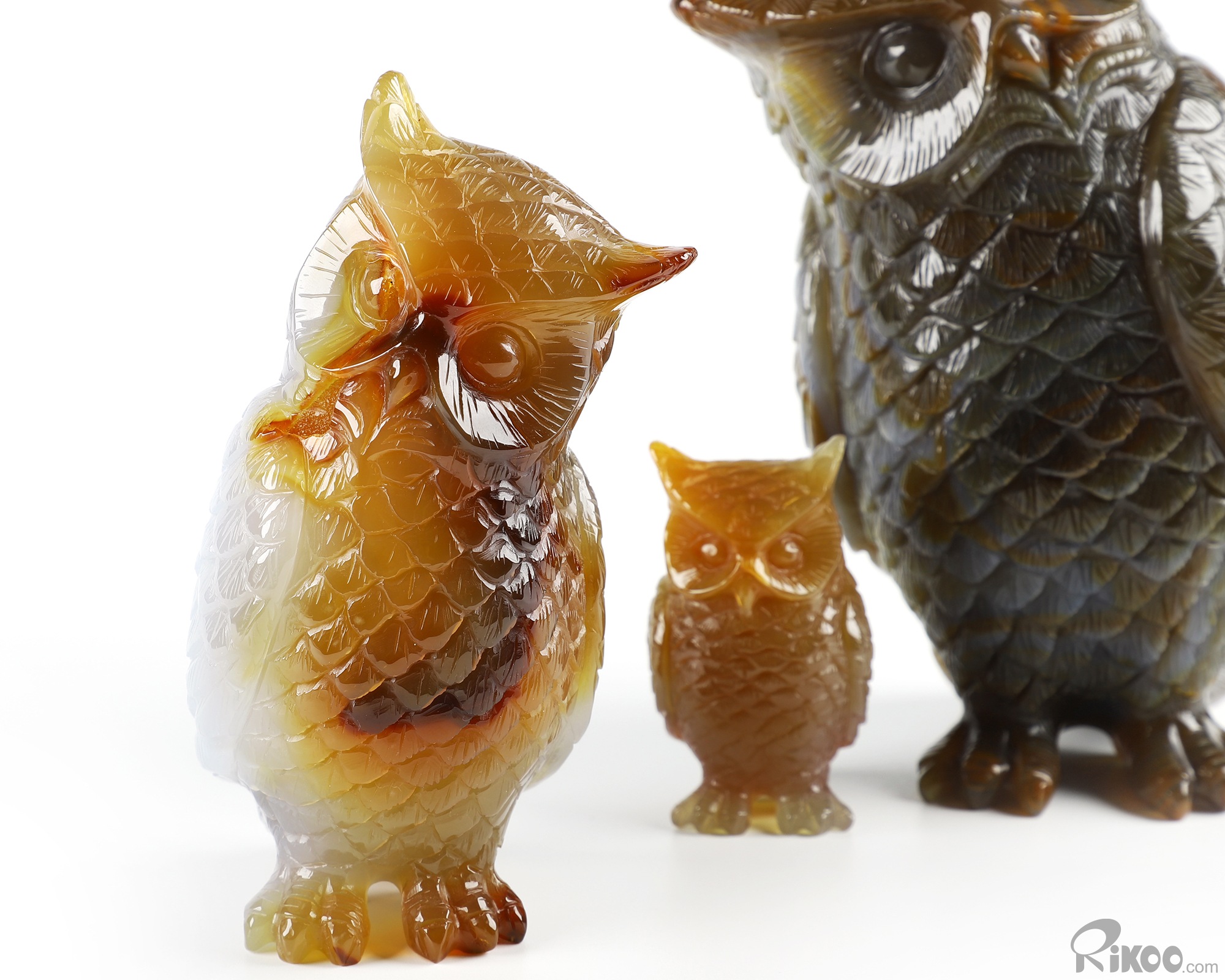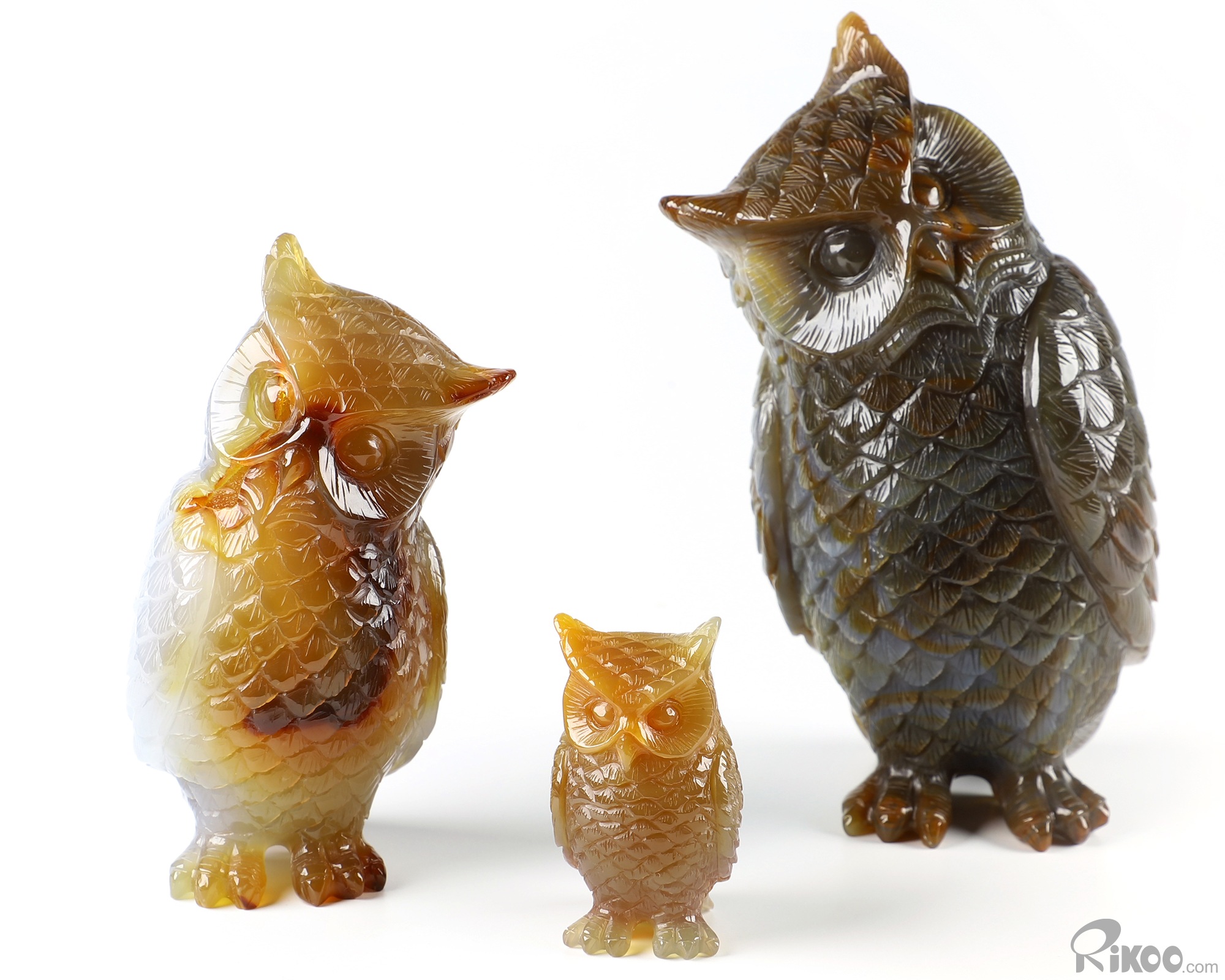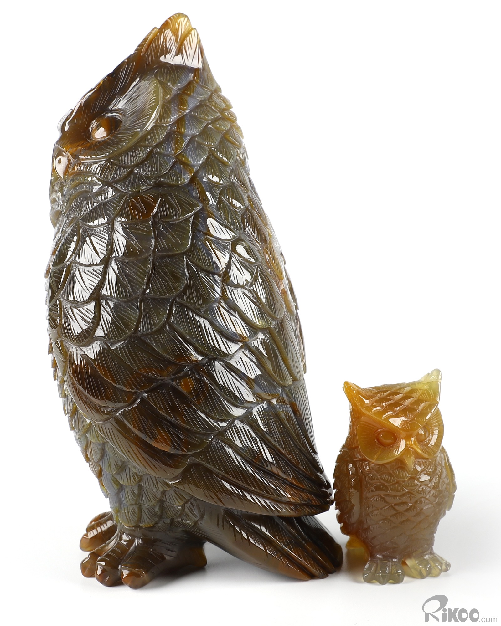Cute 5.7" Agate Carved Crystal Owl family Sculpture, Realistic, Crystal Healing