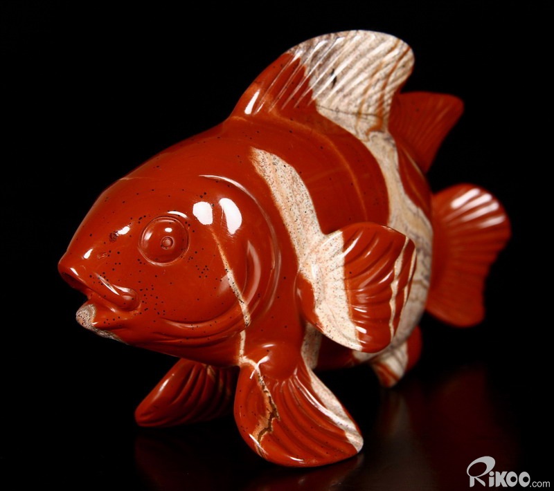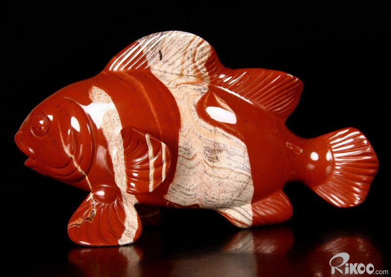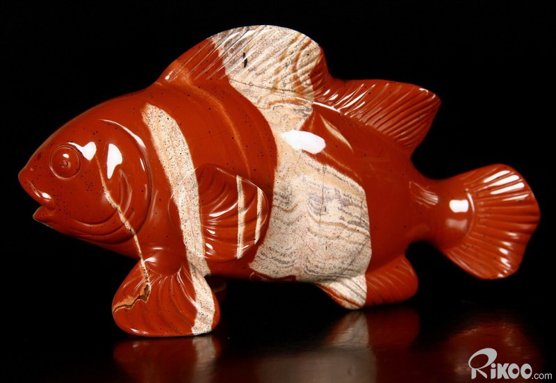 Cute Huge 6.3" Red Striped Jasper Carved Crystal Clownfish