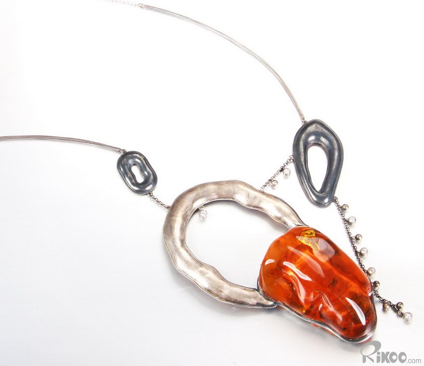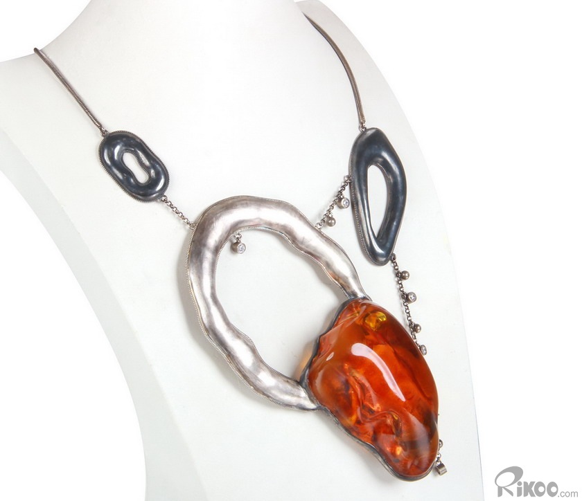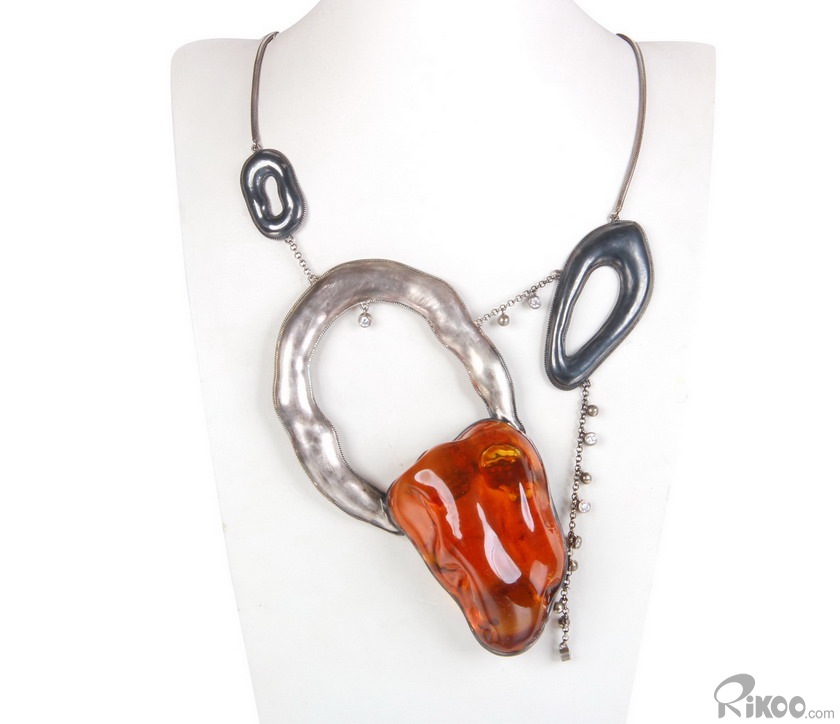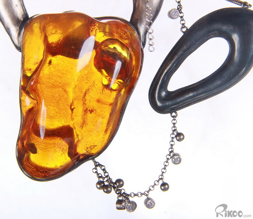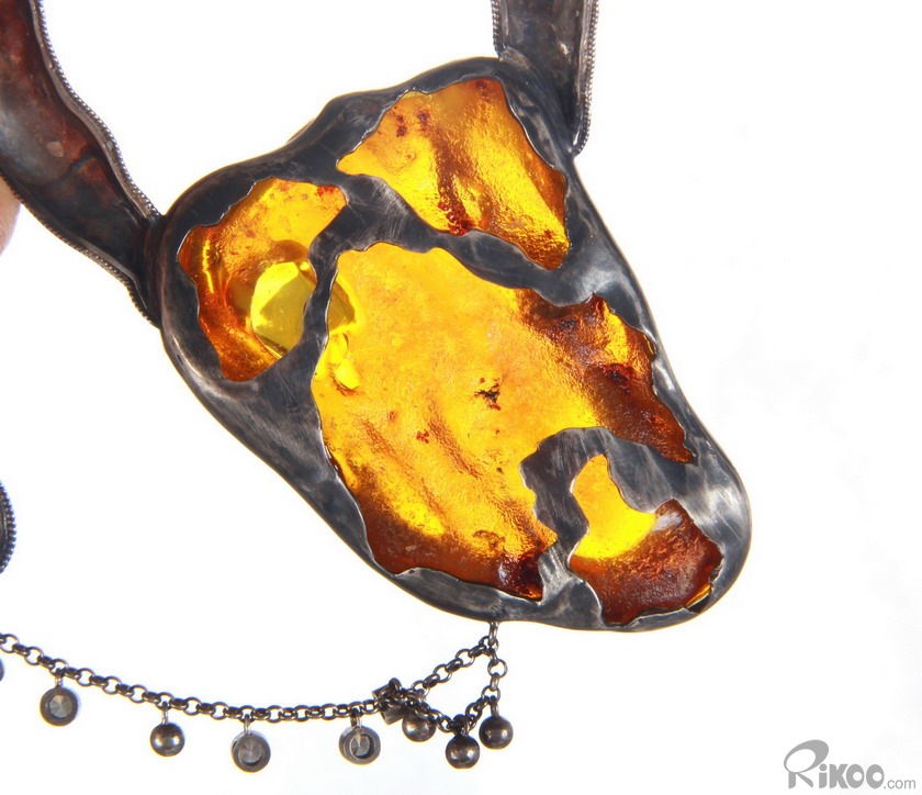 Designer style, 5.0" Baltic Amber Carved Crystal Necklace, Crystal Healing