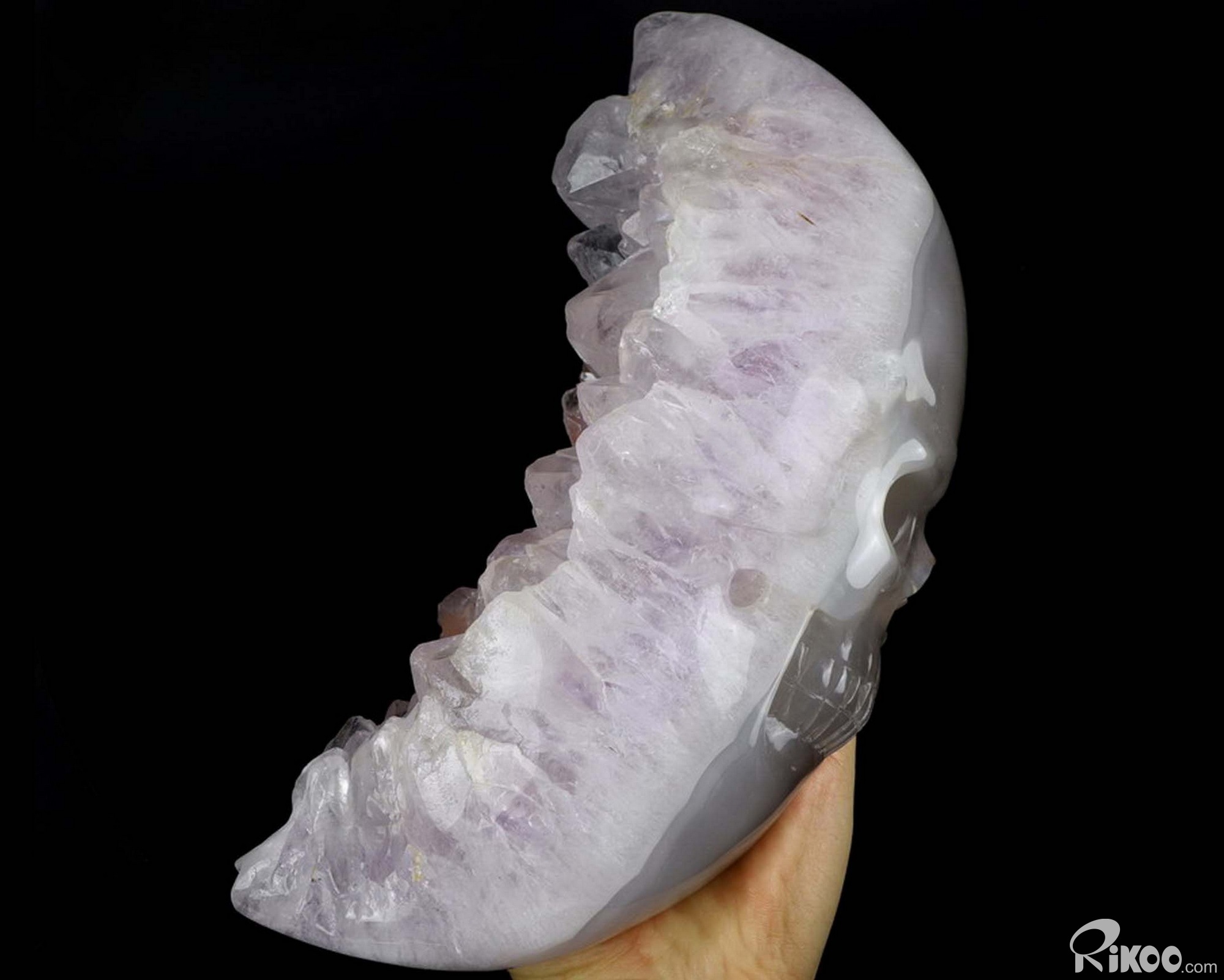 Druse 9.3" Amethyst & Agate Carved Crystal Skull Sculpture, Crystal Healing