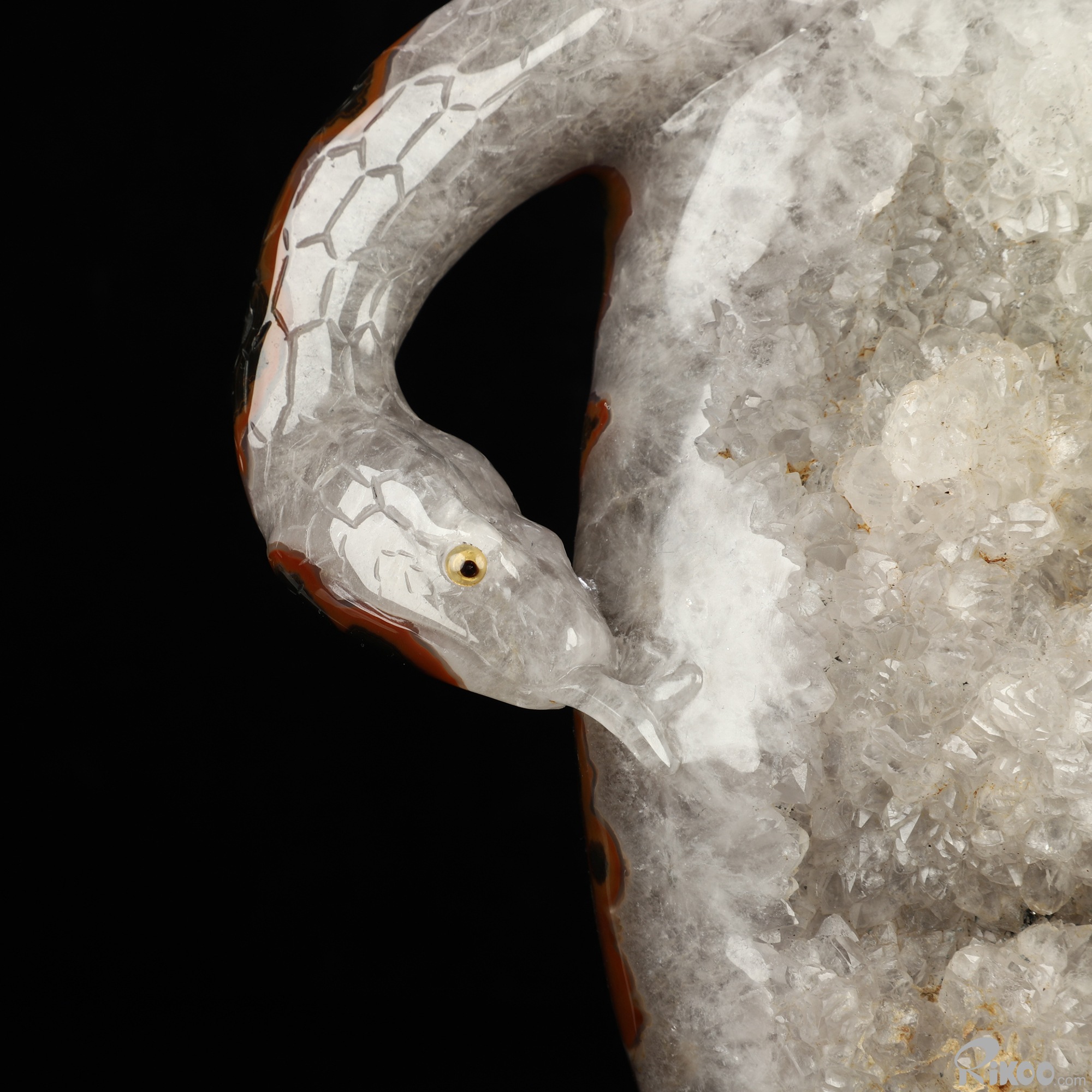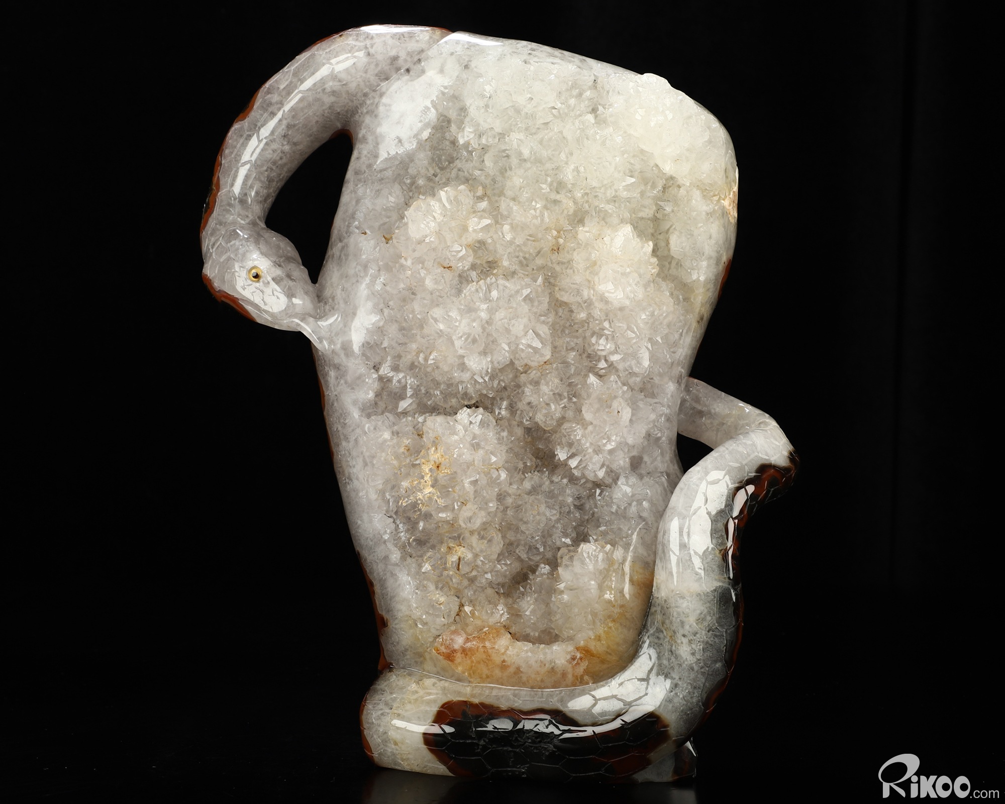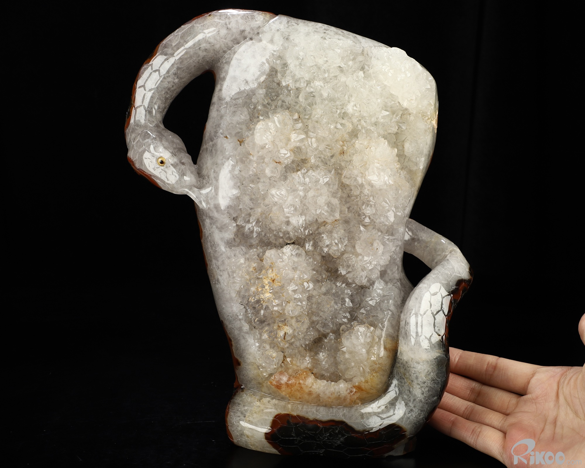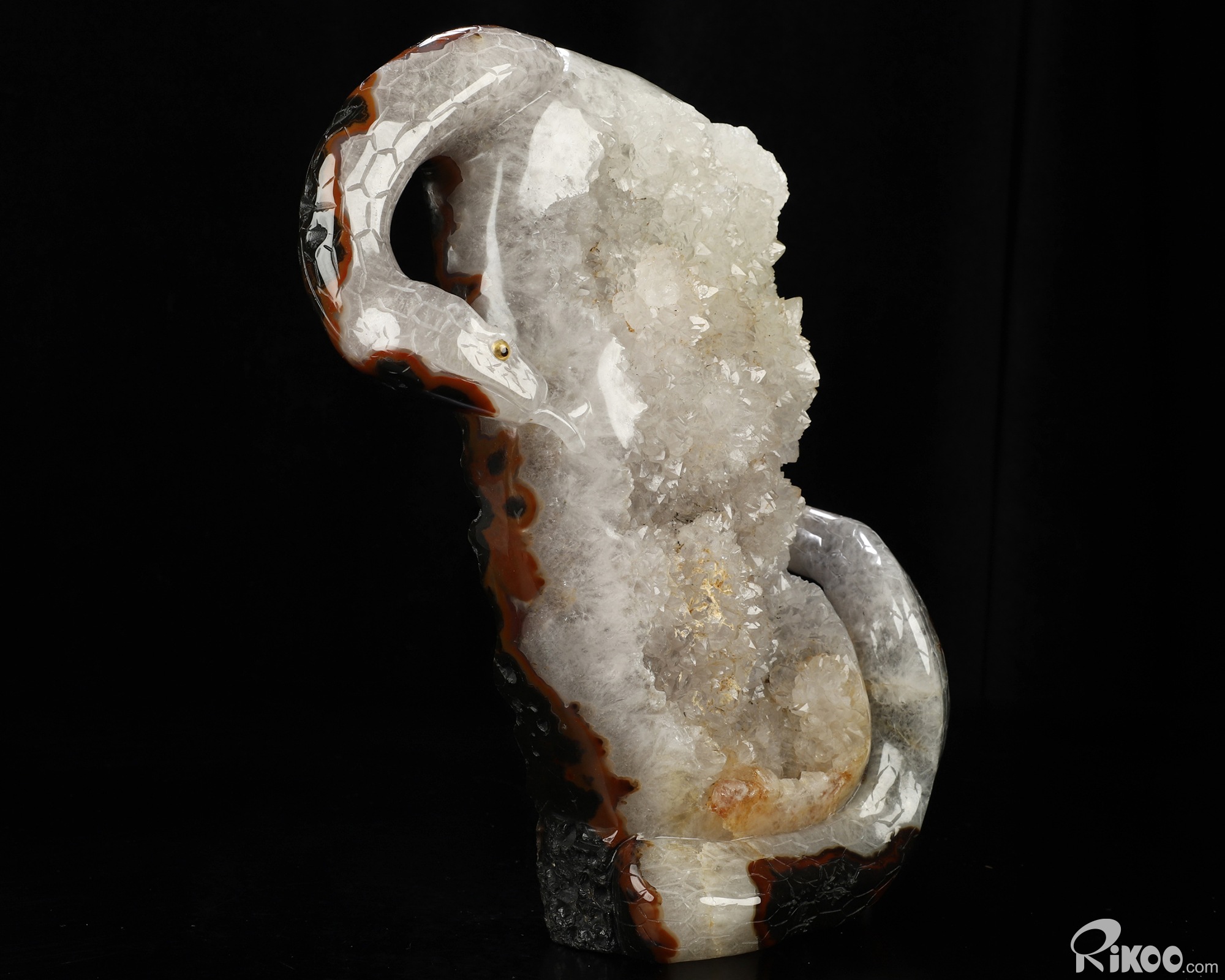 Druse 9.6" Premium Brazilian Agate Hand Carved Crystal Snake Sculpture, Crystal Healing