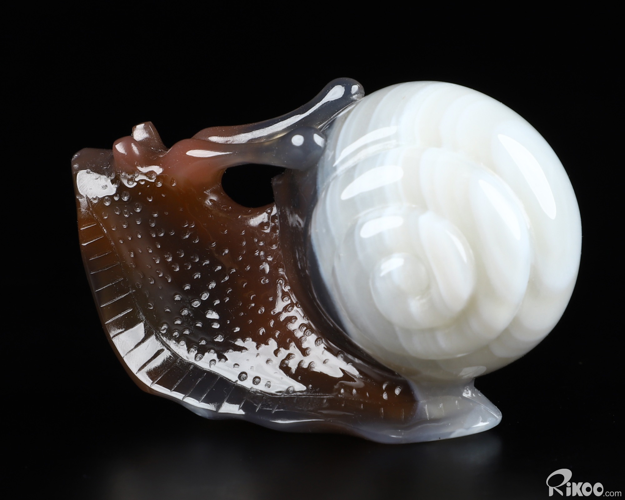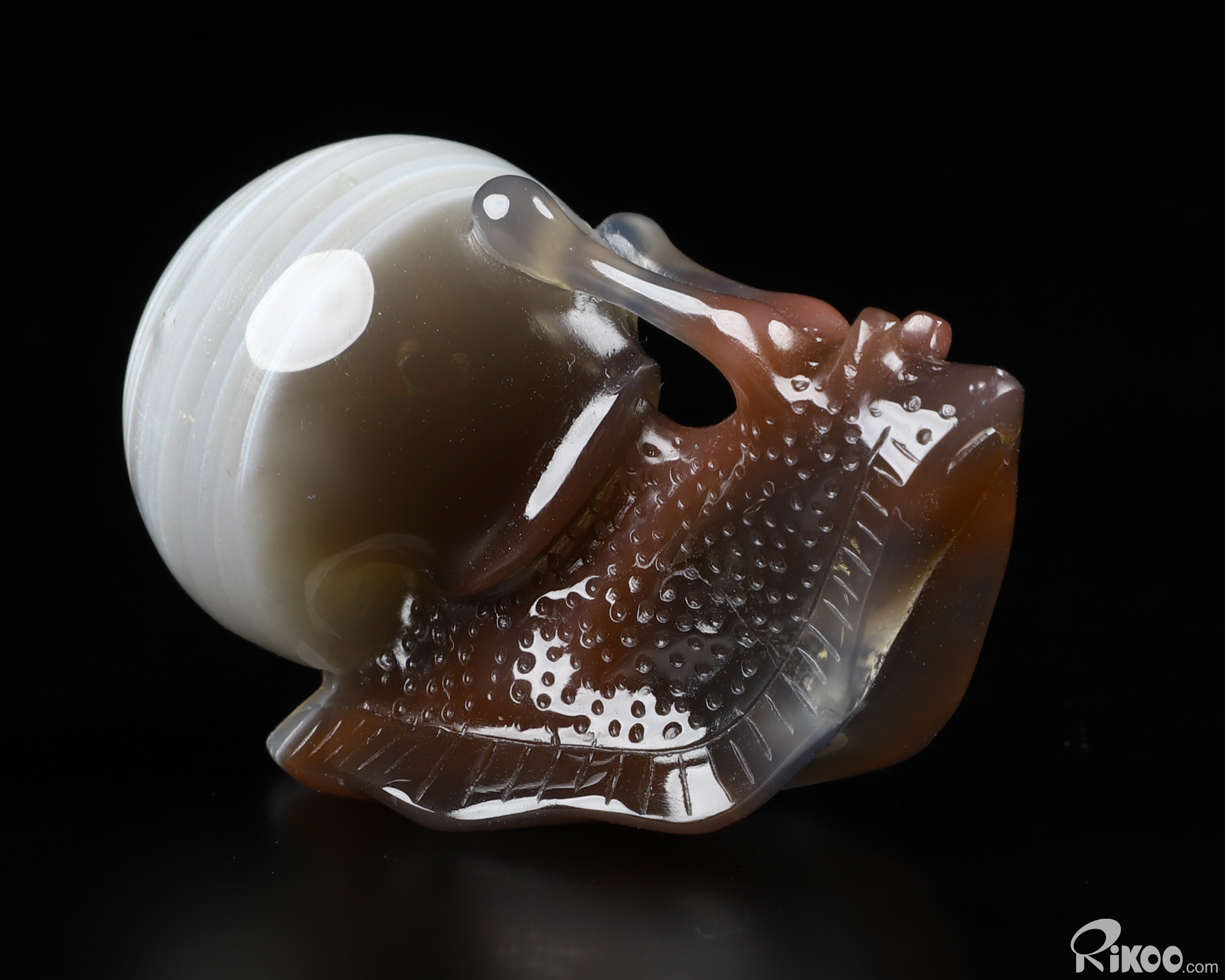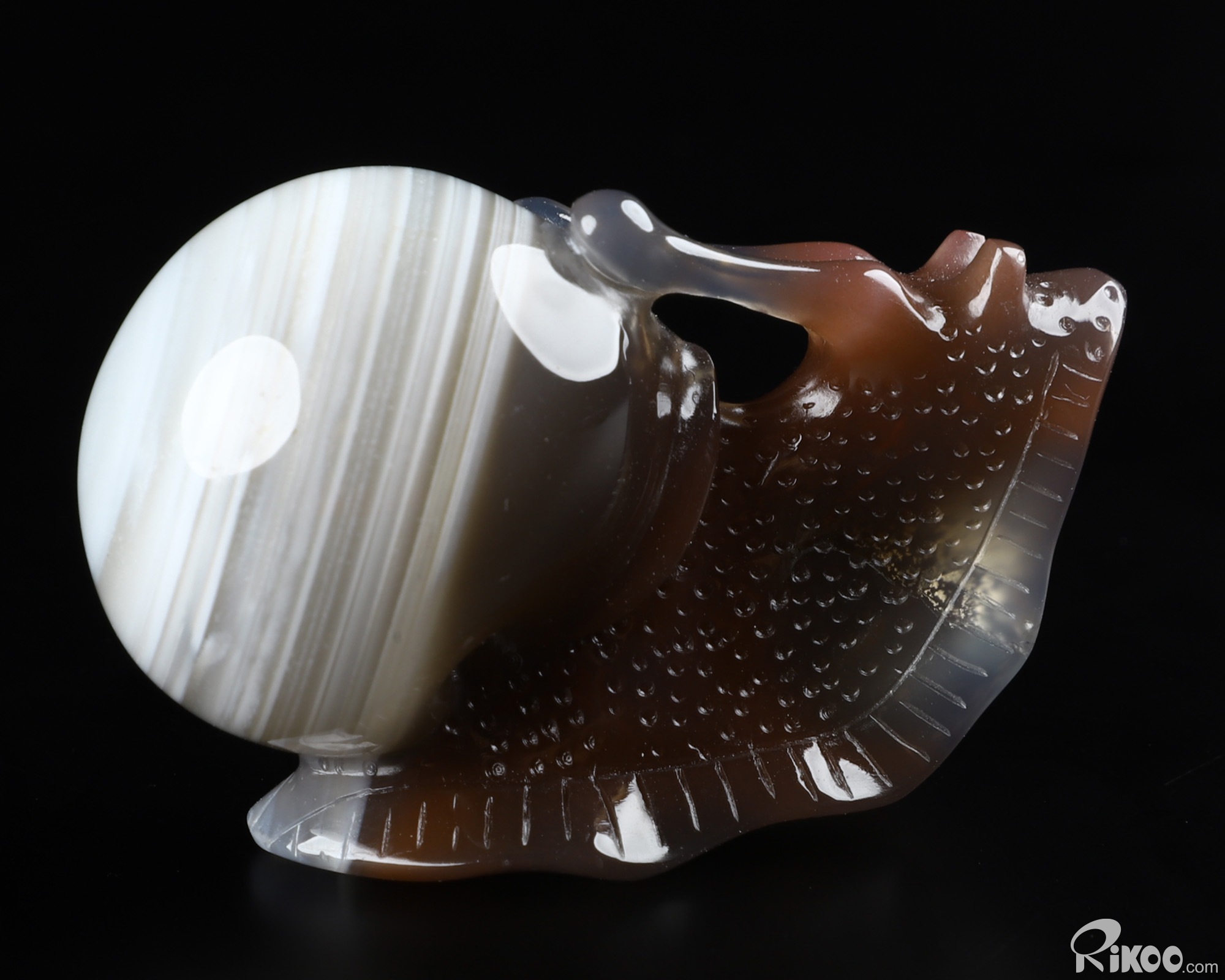 Fine Gemstone 1.9" Mozambique Agate Carved Crystal Snail Sculpture