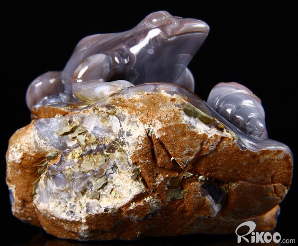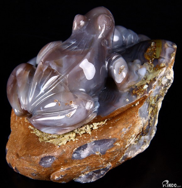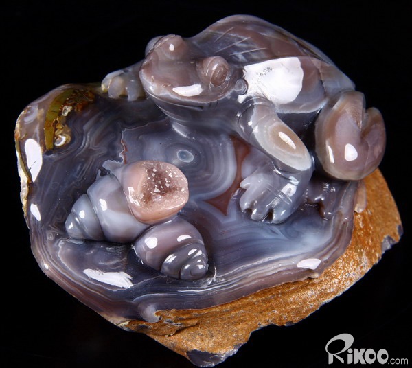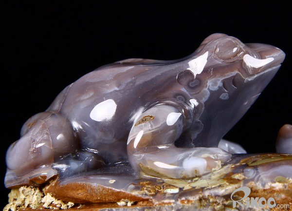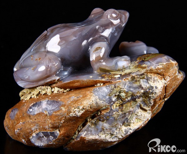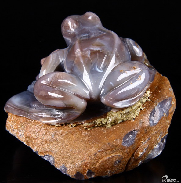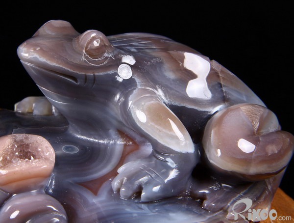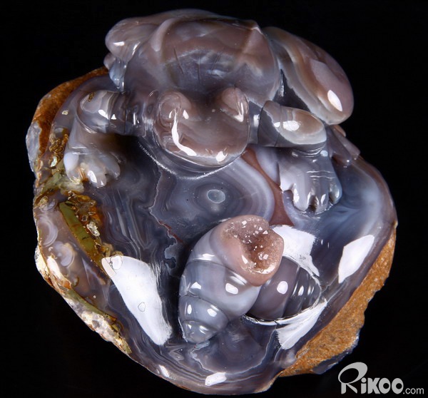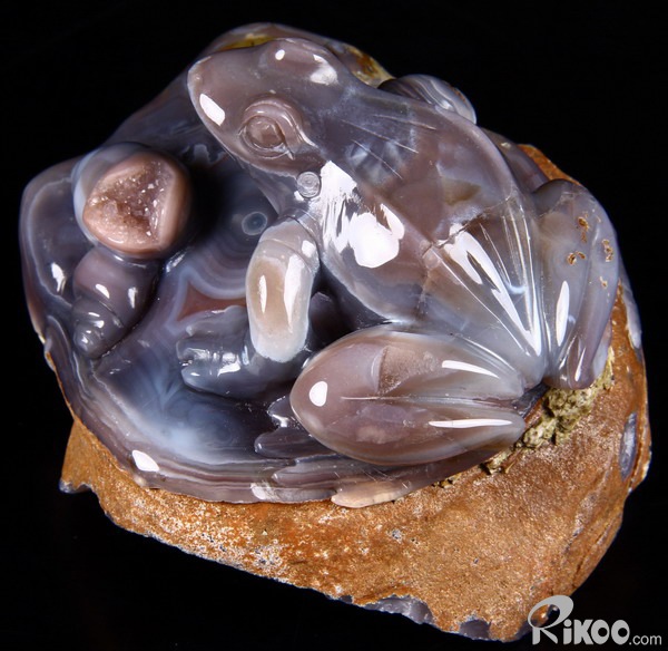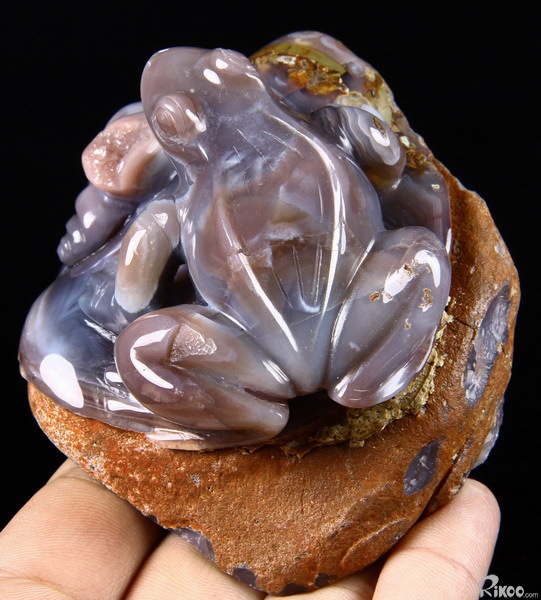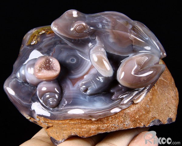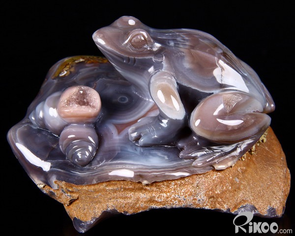 Fine Gemstone Huge 4.0" Mozambique Agate Carved Crystal Frog & Shells #2700548