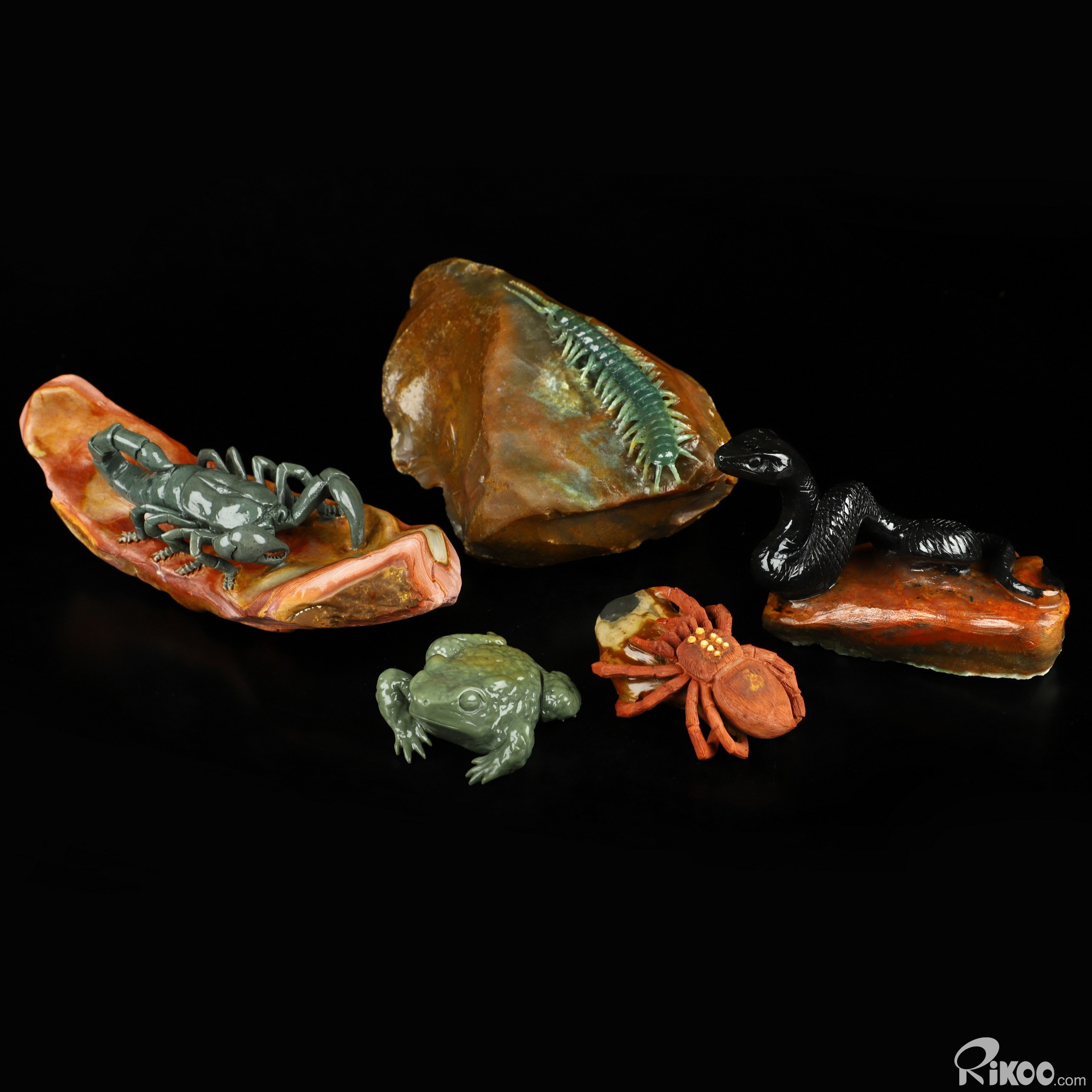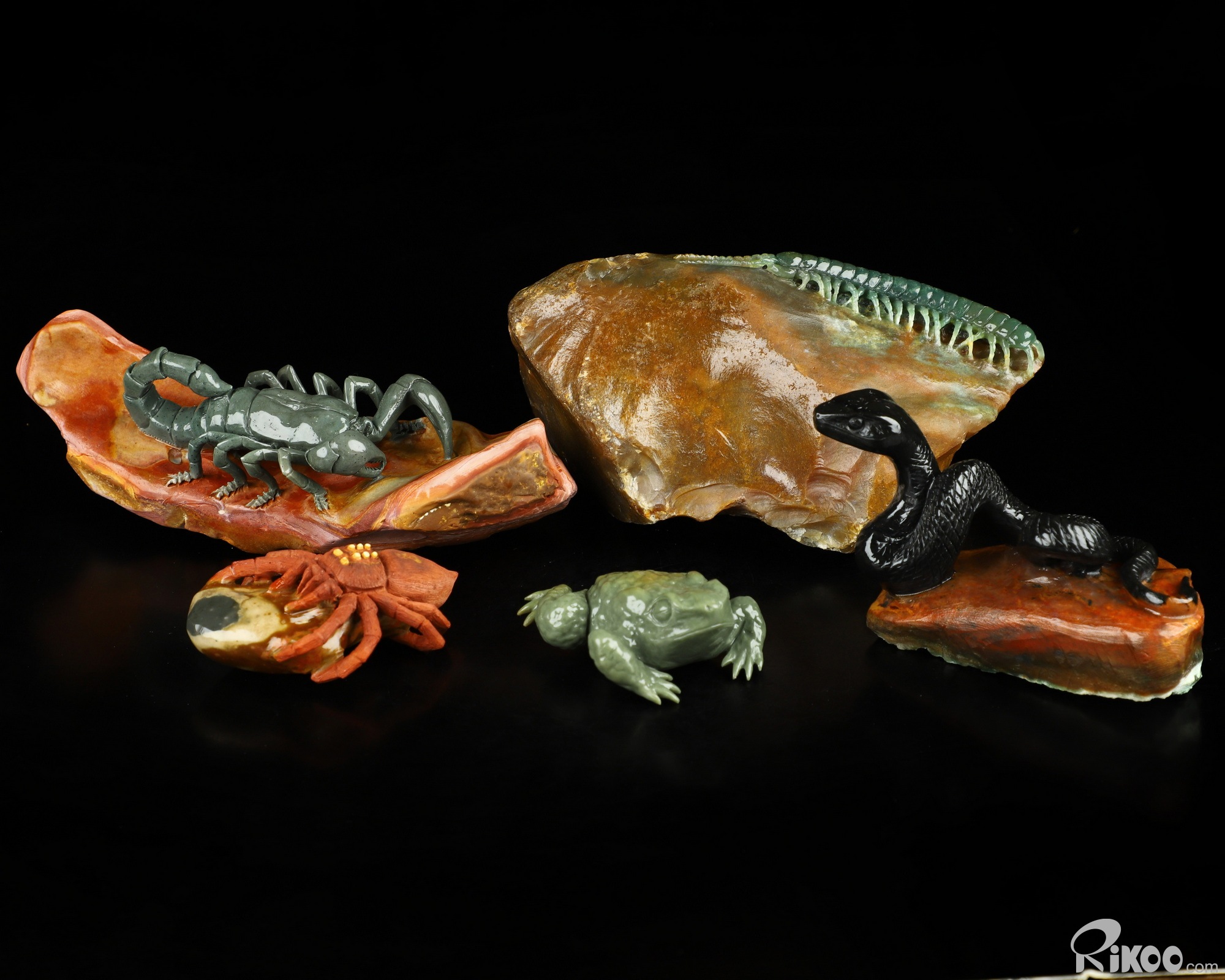 Five Poisons Indian Agate Hand Carved Crystal Sculpture, Crystal Healing