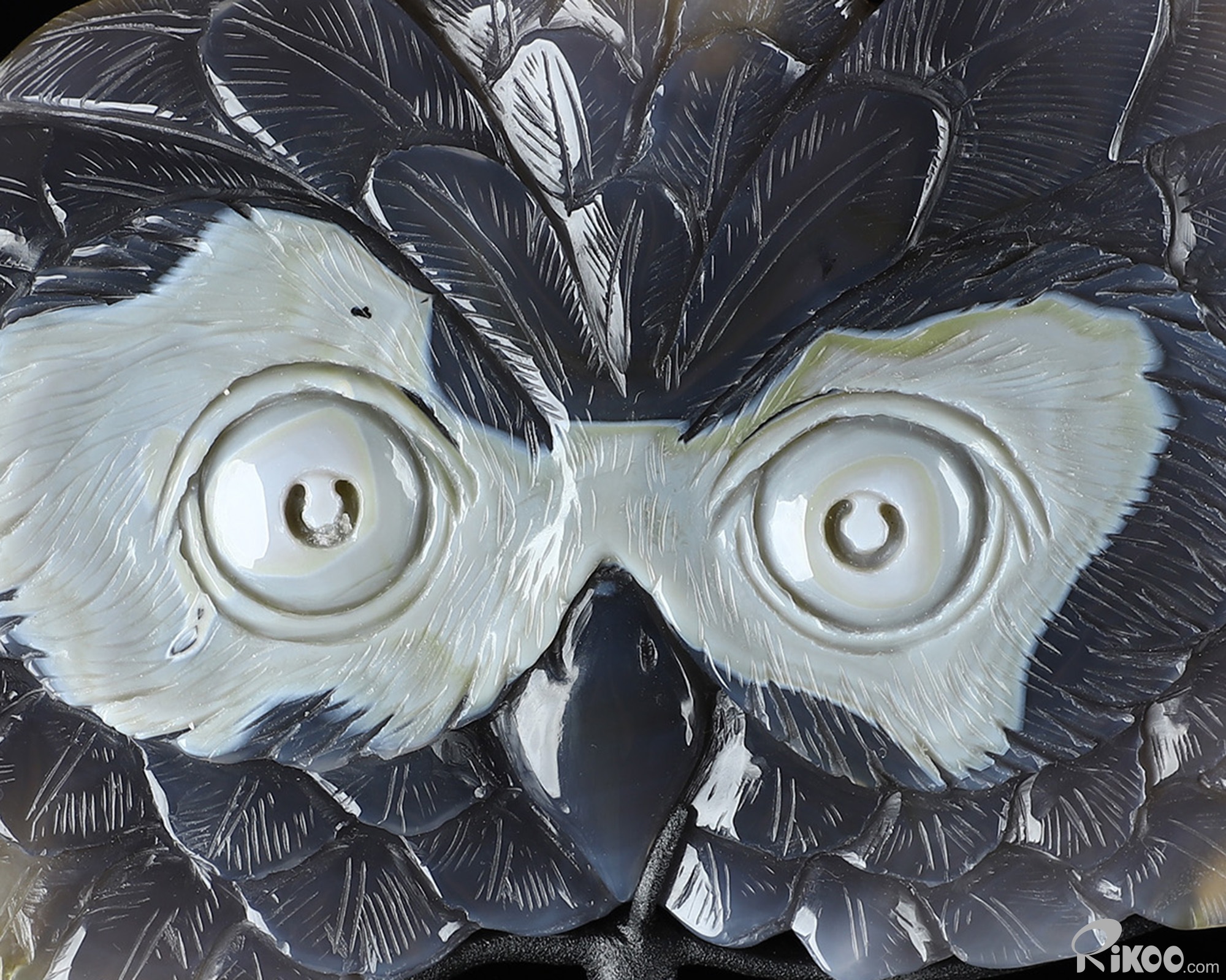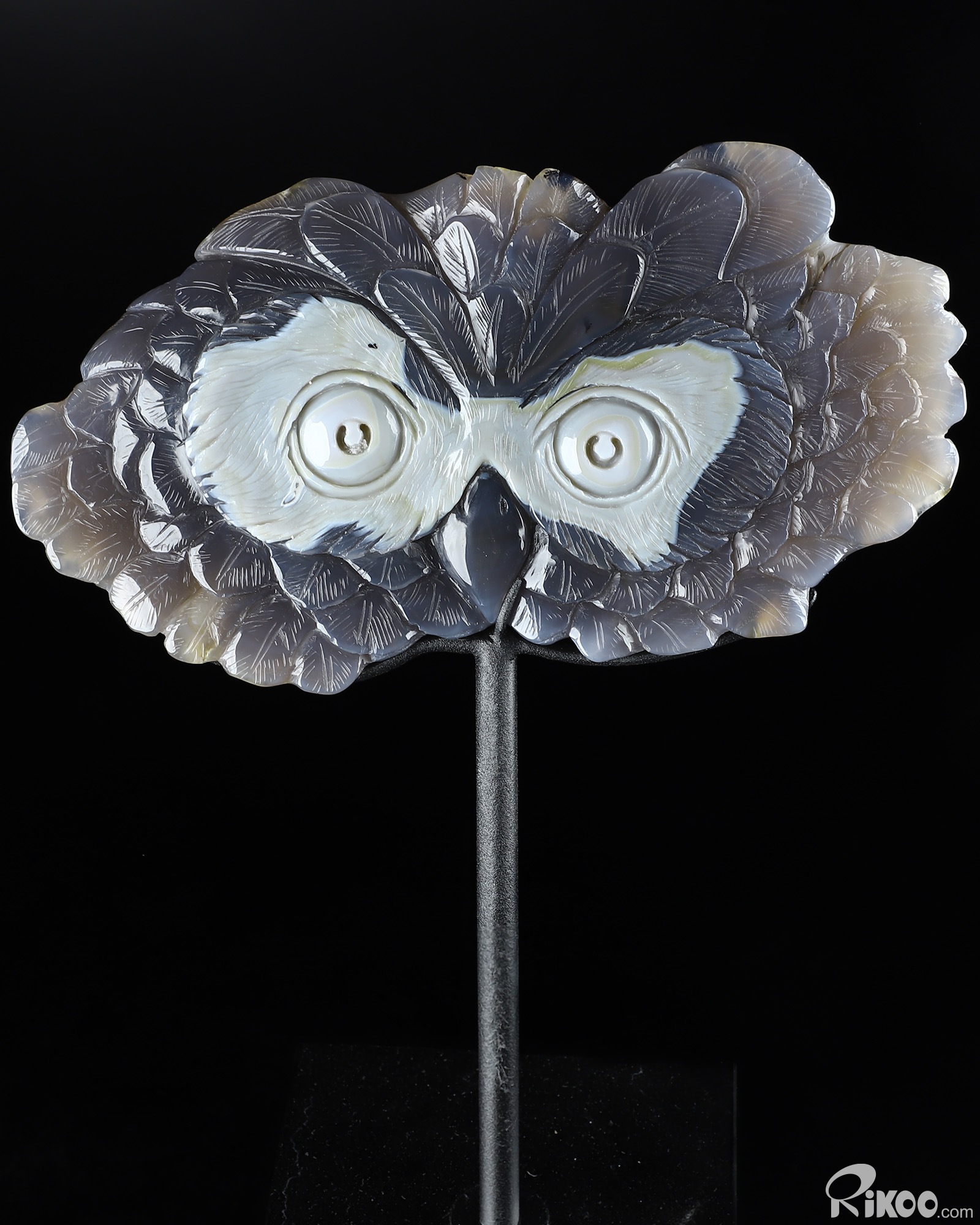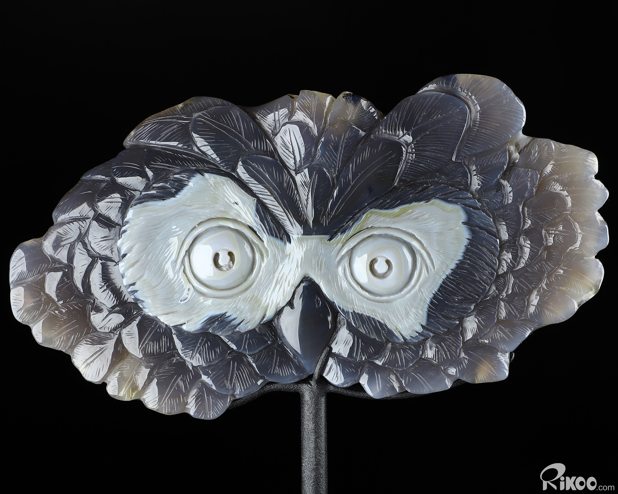 Flaky 7.3" Agate Carved Crystal Owl Sculpture, Crystal Healing