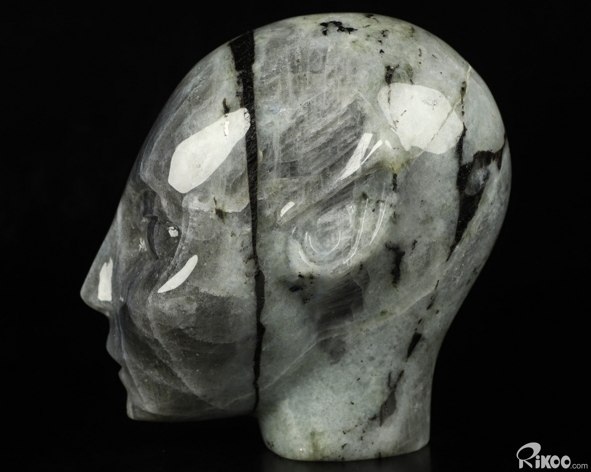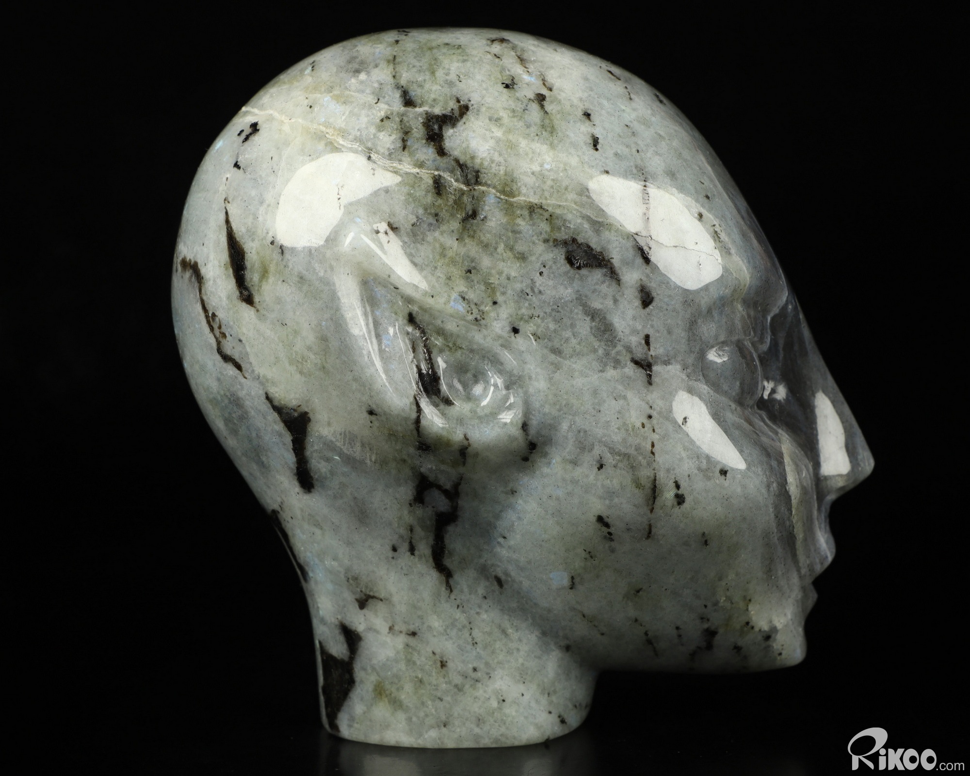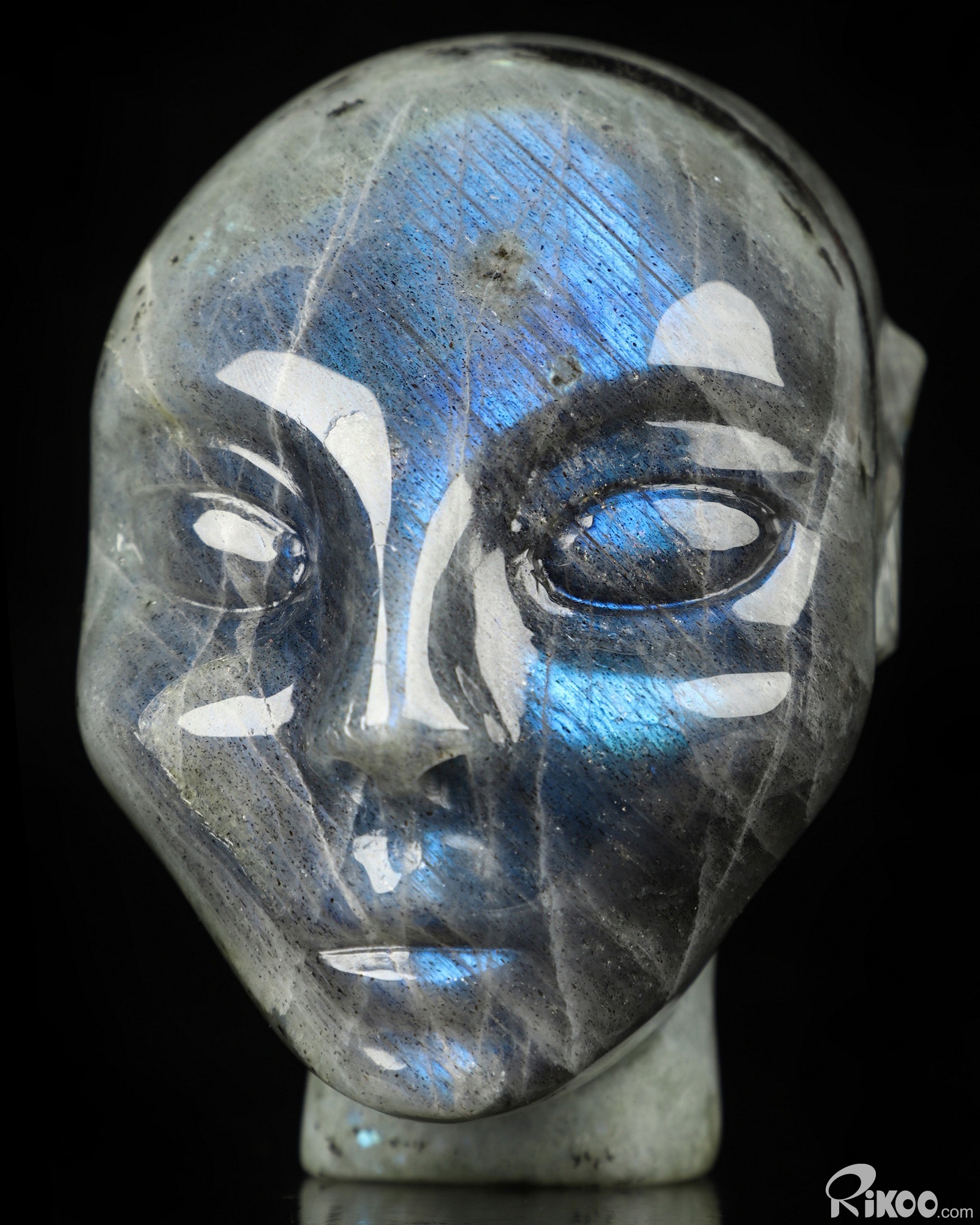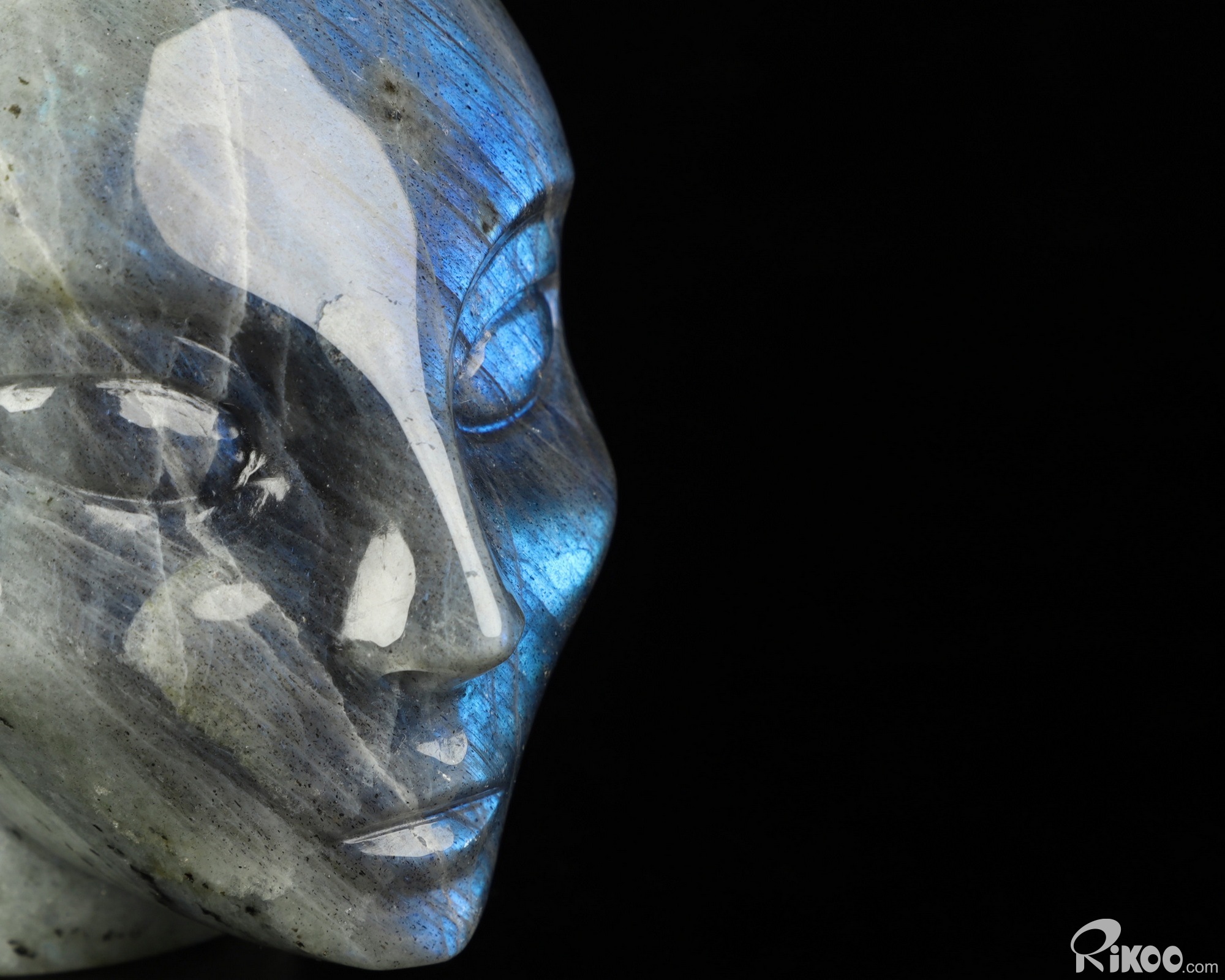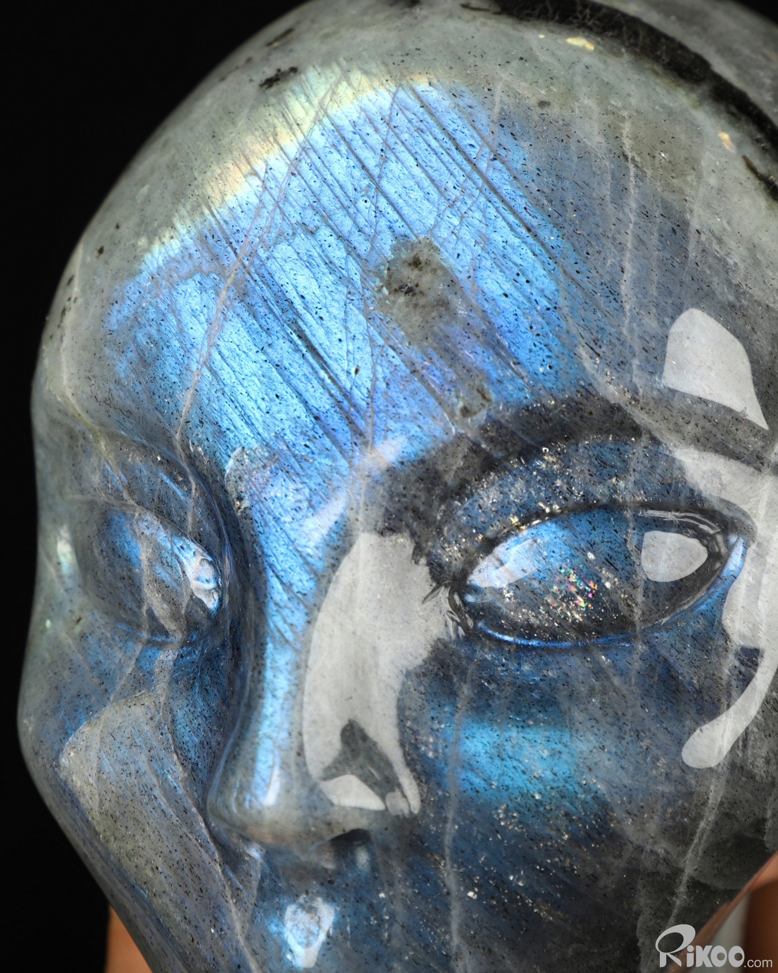Flash 4.1" Labradorite Carved Fairy Elf Alien Crystal Skull Companion Sculpture, Crystal Healing
