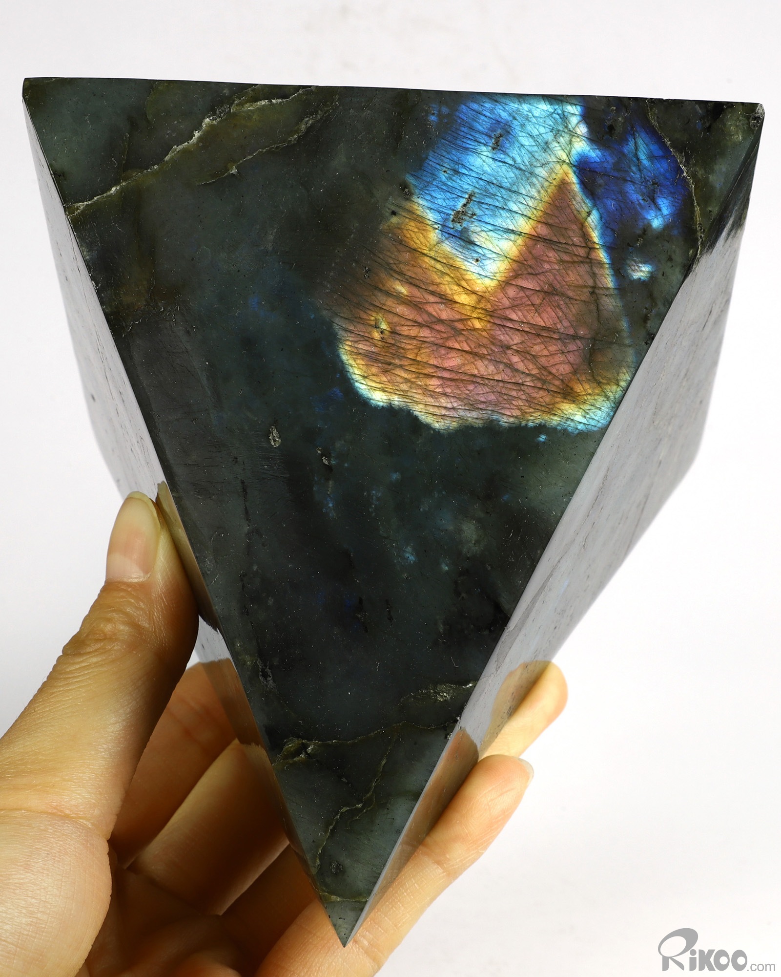 Flash 4.4" Labradorite Carved Crystal Pyramid, Realistic, Crystal Healing