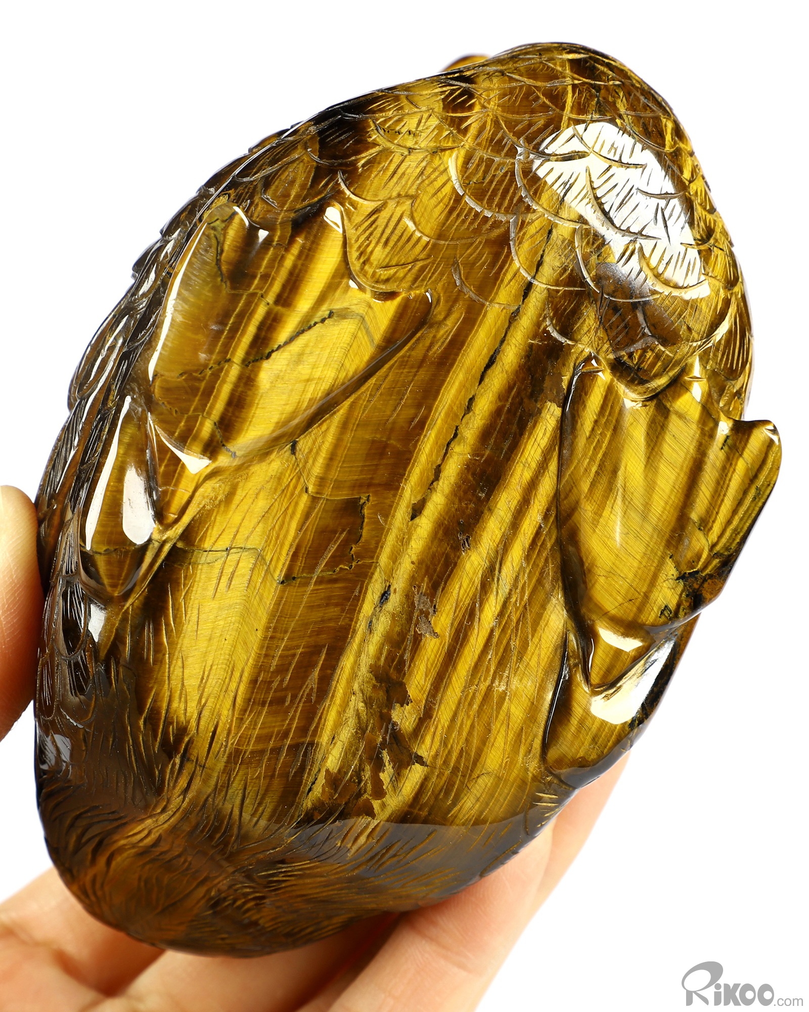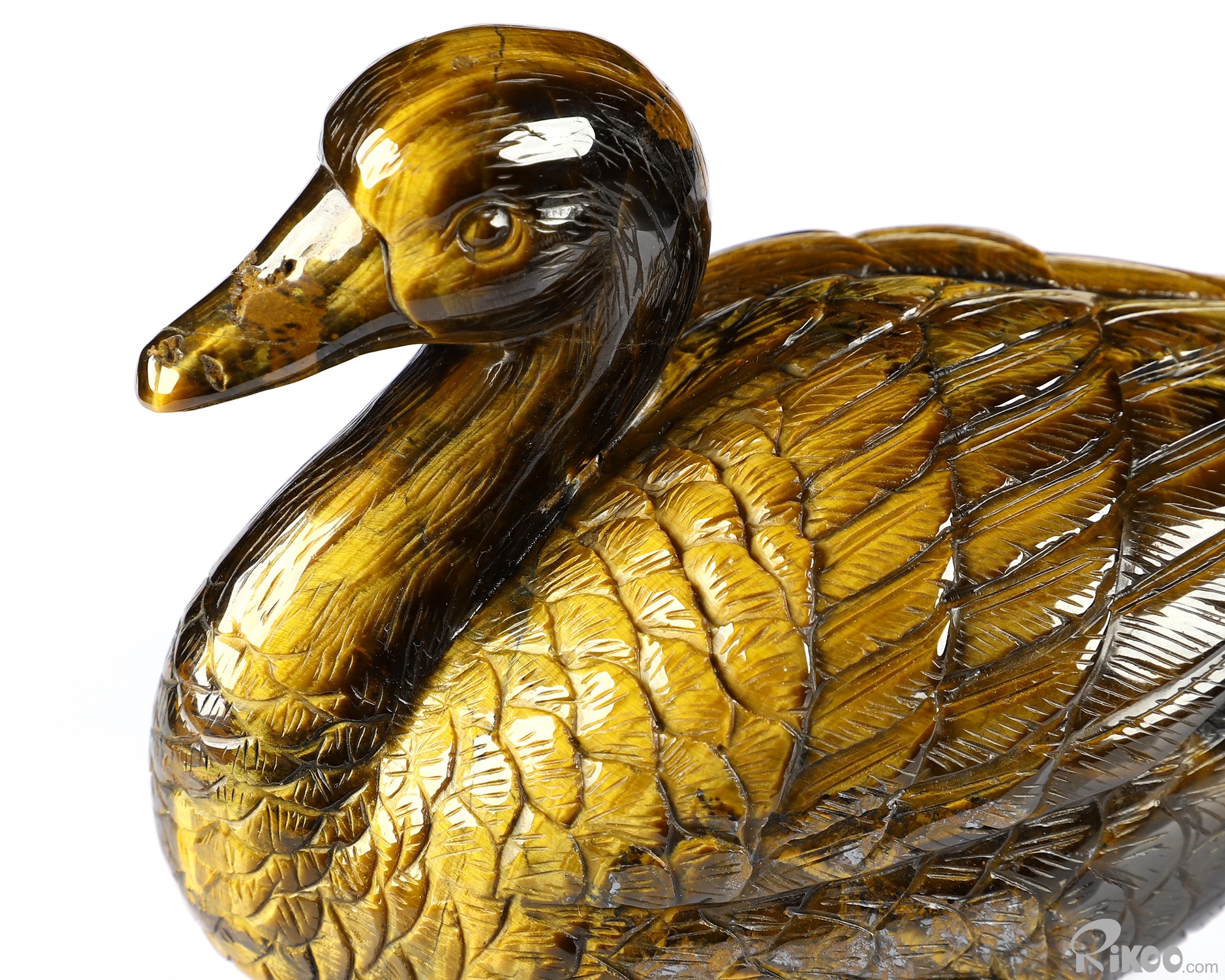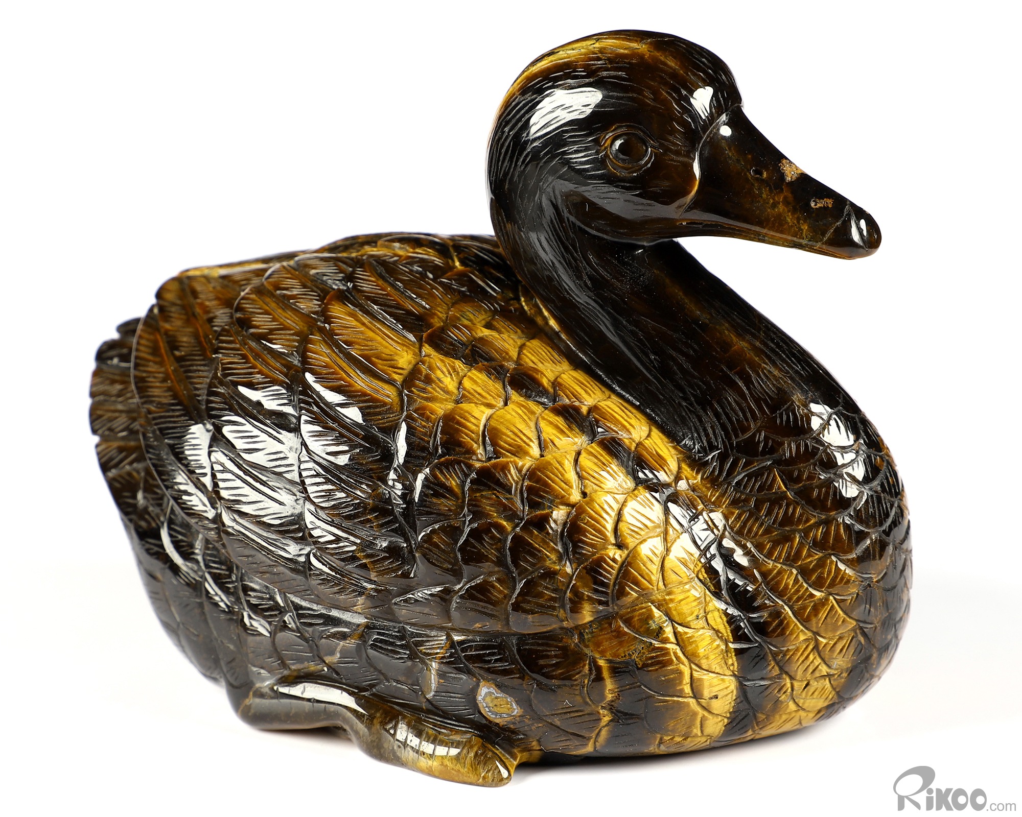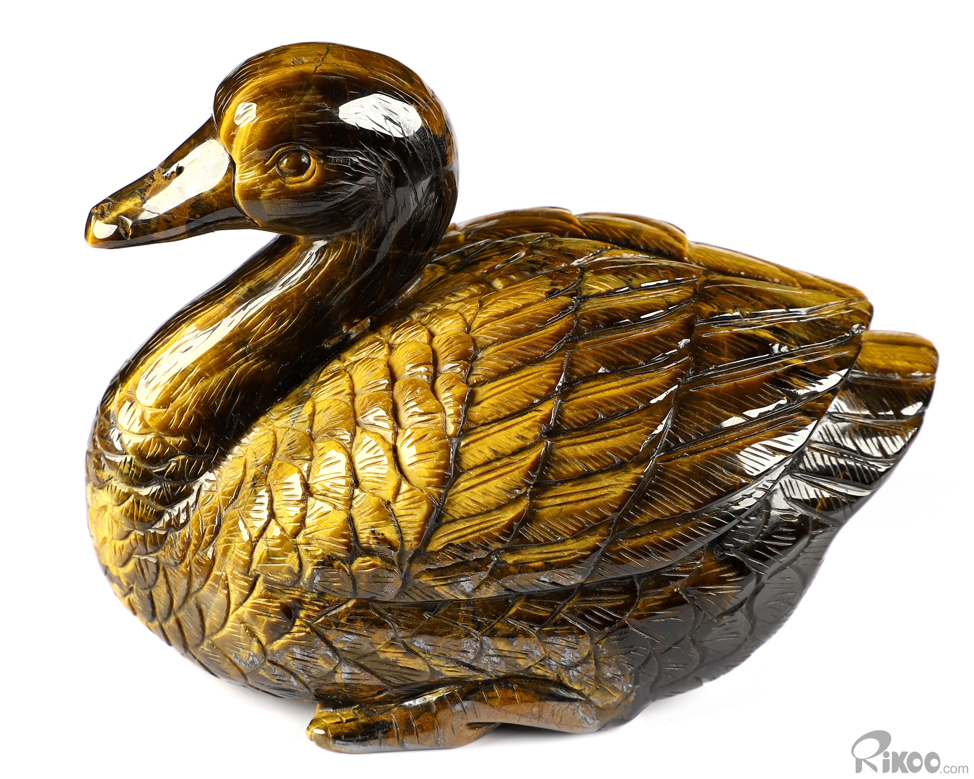 Flash 4.7" Gold Tiger's Eye Carved Crystal Duck, Realistic, Crystal Healing