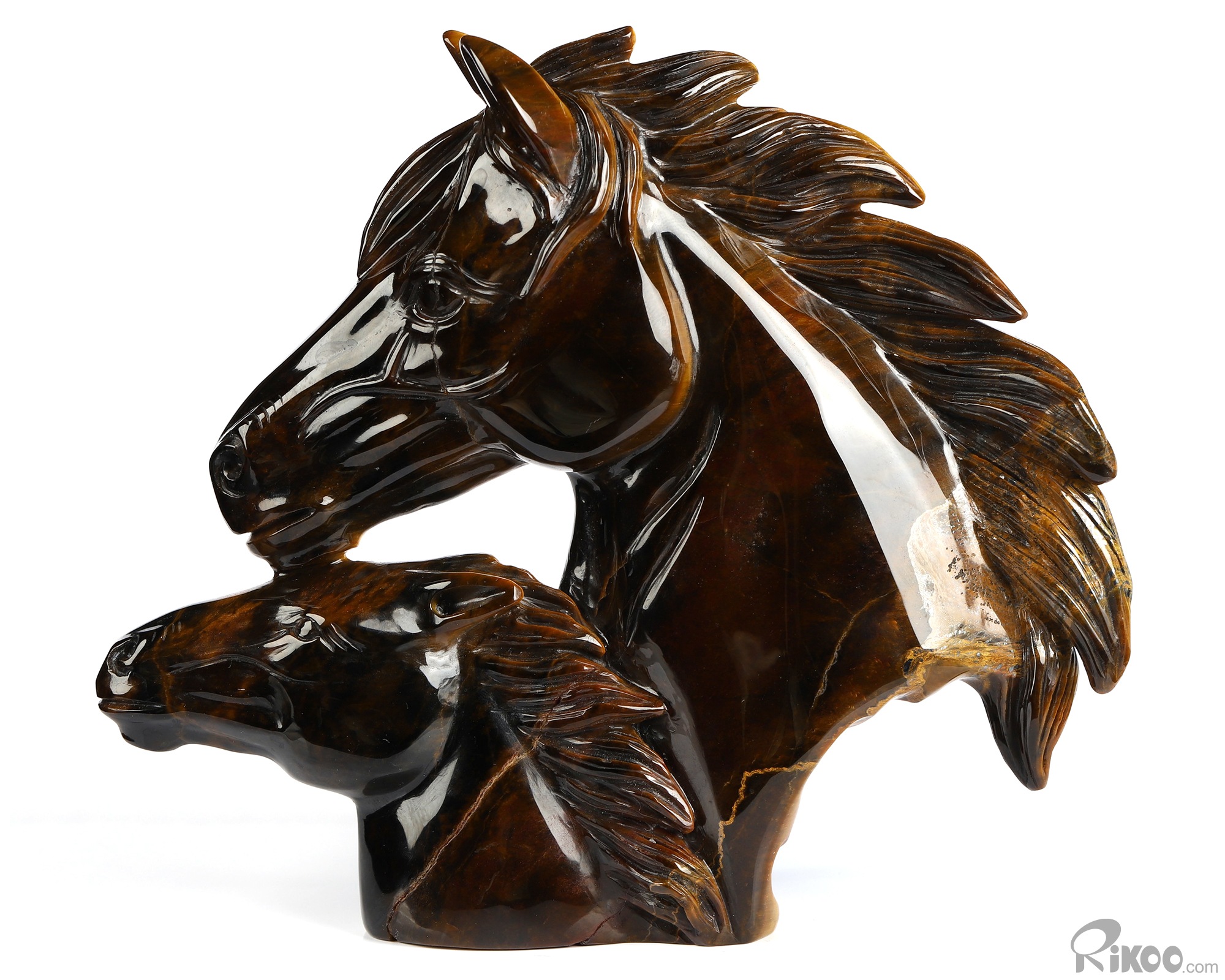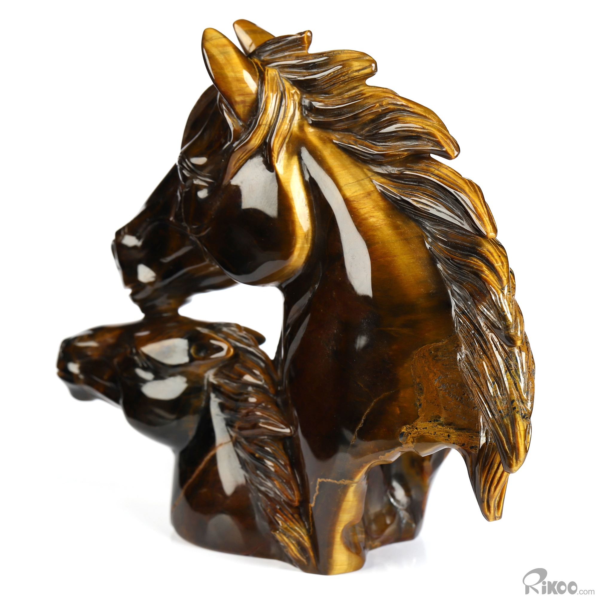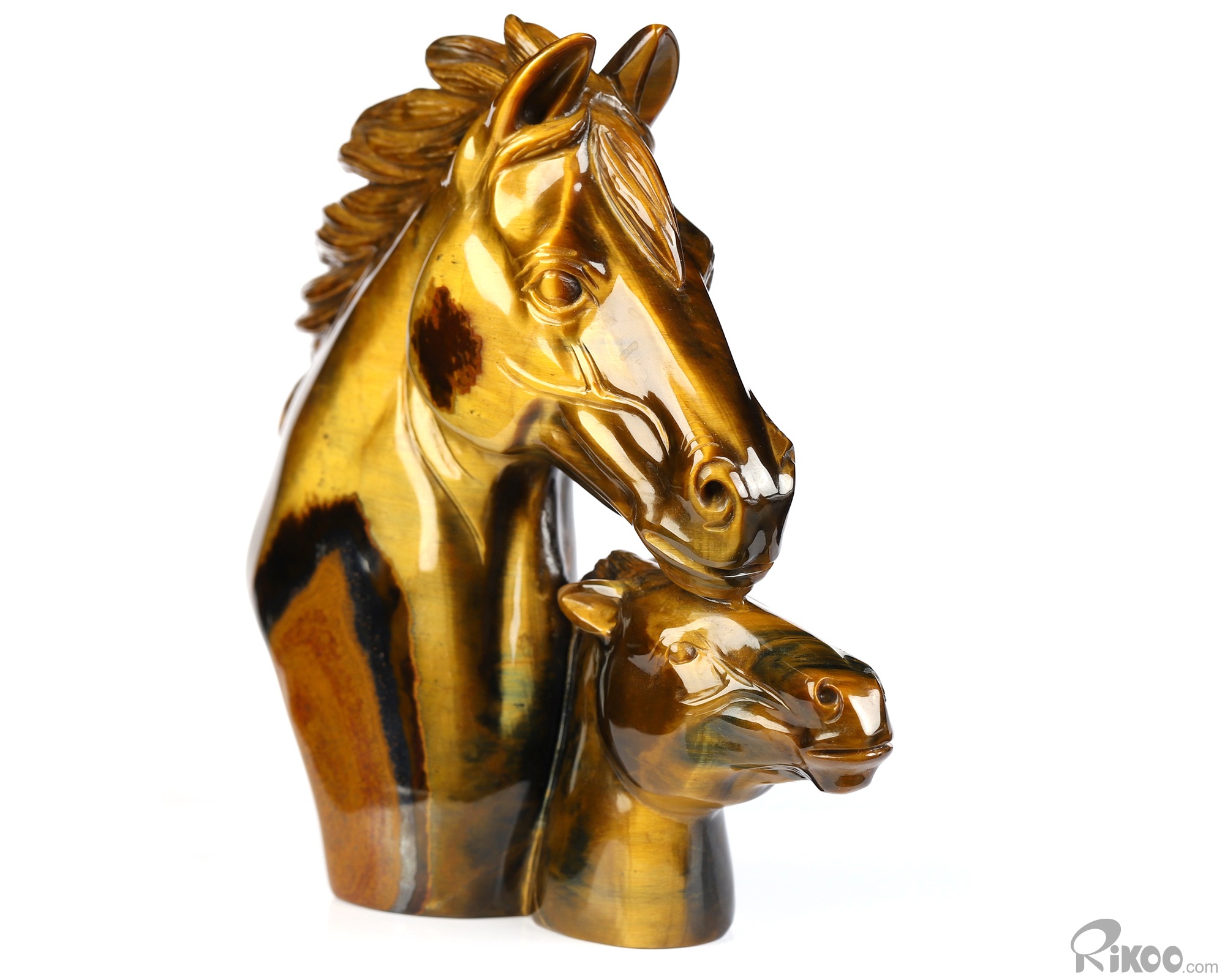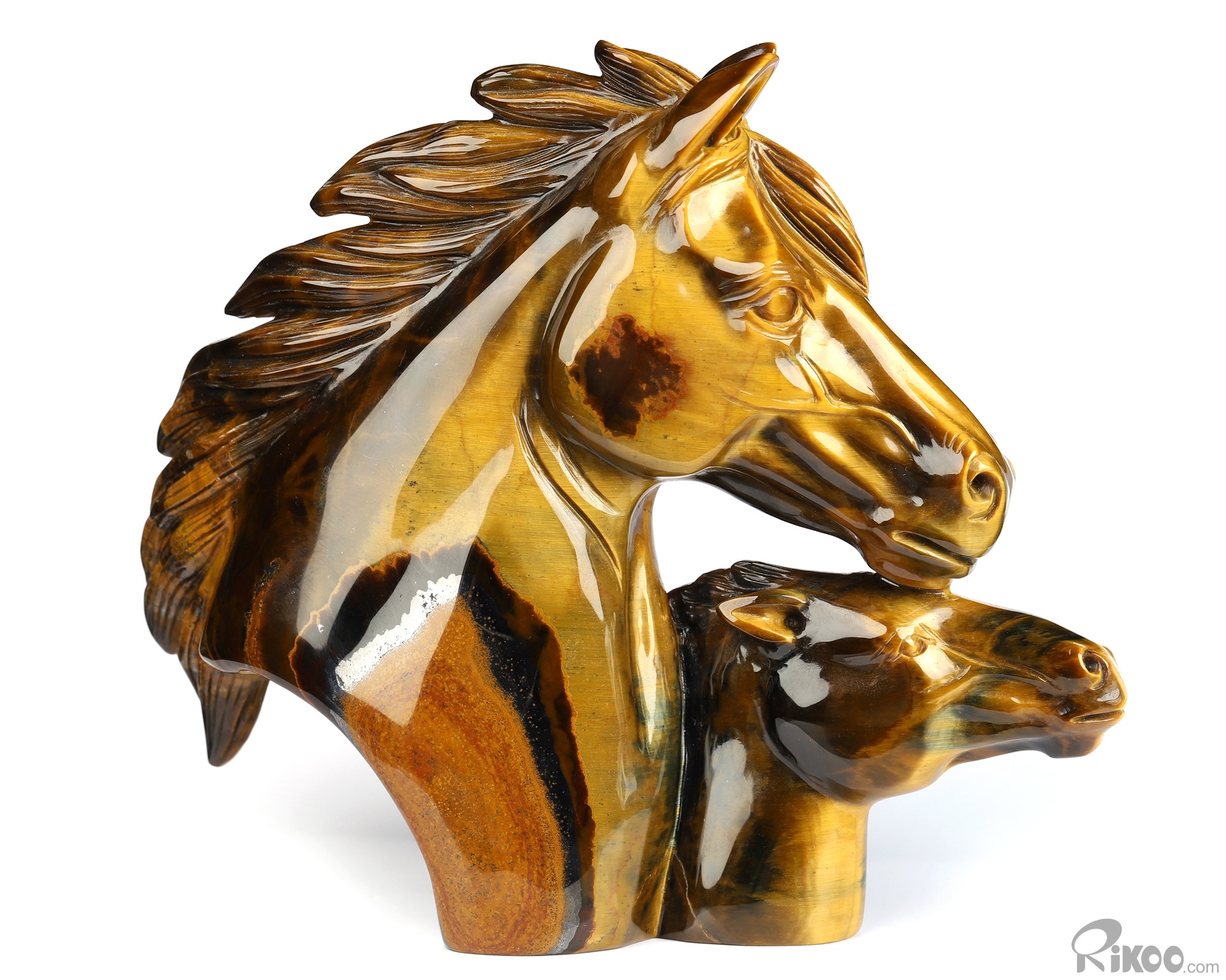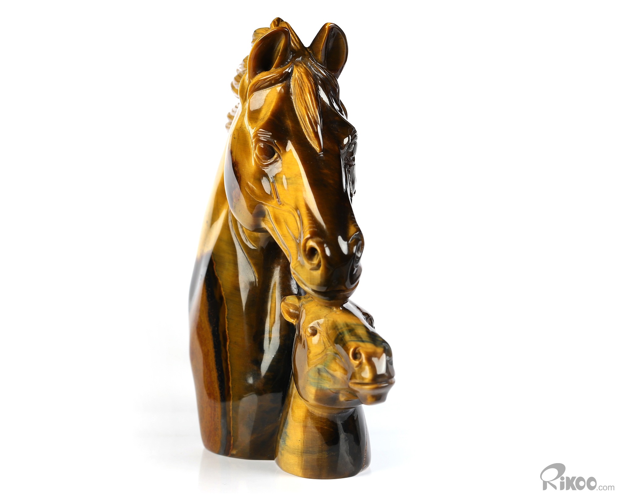Mother's Embrace - Flash 5.4" Gold Tiger's Eye Hand Carved Crystal Horse Sculpture, Crystal Healing