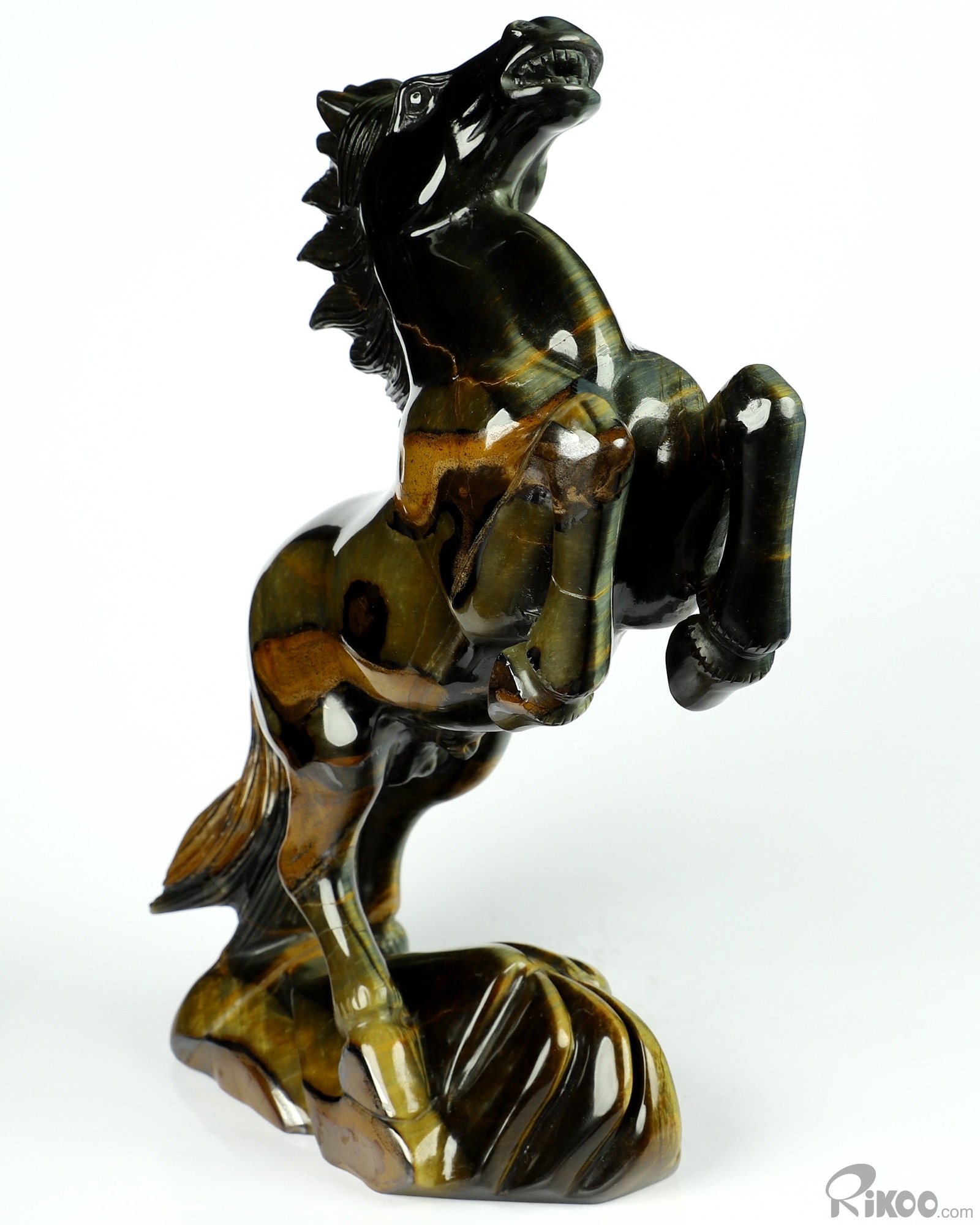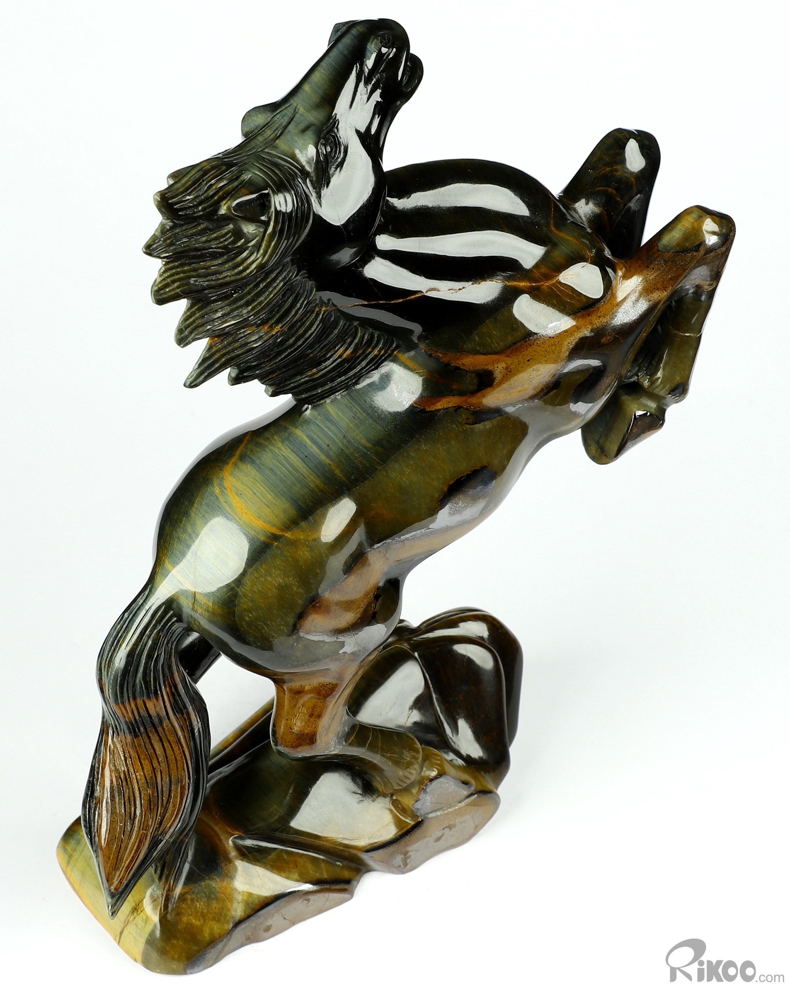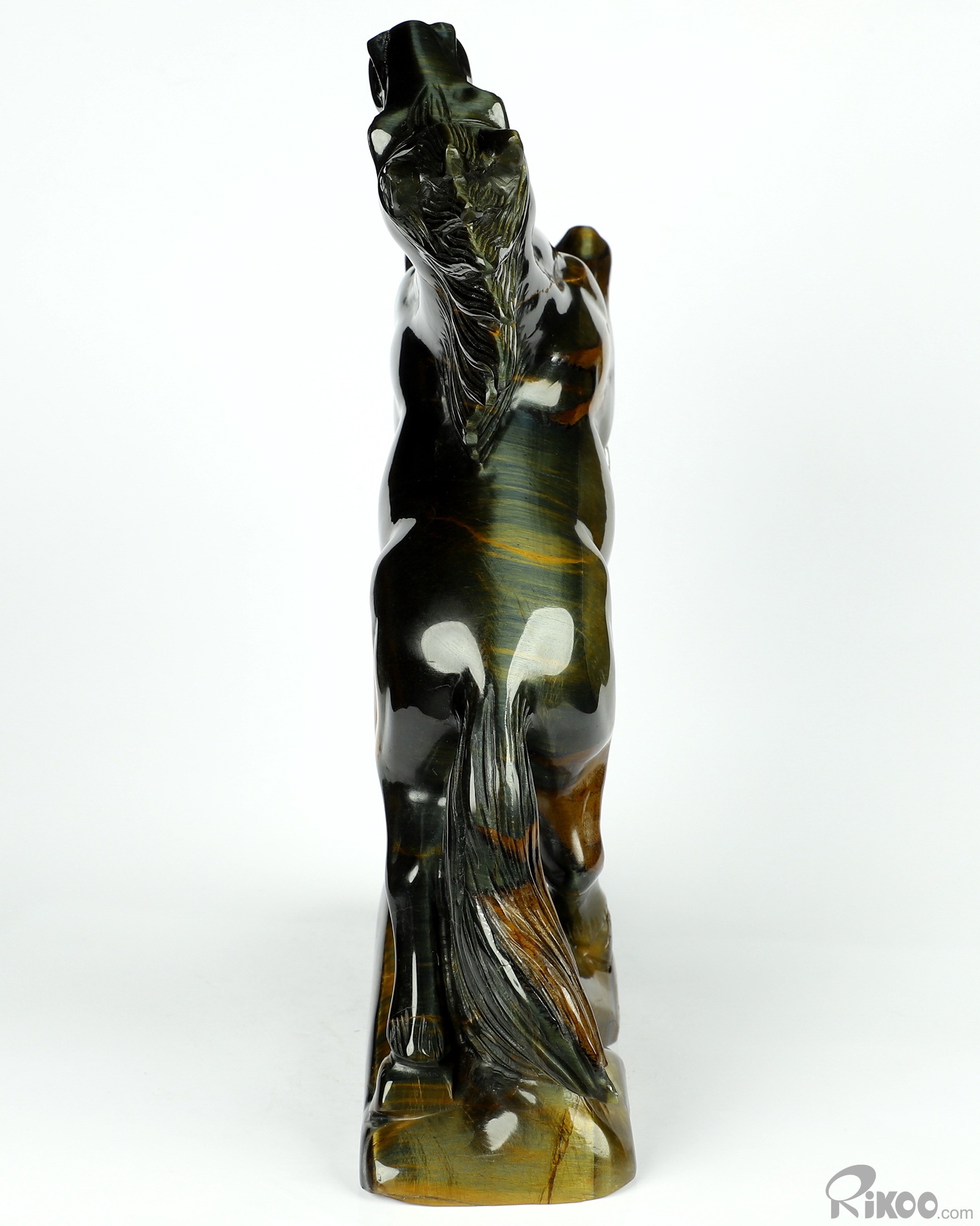 Flash 7.9" Blue & Gold Tiger's Eye Carved Crystal Horse Sculpture, Realistic, Crystal Healing