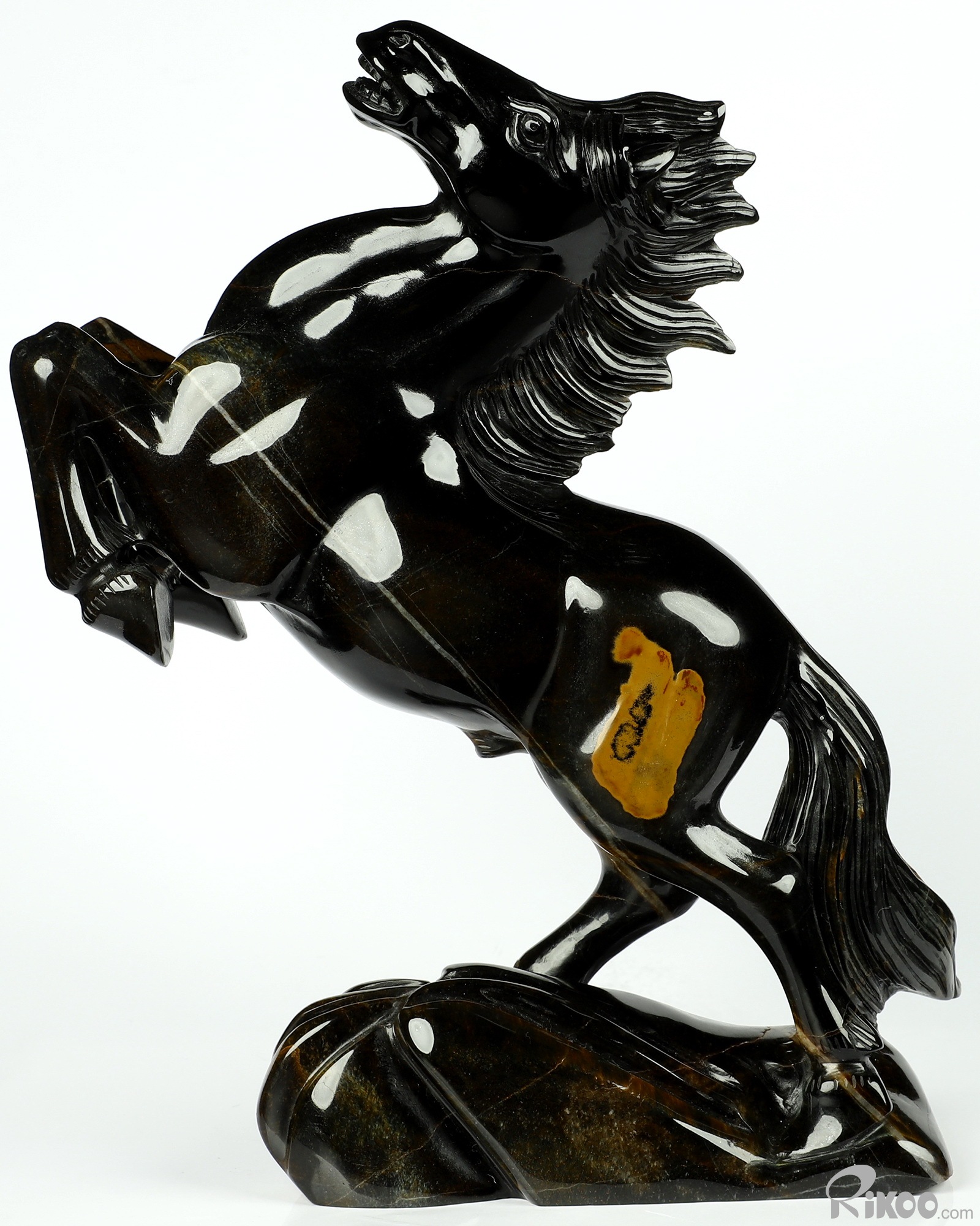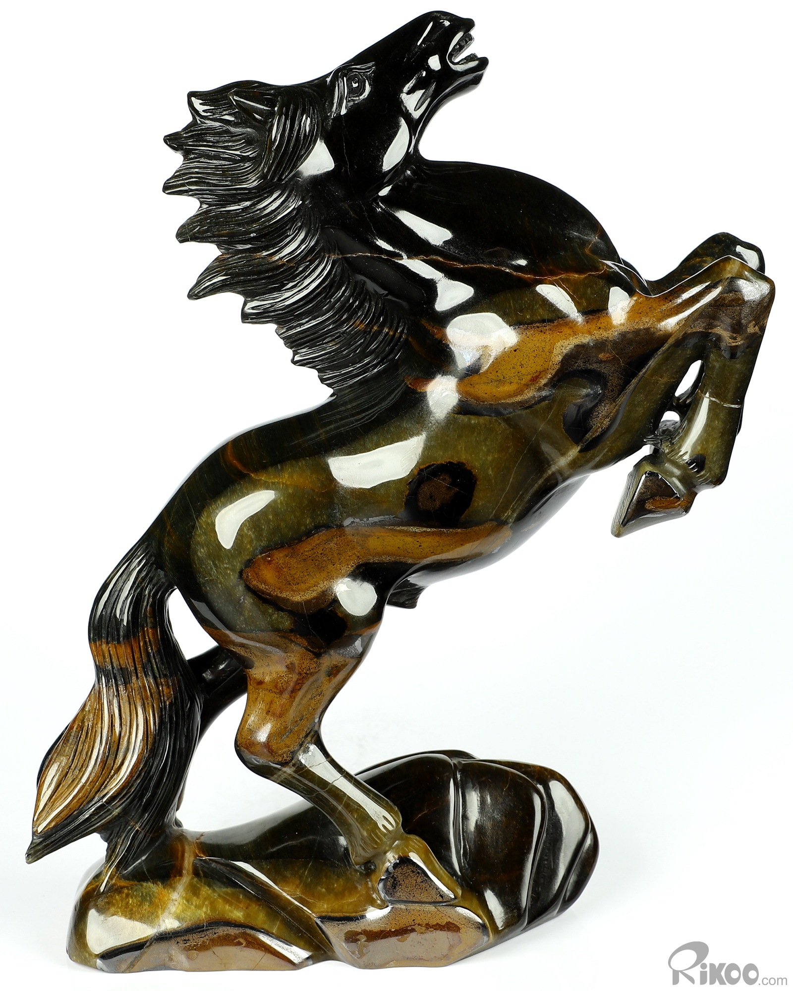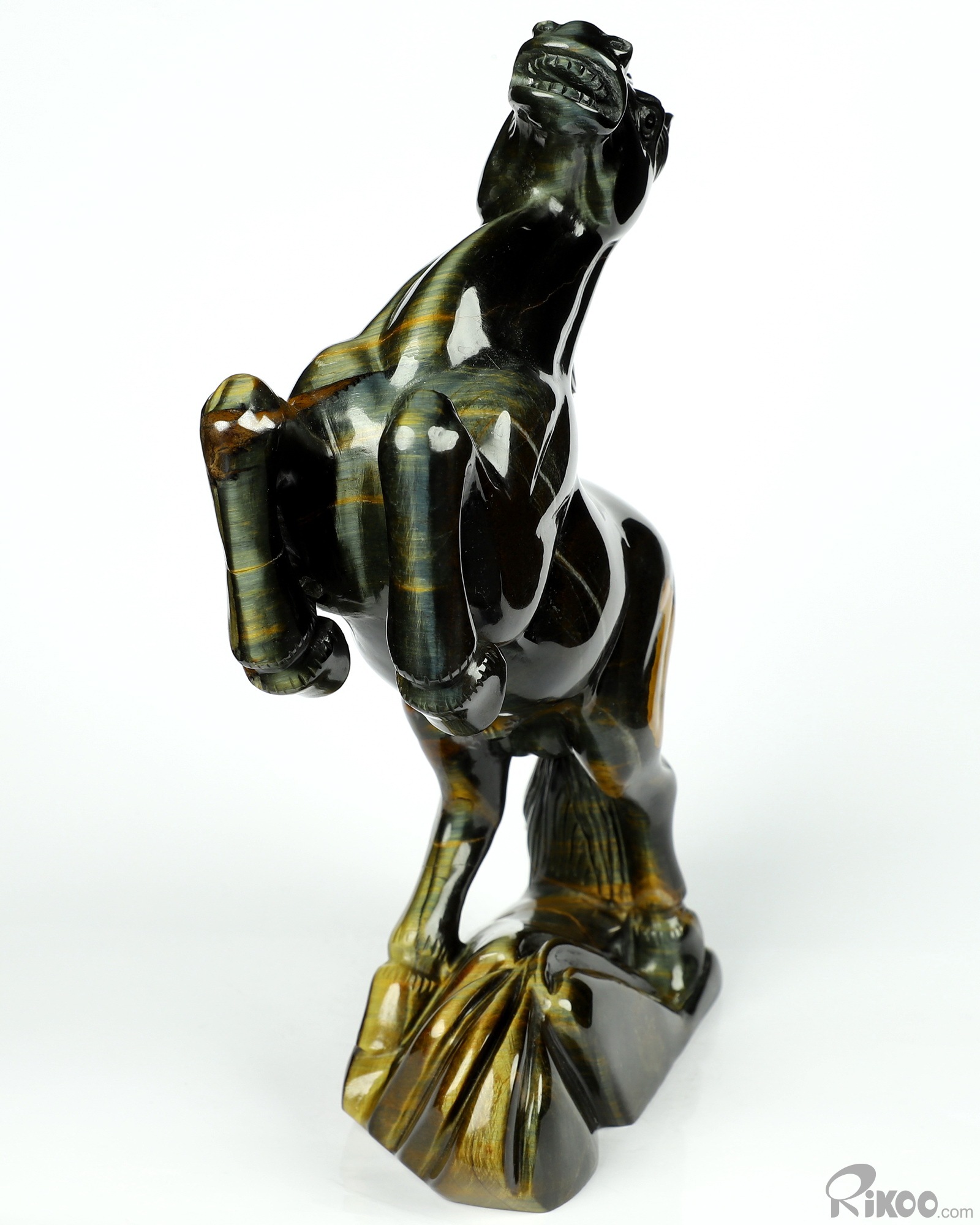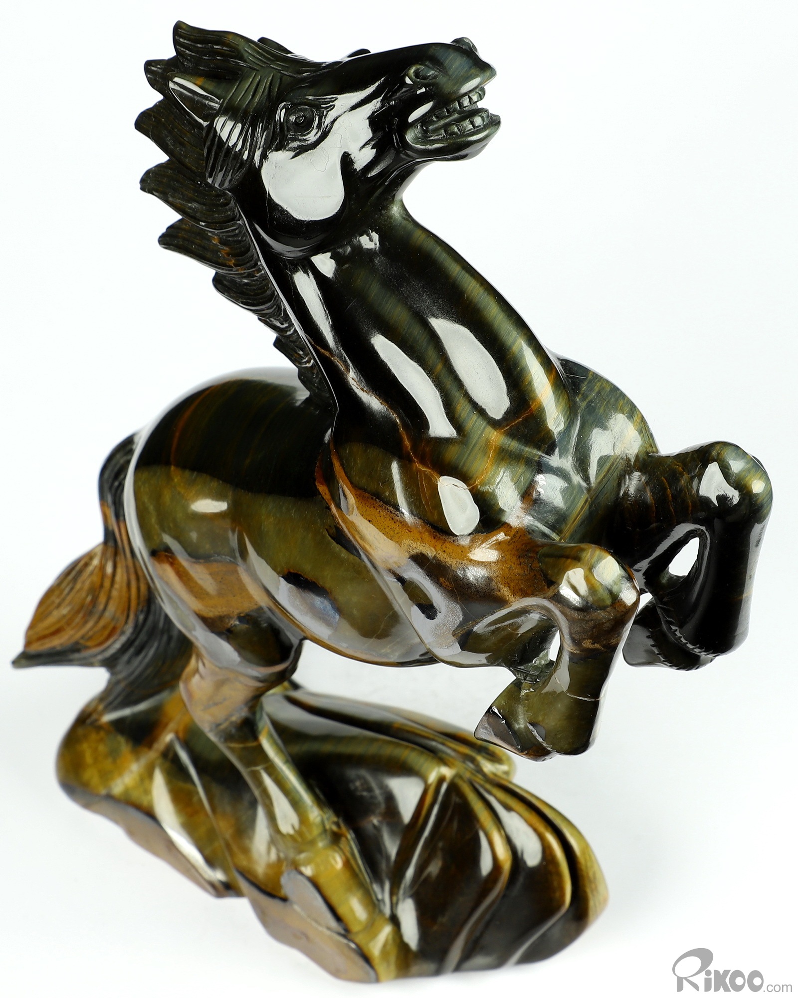 Flash 7.9" Blue & Gold Tiger's Eye Carved Crystal Horse Sculpture, Realistic, Crystal Healing