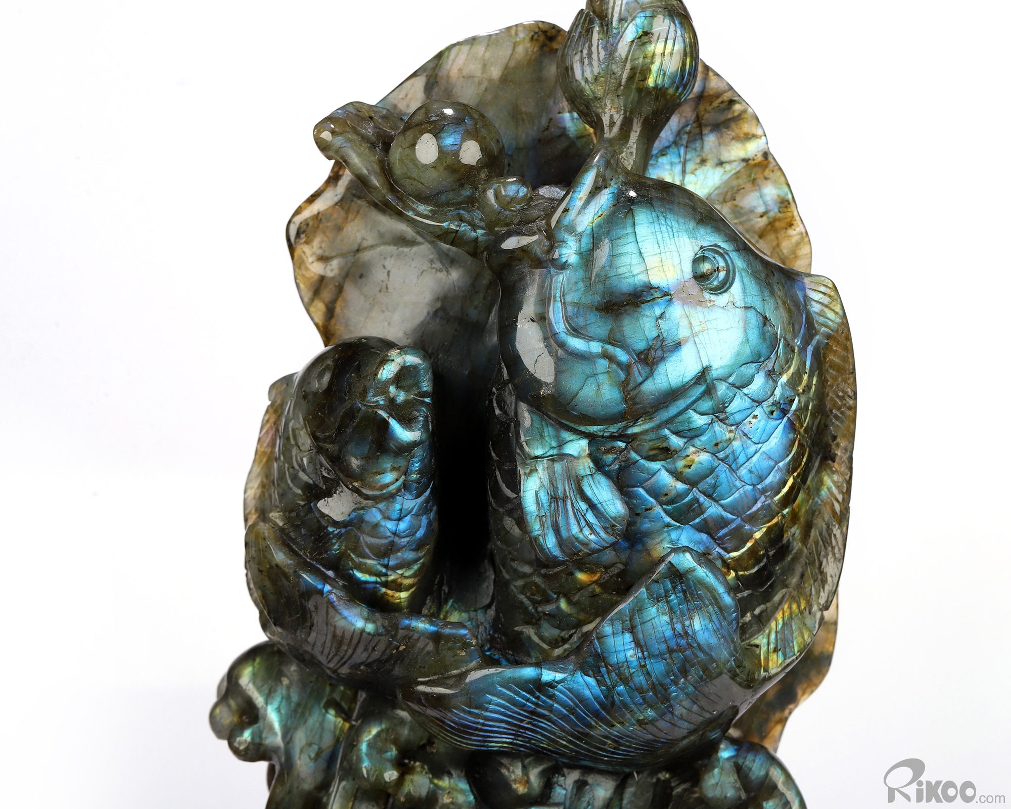You are looking at a Labradorite Fish sculpture. The sculpture is 8.9 inches long.