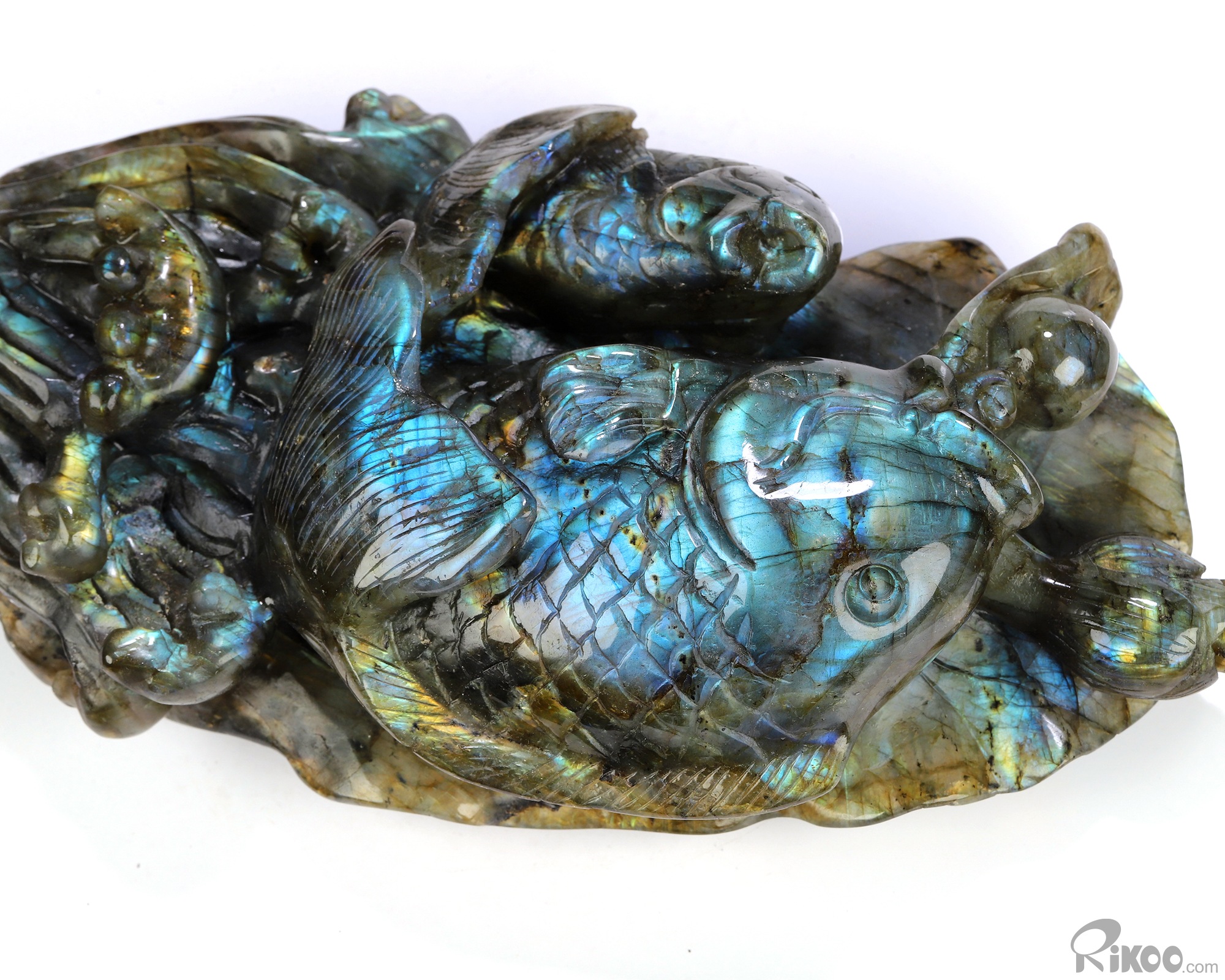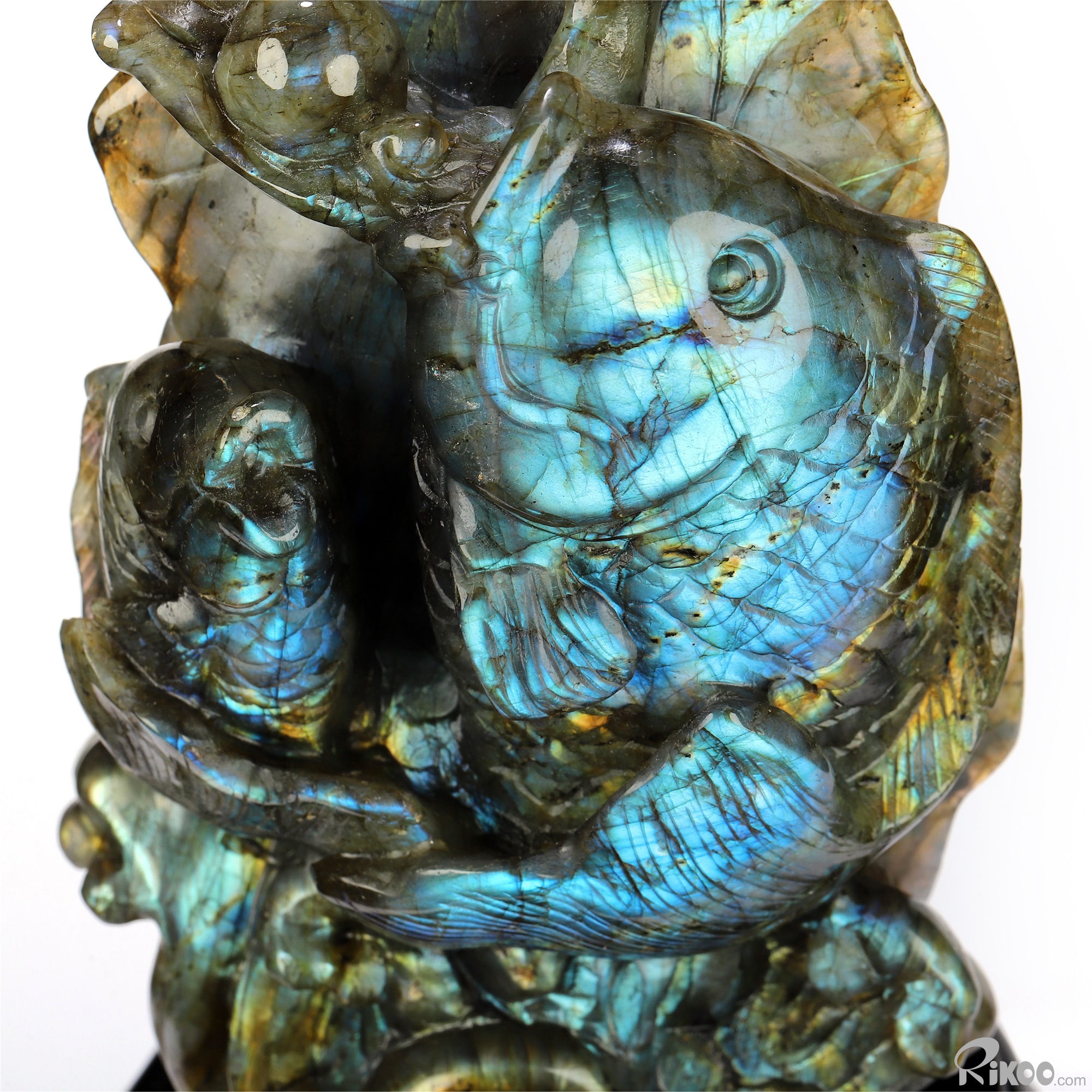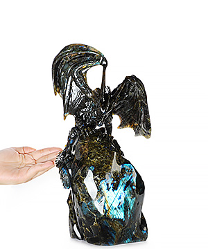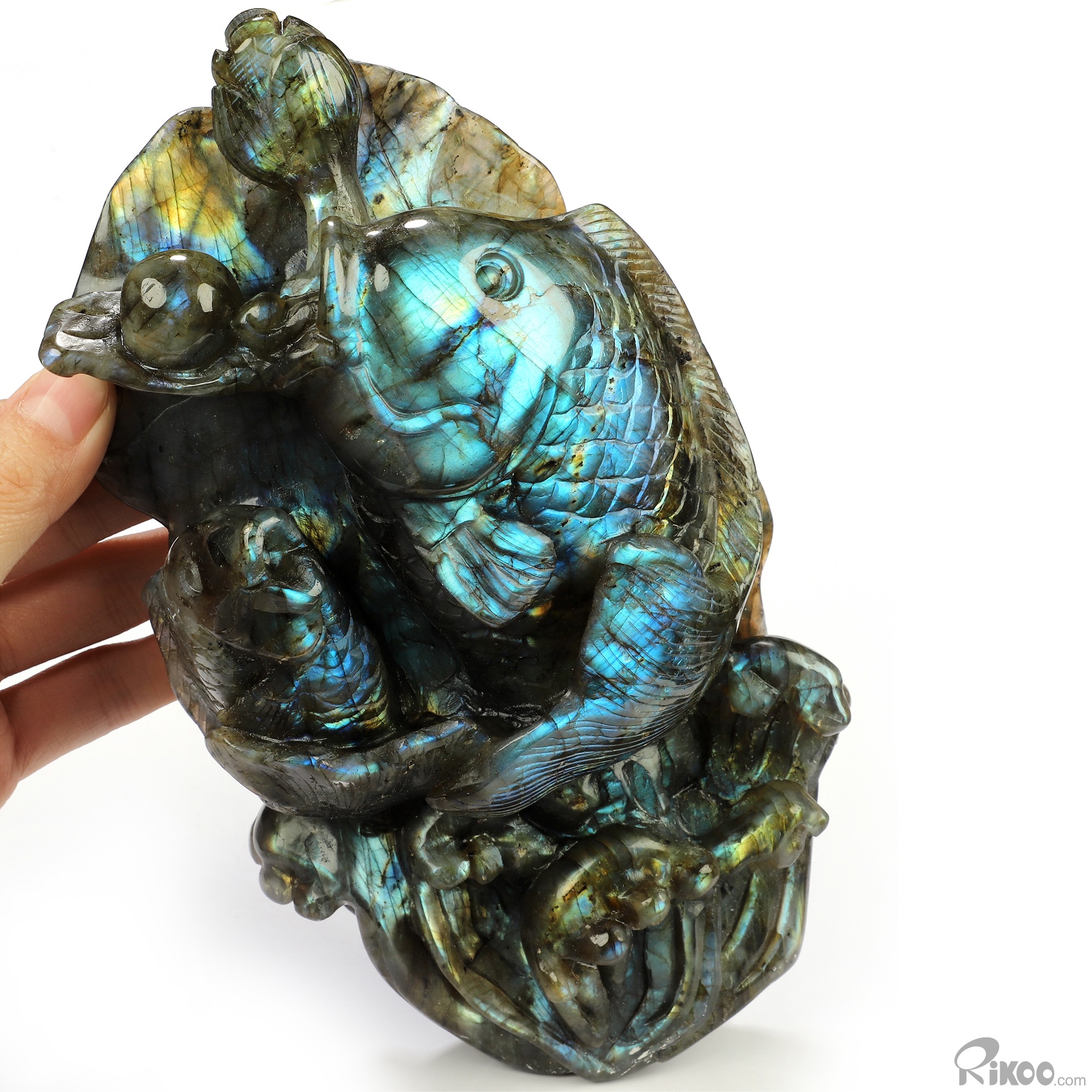 Flash! 8.9" Labradorite Hand Carved Crystal Fish Sculpture, Crystal Healing