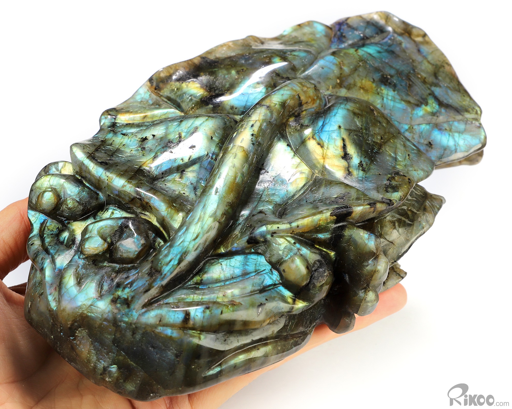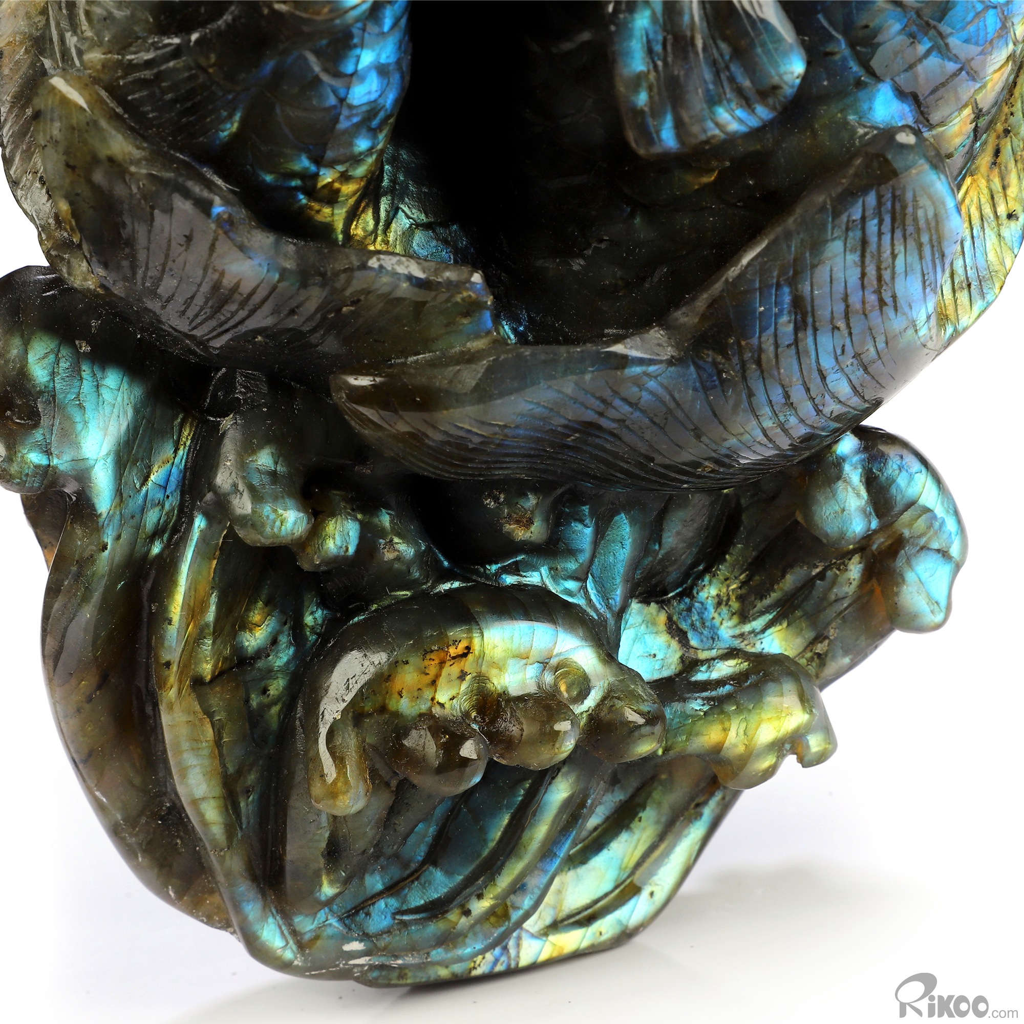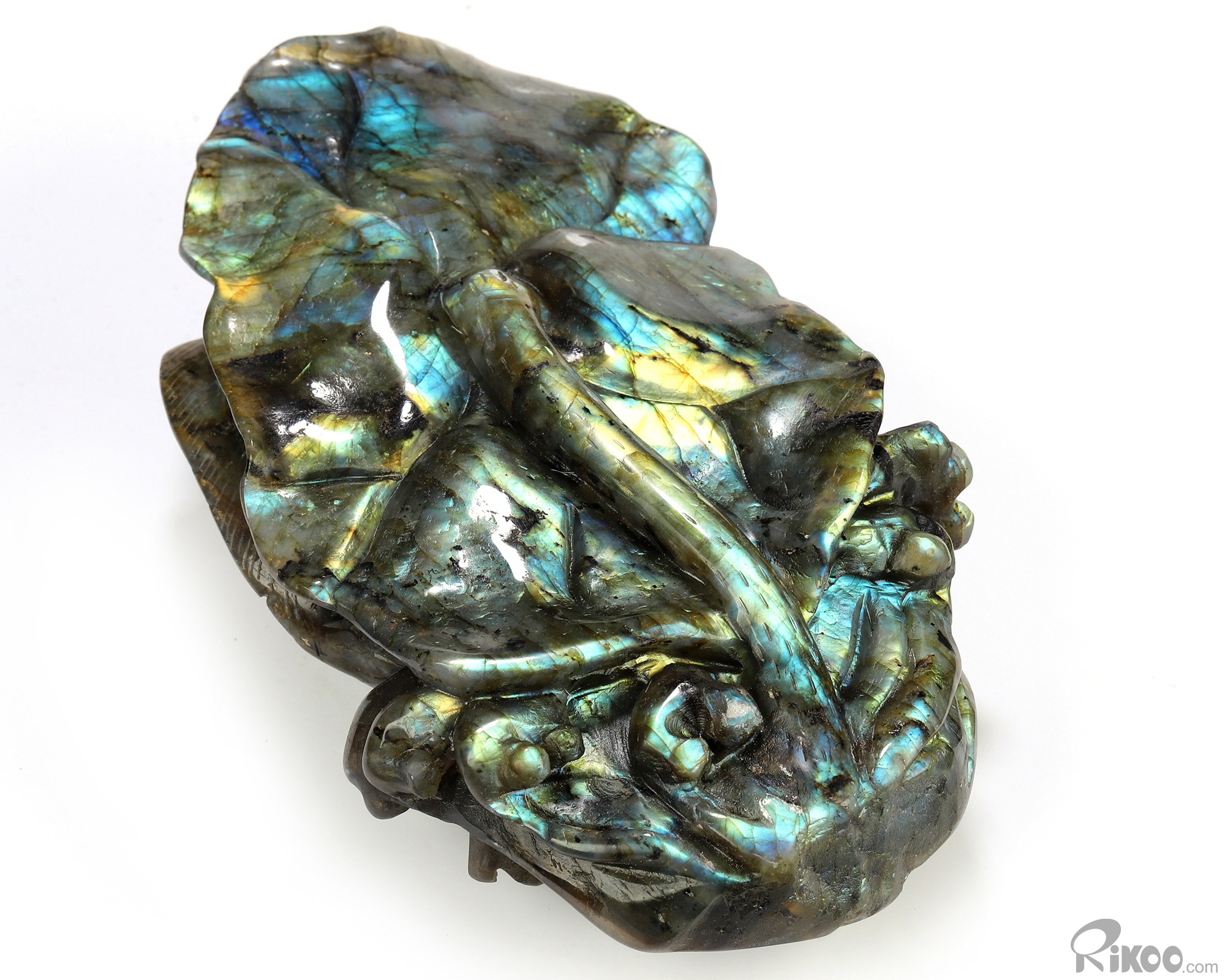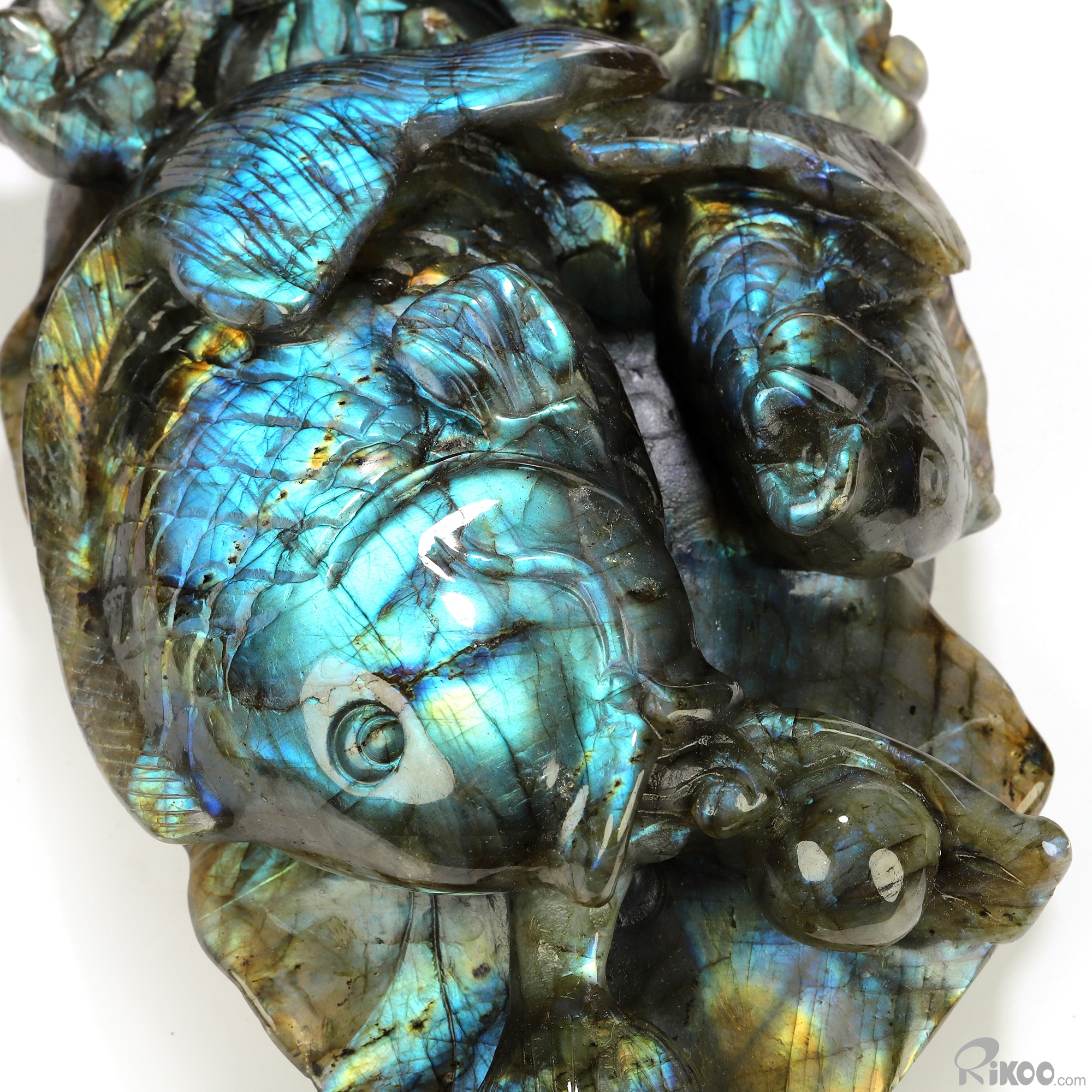 Flash! 8.9" Labradorite Hand Carved Crystal Fish Sculpture, Crystal Healing