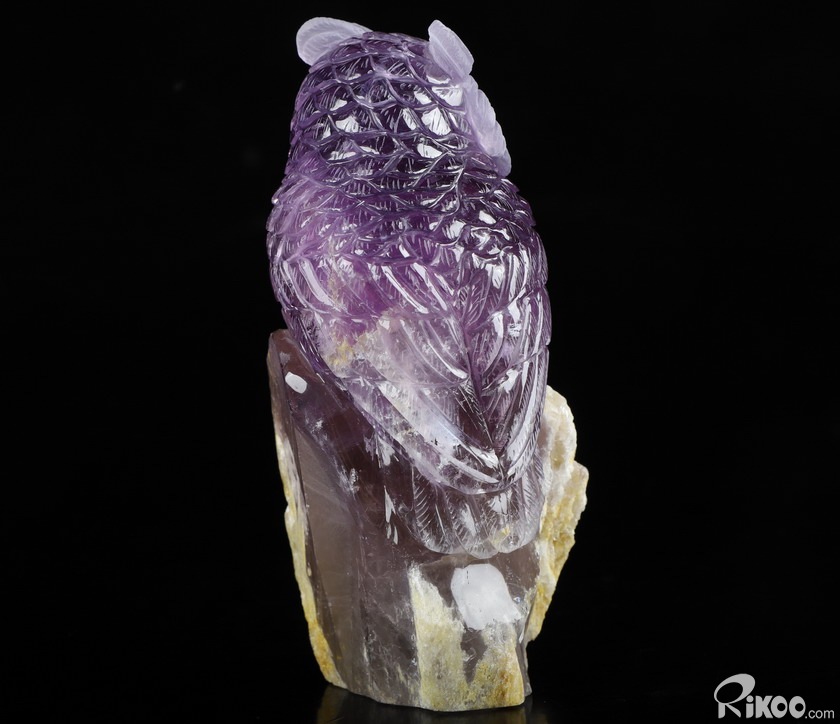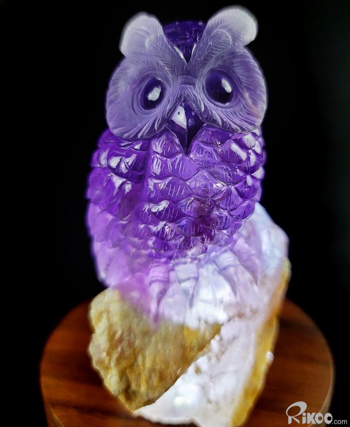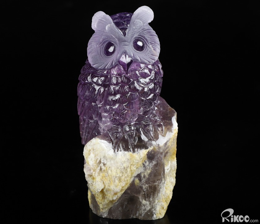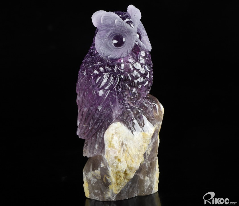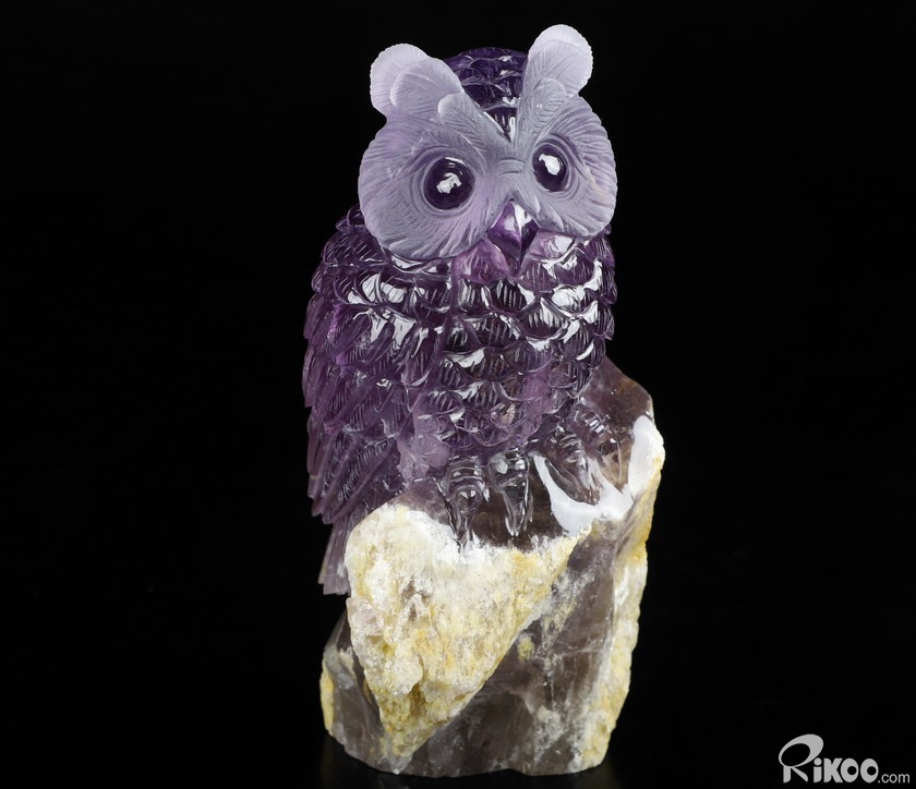 GEMSTONE 4.3" Amethyst Carved Crystal Owl Sculpture, Crystal Healing