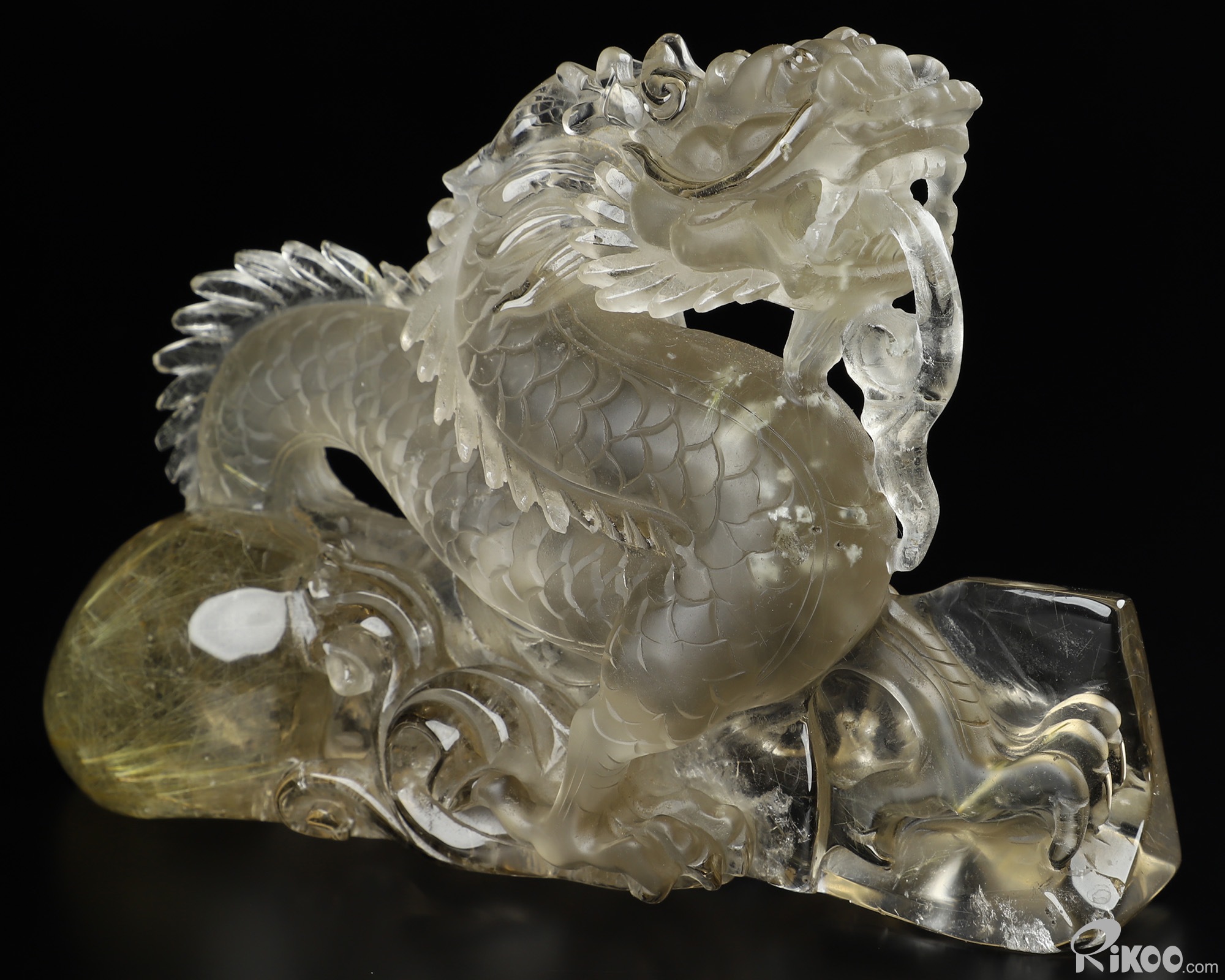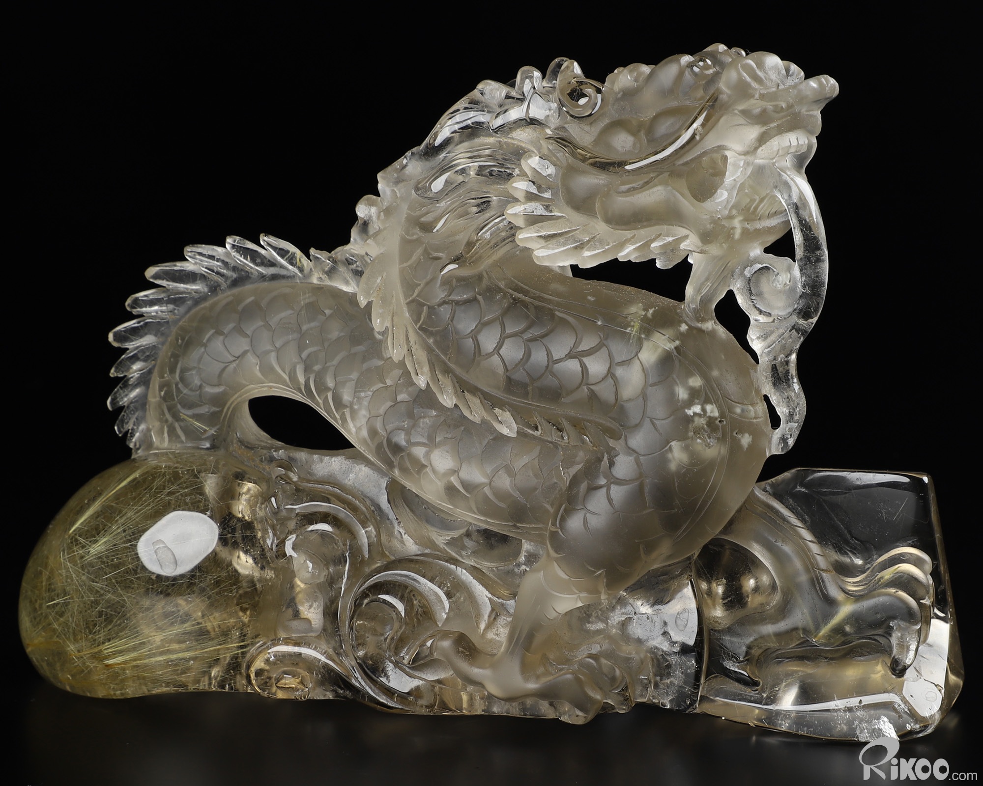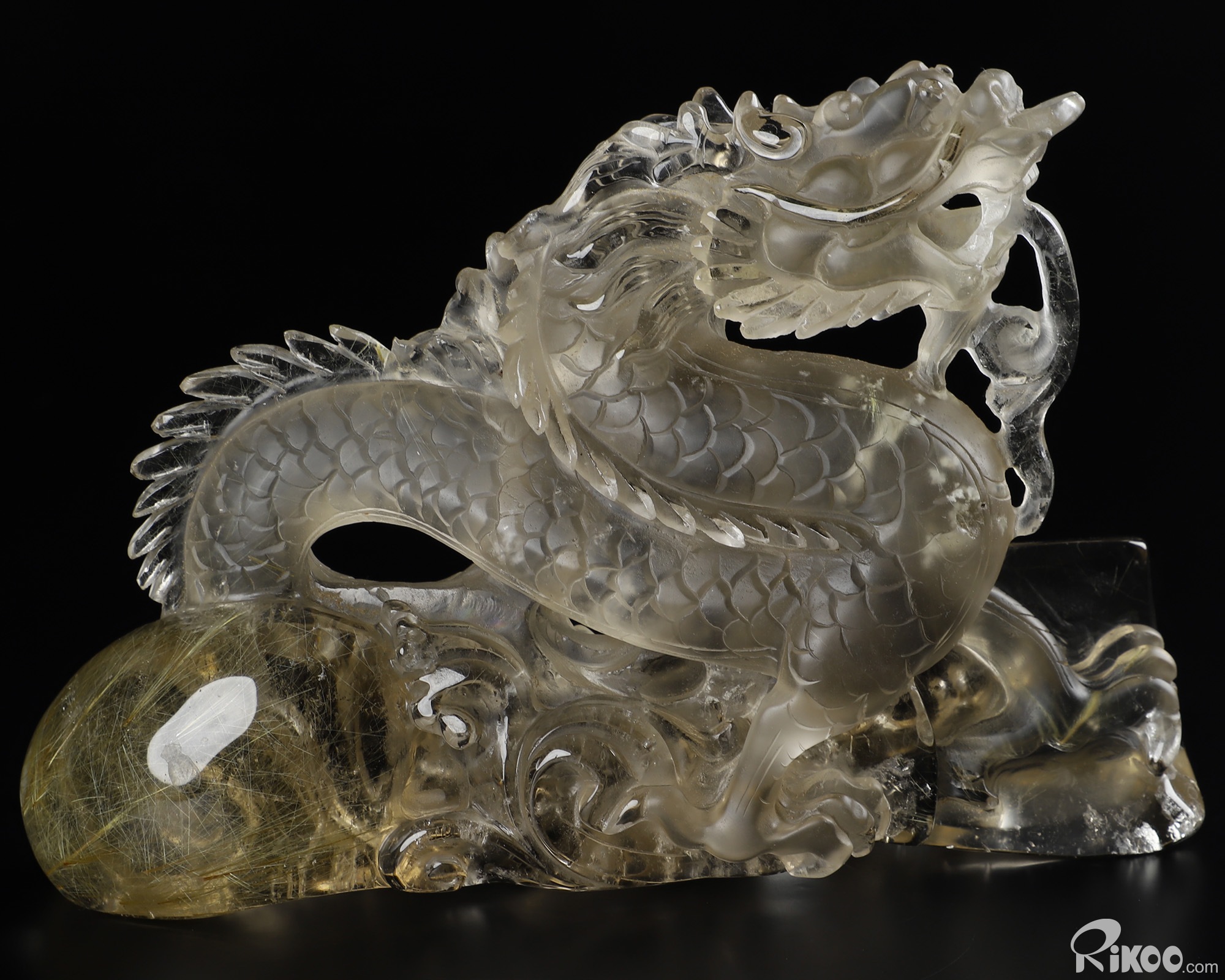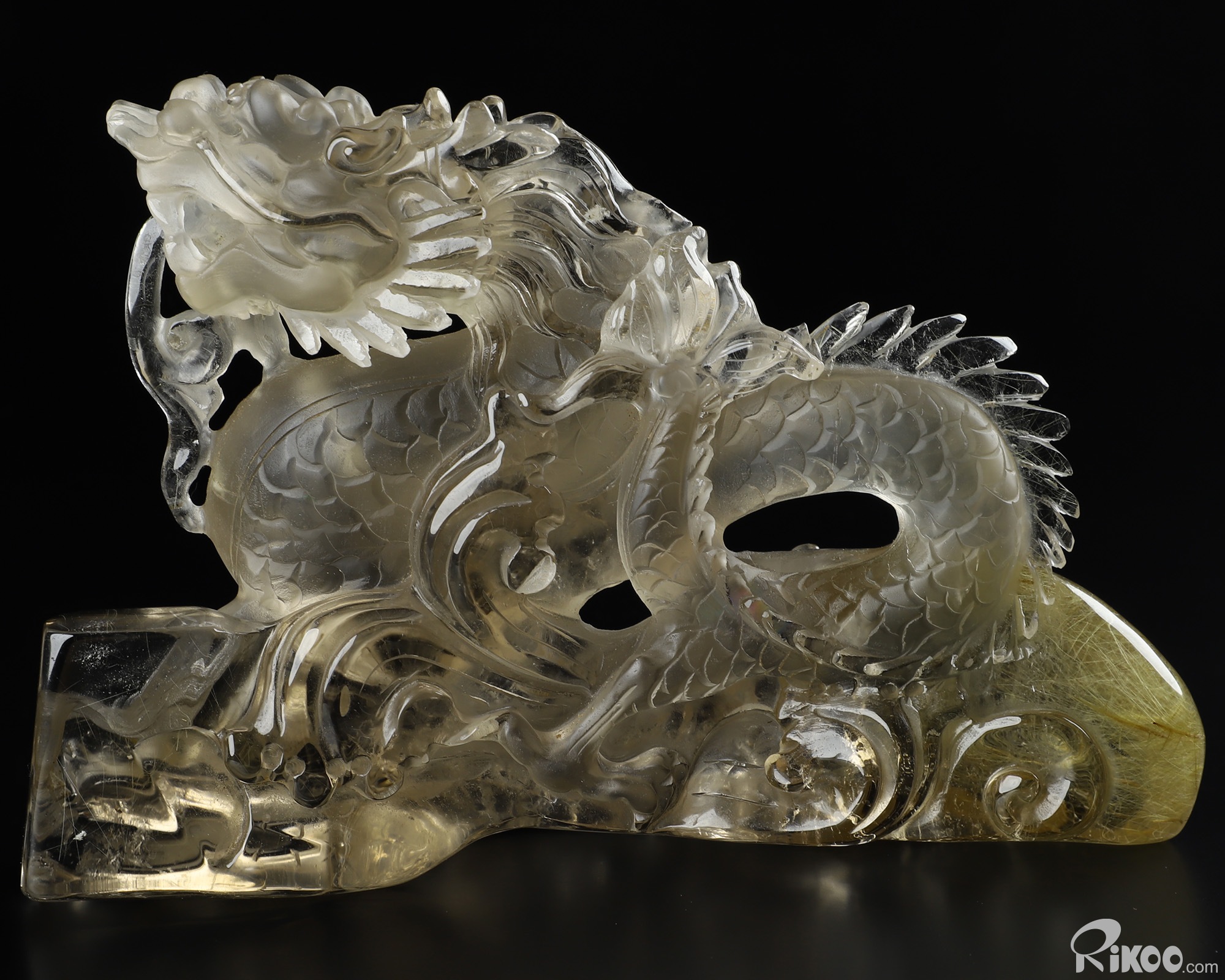 GEMSTONE 6.4" Rutilated Quartz Rock Crystal Carved Crystal Dragon Sculpture, Realistic
