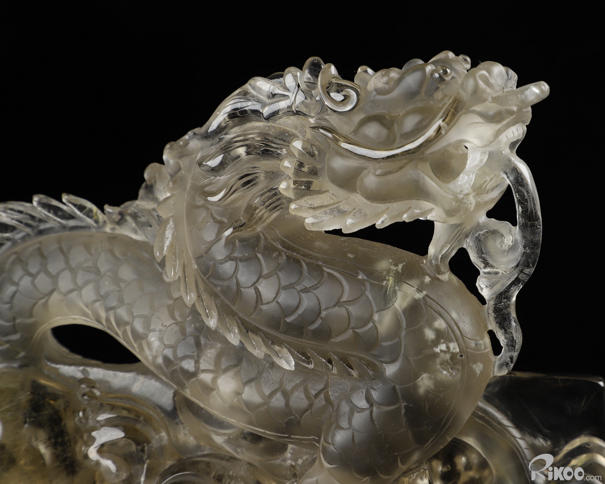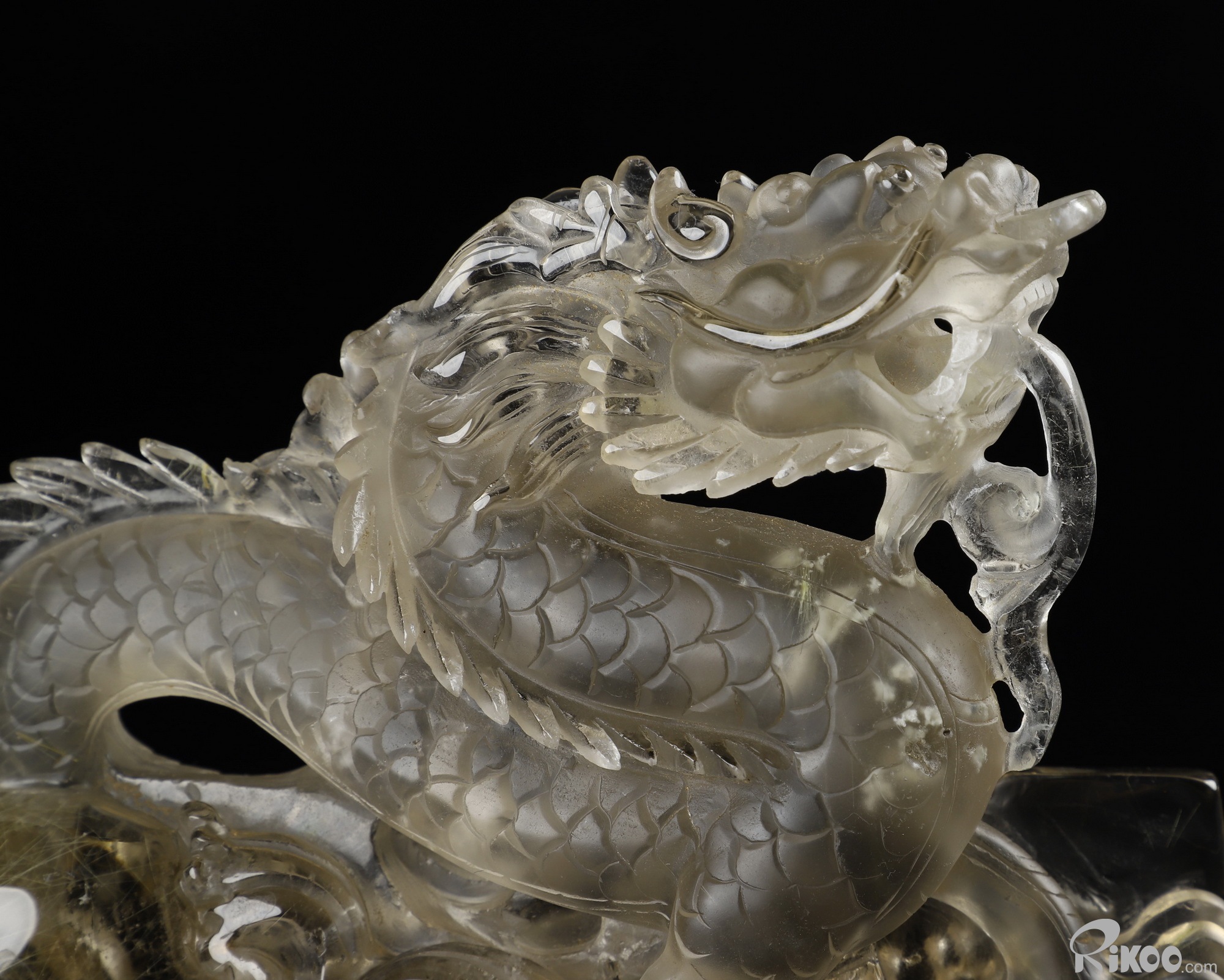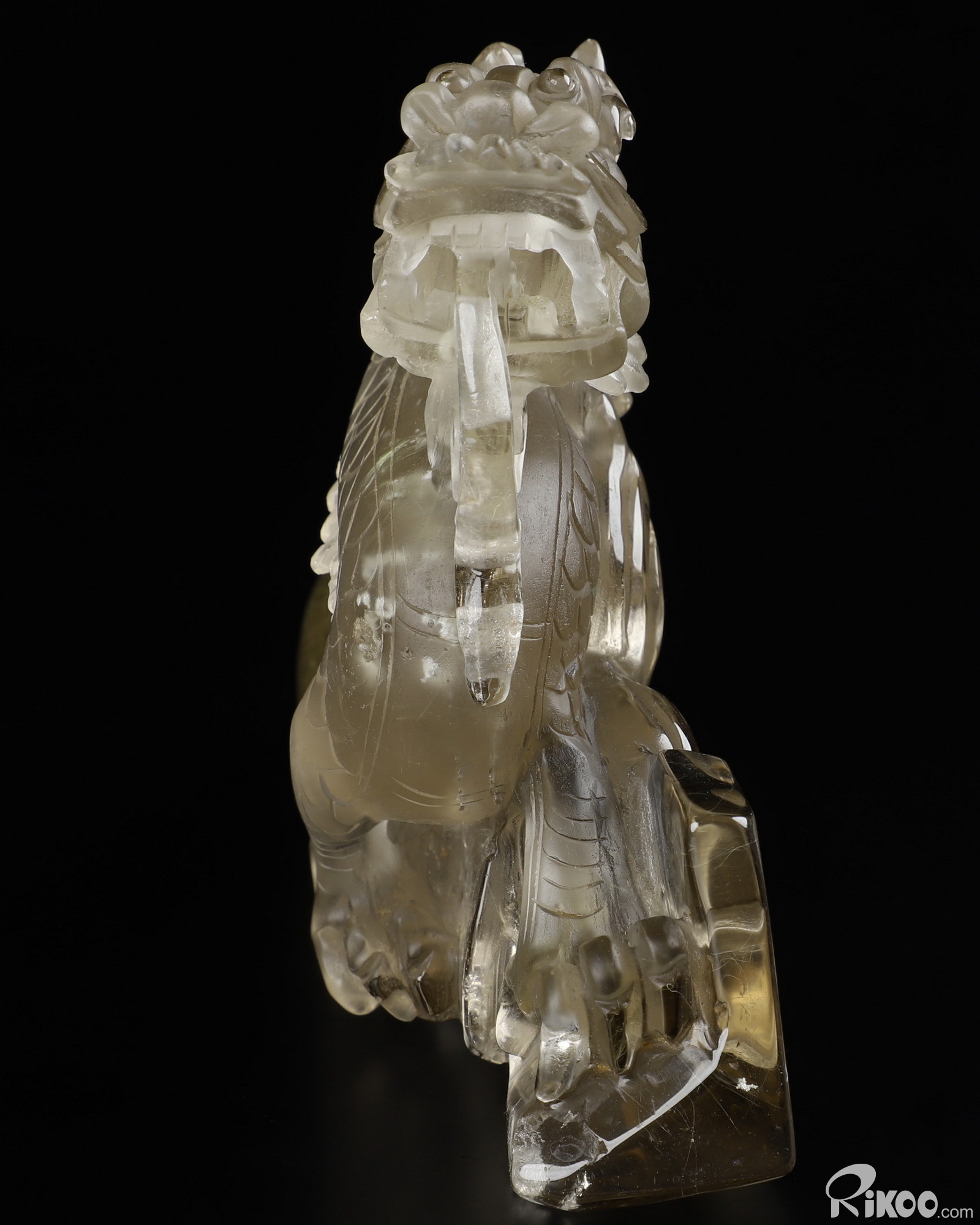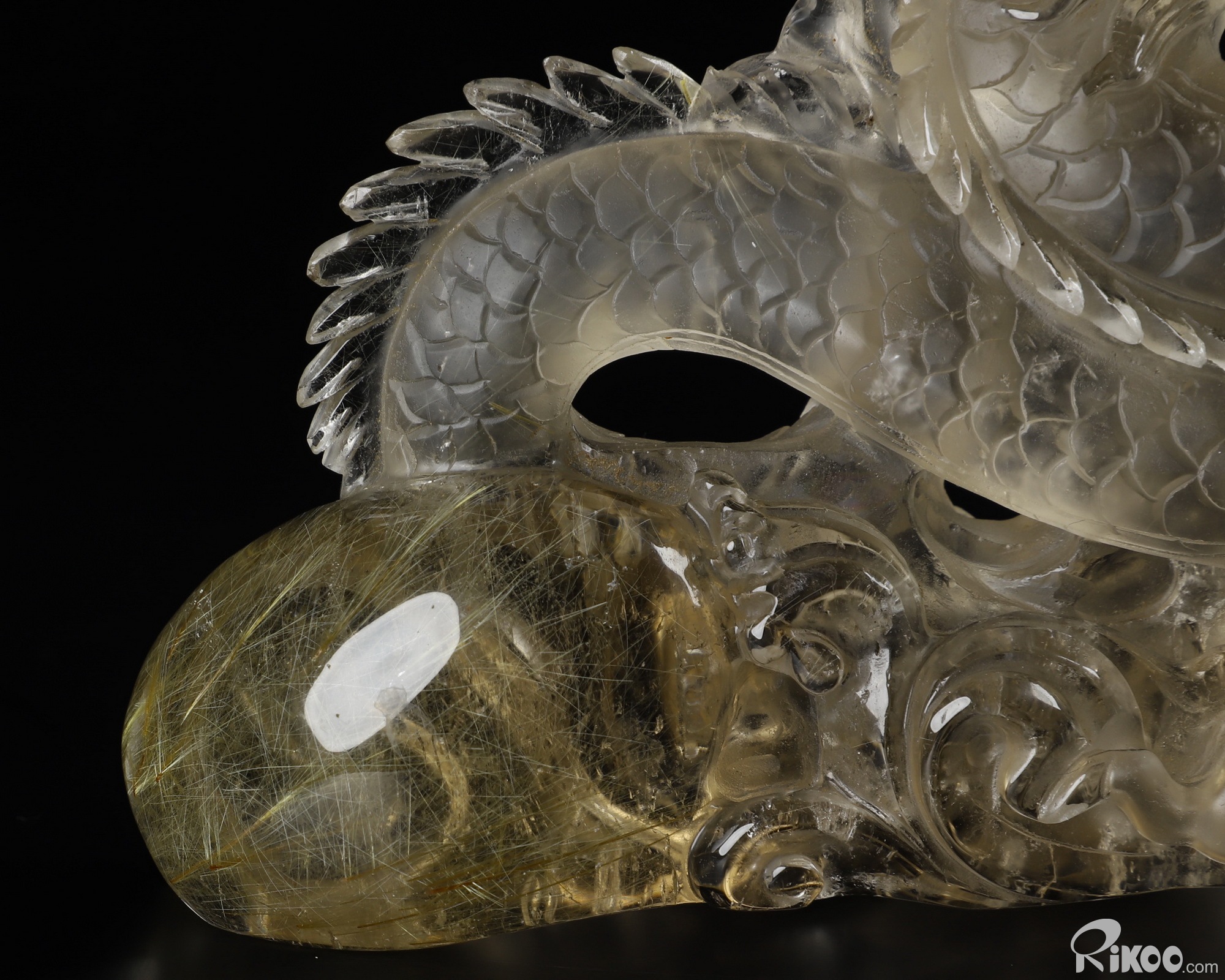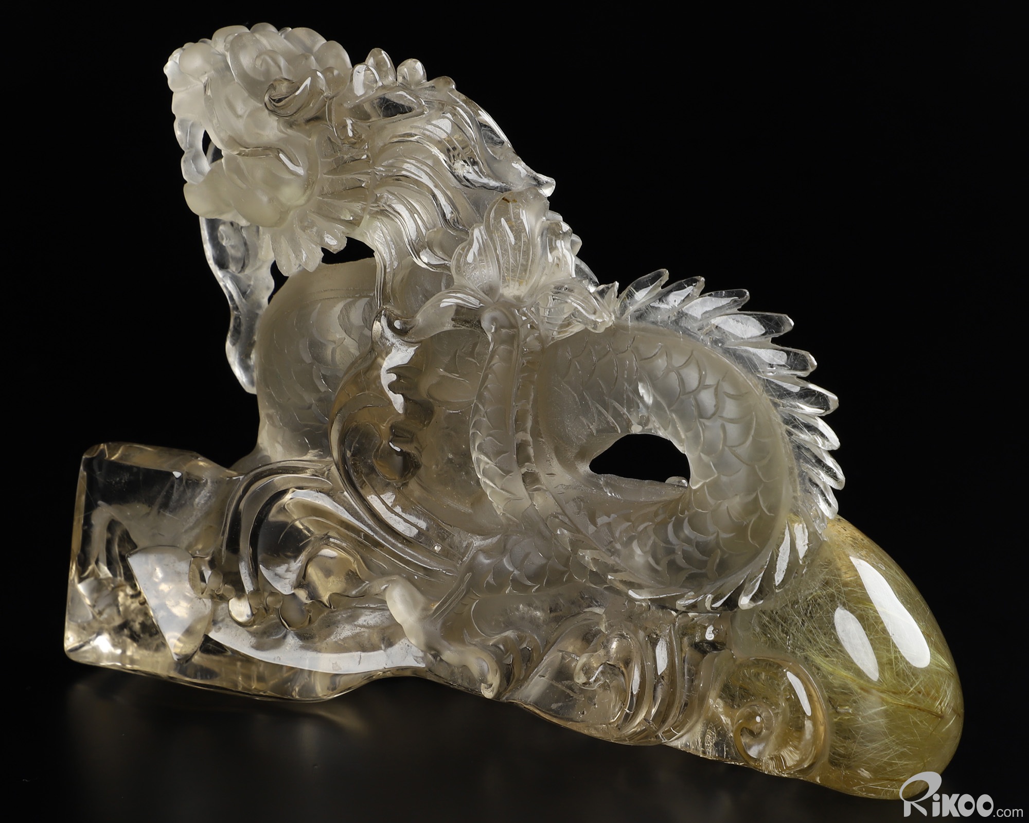 GEMSTONE 6.4" Rutilated Quartz Rock Crystal Carved Crystal Dragon Sculpture, Realistic