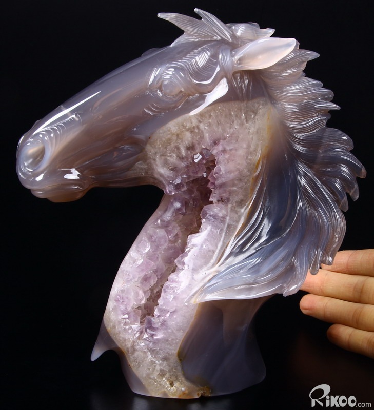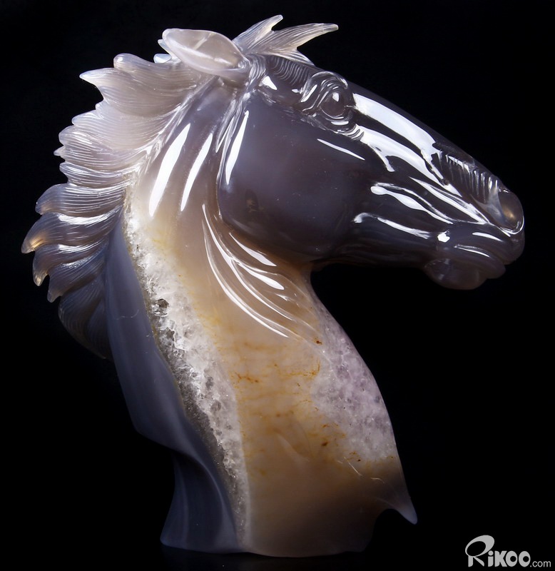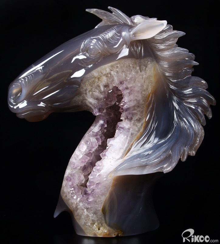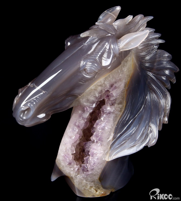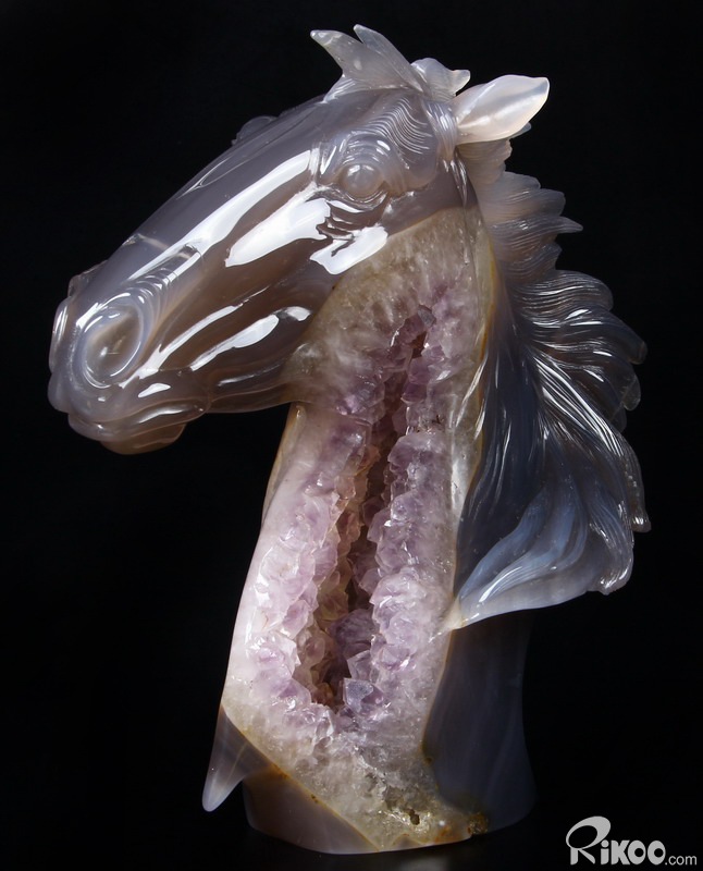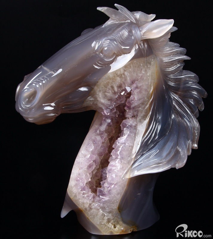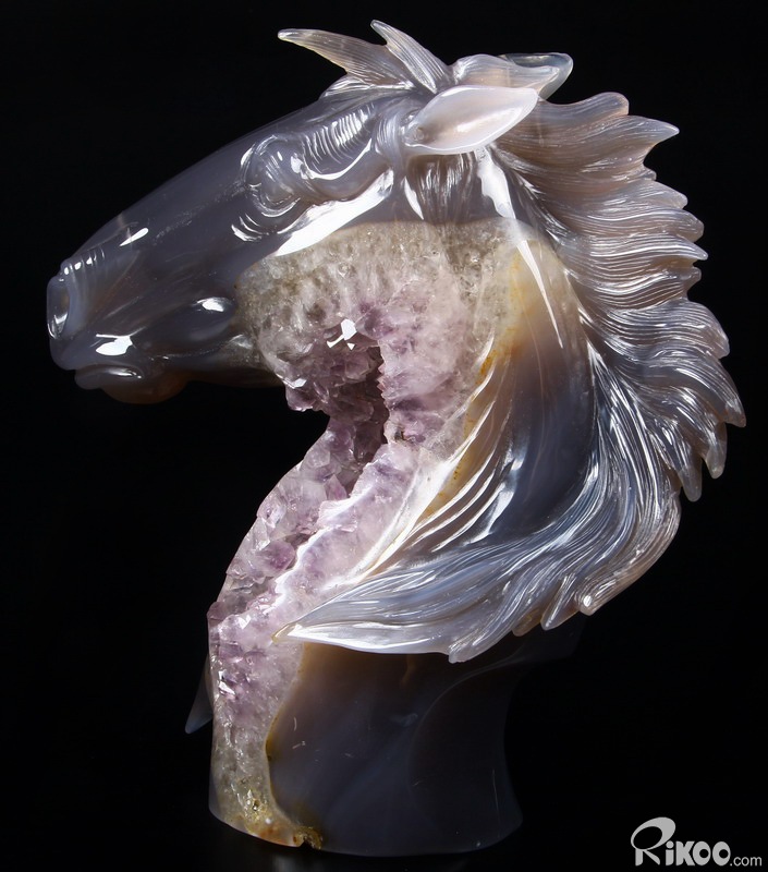 GEODE Agate Carved Crystal Horse Head Sculpture
