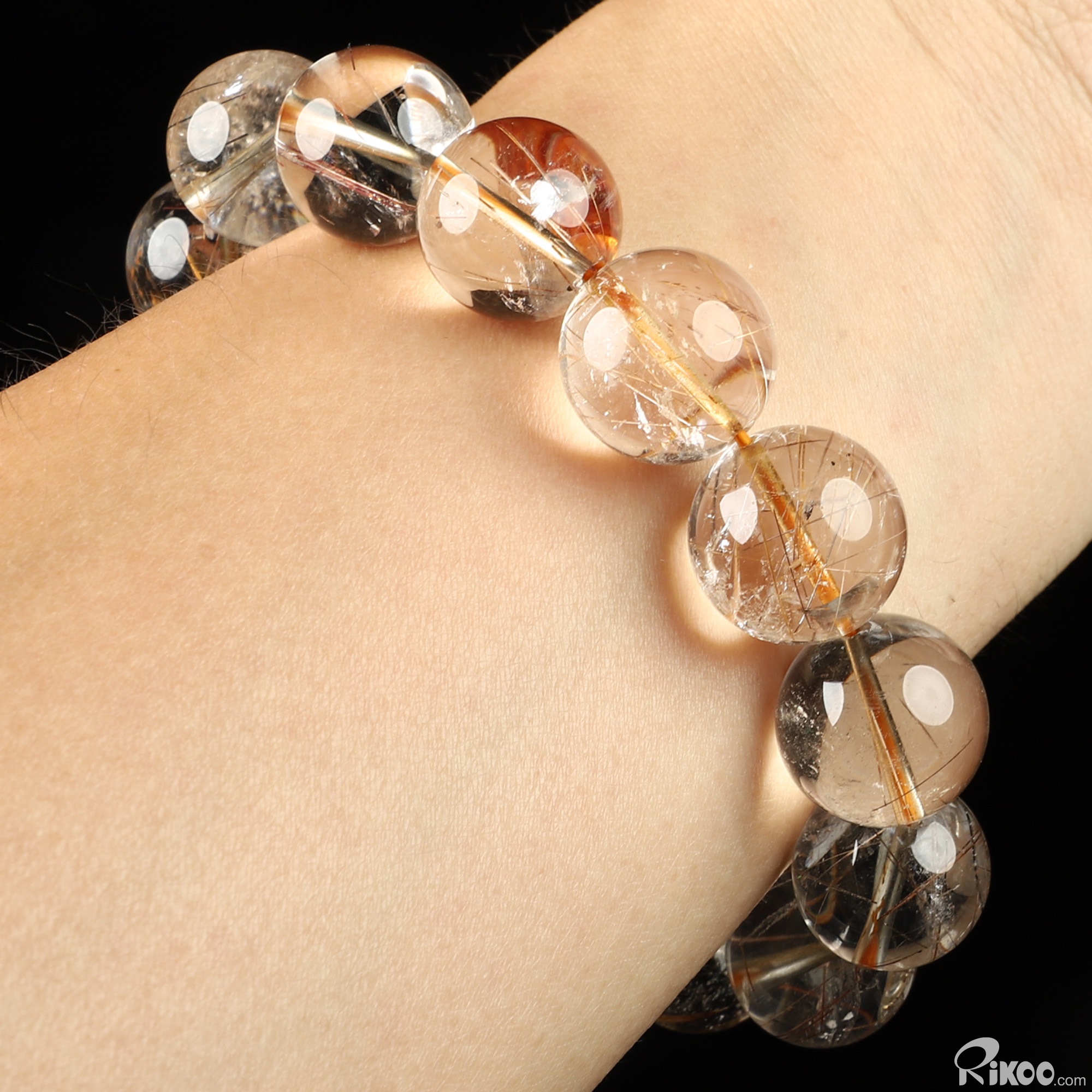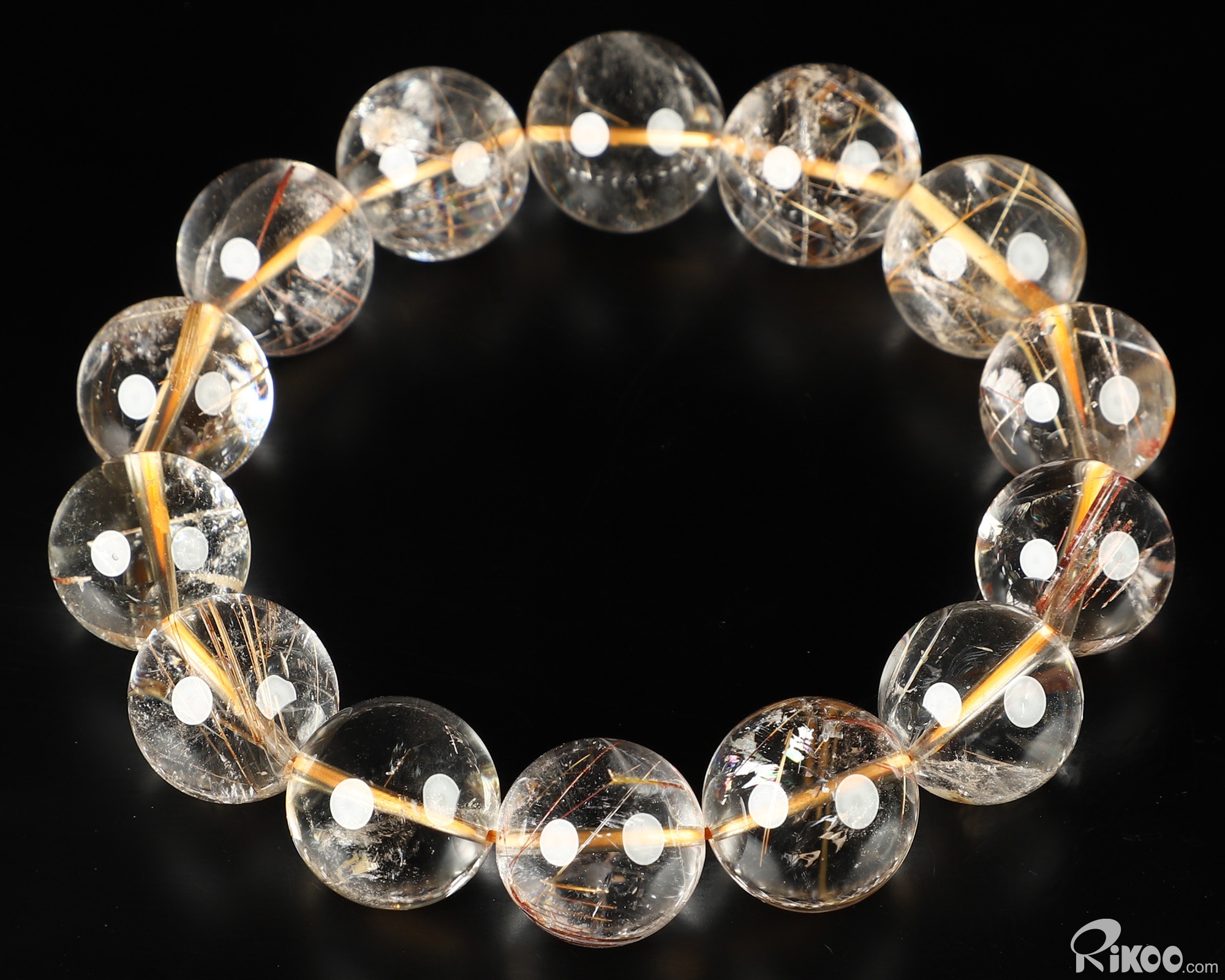 Gemstone 0.5" Rutilated Quartz Rock Crystal Hand Carved Crystal Bracelets, Crystal Healing