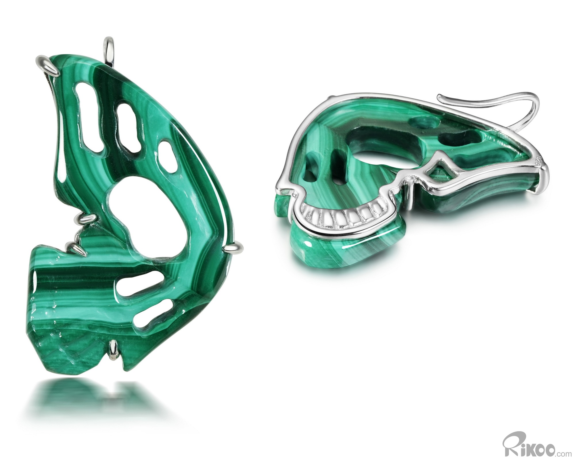 Gemstone 1.2" Malachite Hand Carved Crystal Skull Butterfly Earring, Crystal Healing