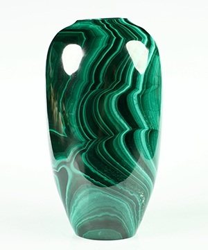 Steady pulsing electromagnetic energy. (High copper content) Malachite and azurite are the same chemical, practically, Copper Carbonate. The only difference is the ordering of the elements in the molecule. On brow: Stimulates physical and psychic vision, concentration. For heart and solar plexus centers: Stomach, liver, kidney stones, lungs, immune system, radiation, MS, circulation. Powerful healer with azurite or chrysocolla for healing: Releases and draws out pain, inflammation, depression, anger; heals blocks. Protects well by powerfully cleaning the auric field, rapidly absorbing undesirable energies, including: computer, TV, and other radiation, etc. Place in the 4 corners of a room to cleanse carpet toxins/gases. Clean very frequently -- daily if possible! . Often variegated and is one of the basic ores of Copper. Should be used with extreme care because it can amplify negative qualities. Caution must always be used when wearing it as jewelry. However, Malachite also magnifies the positive, and so it is useful if your mood is definitely on the upswing. It should not be used in healing without careful consideration of who is doing the healing. It is useful for relaxation and neurological disorders as well as tissue regeneration. It is said to awaken healing qualities and useful in fighting mental illnesses. Said to stimulate the optic nerve, help the pancreas, spleen, parathyroid, and help dyslexia. People living near nuclear power plants should keep pieces of Malachite in their homes, since Malachite may expel plutonium. A warning: Malachite in raw form has dust particles that are highly toxic and their ingestion should be avoided.