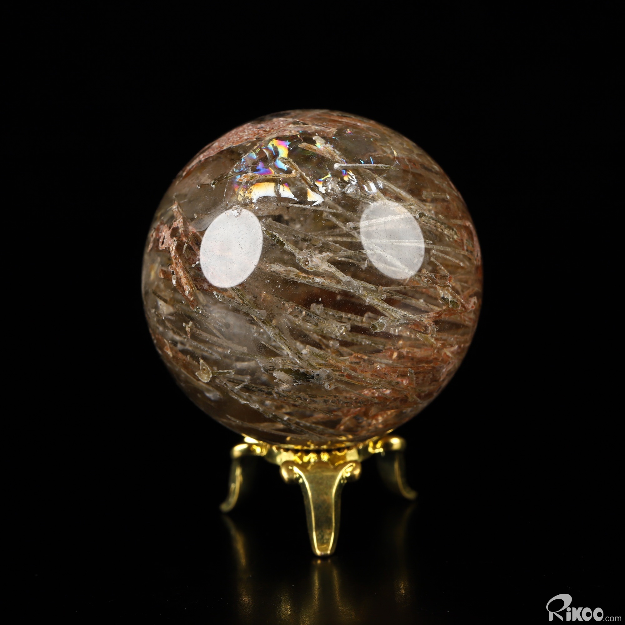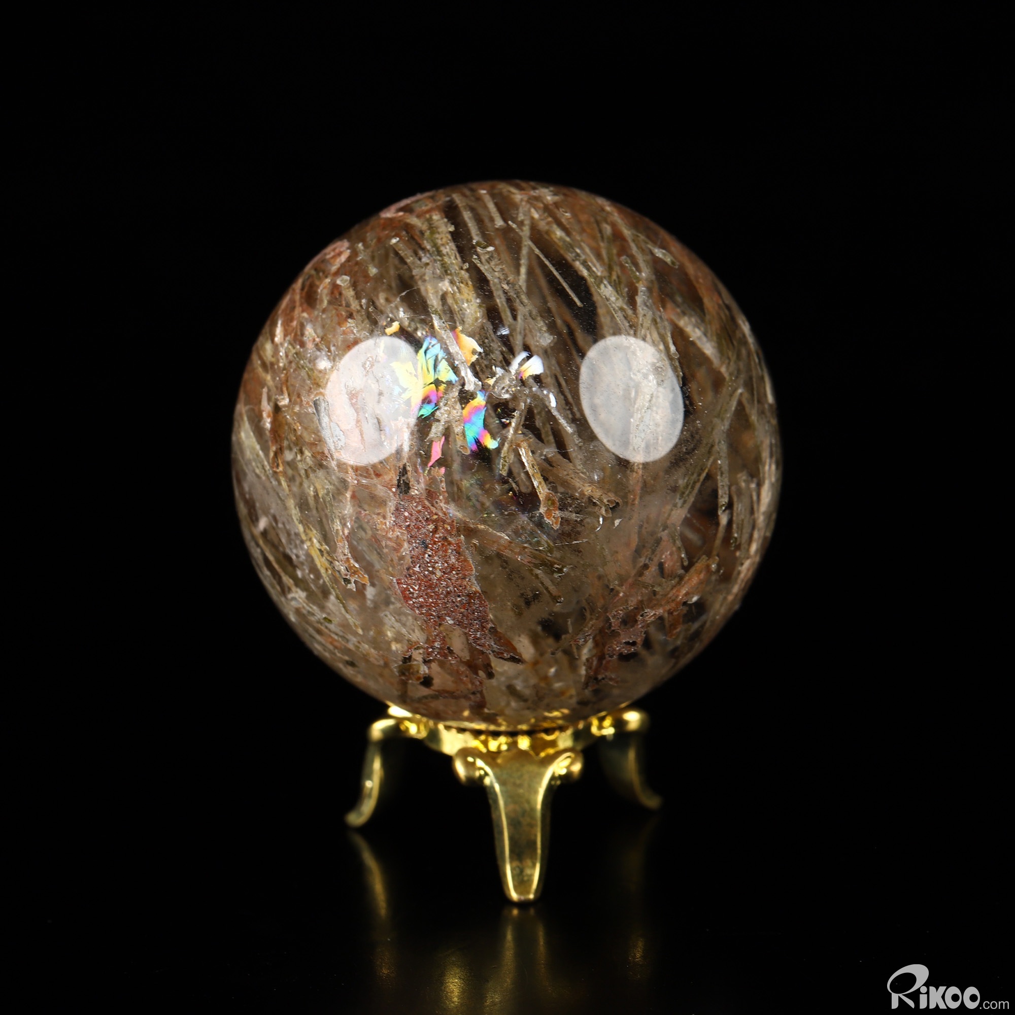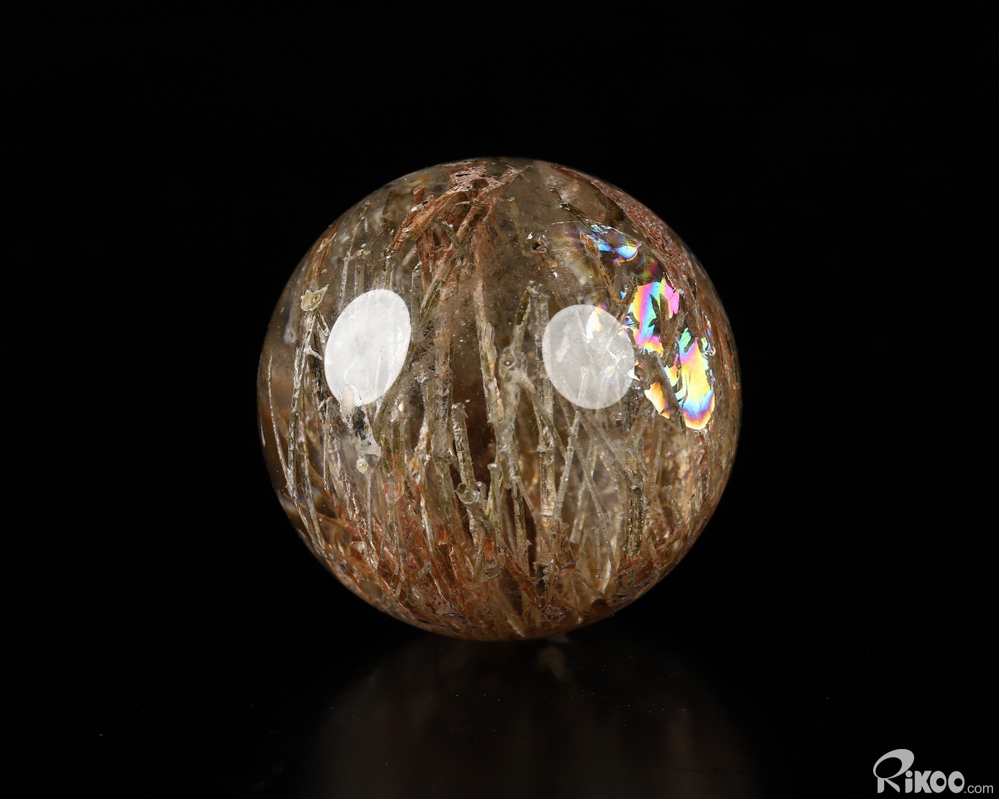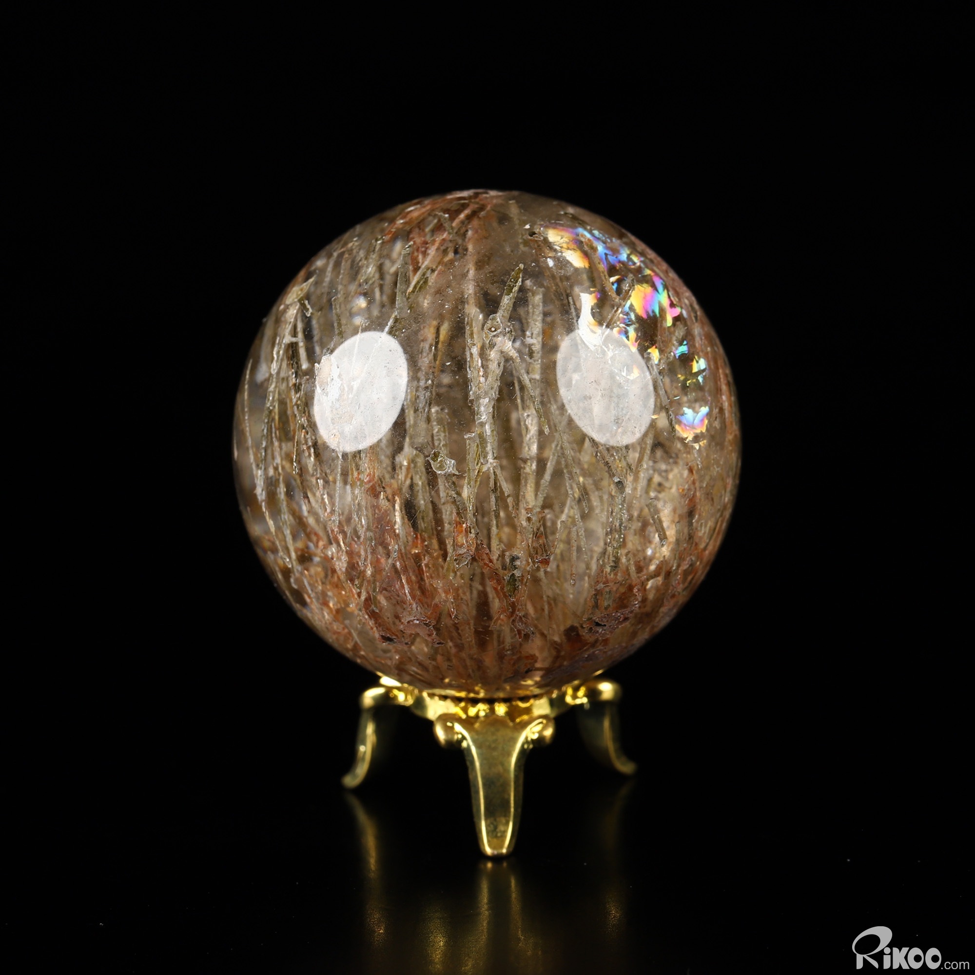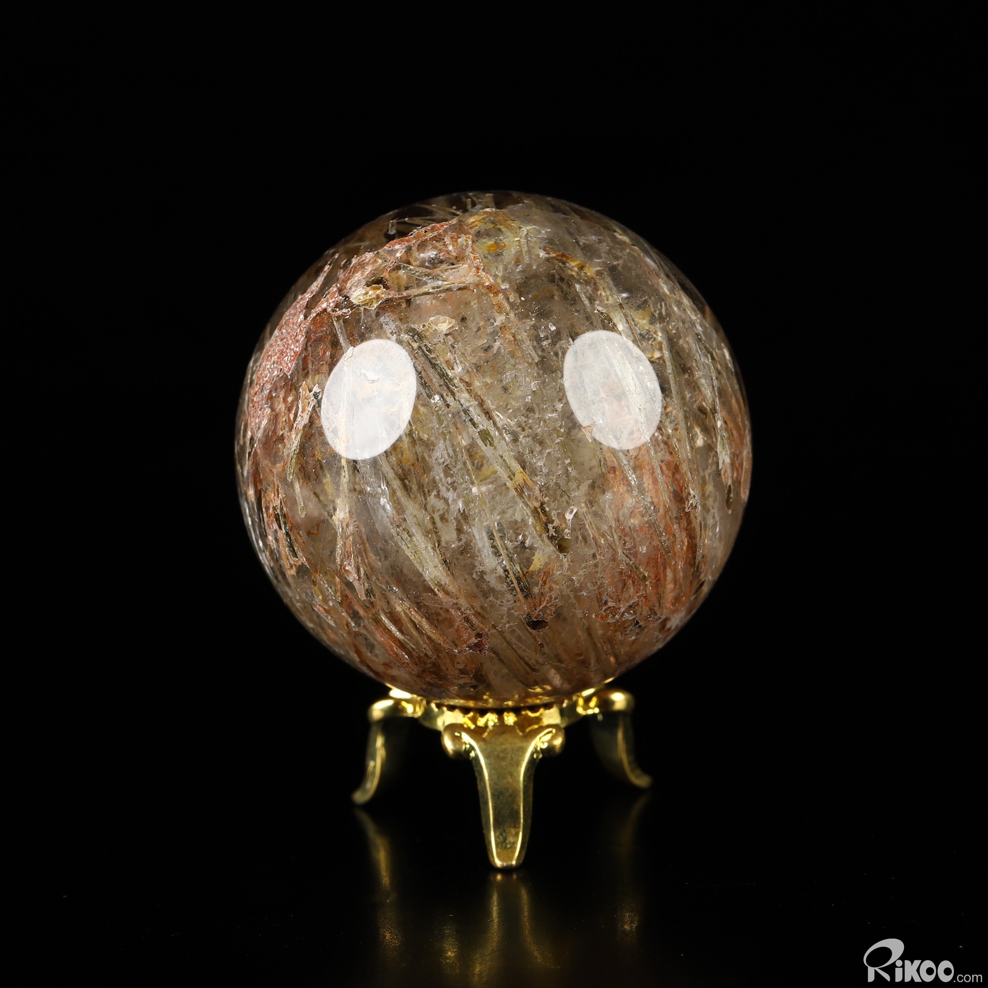 Gemstone 1.4" Rutilated Quartz Rock Crystal Hand Carved Crystal Ball/Sphere, Crystal Healing