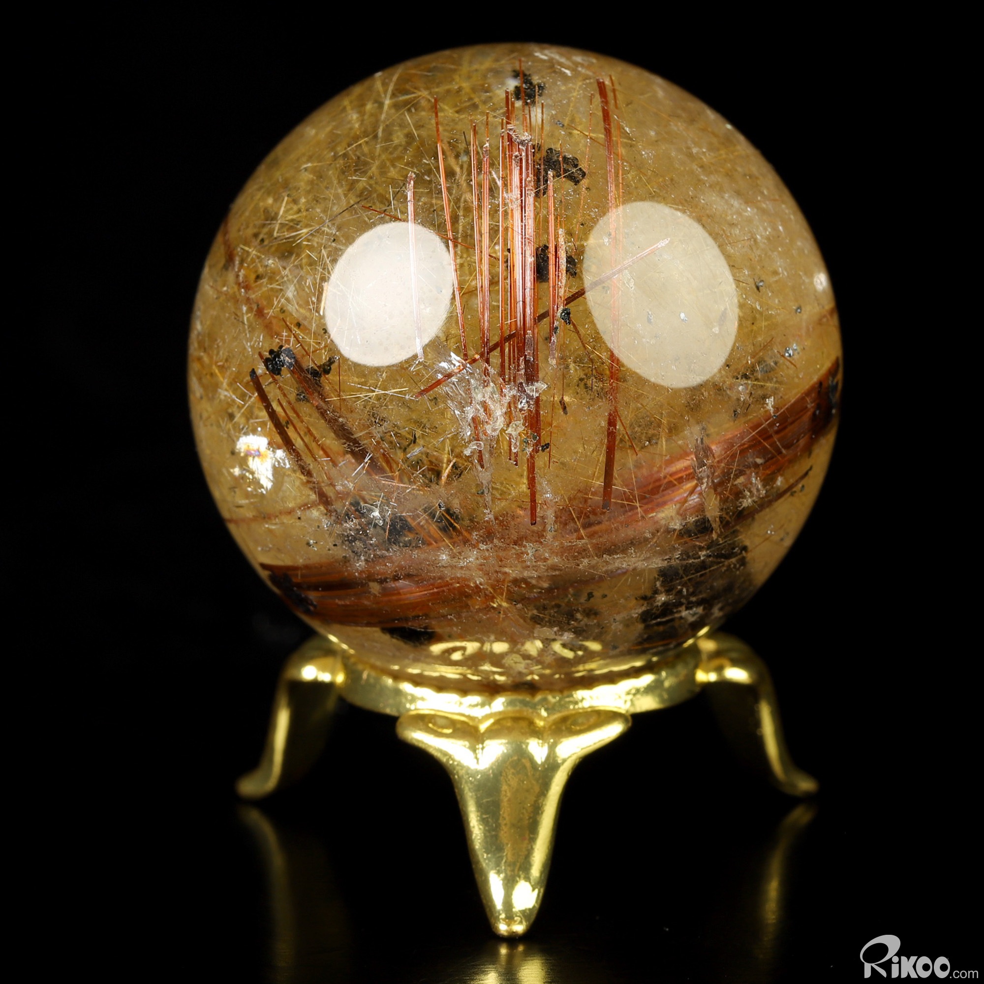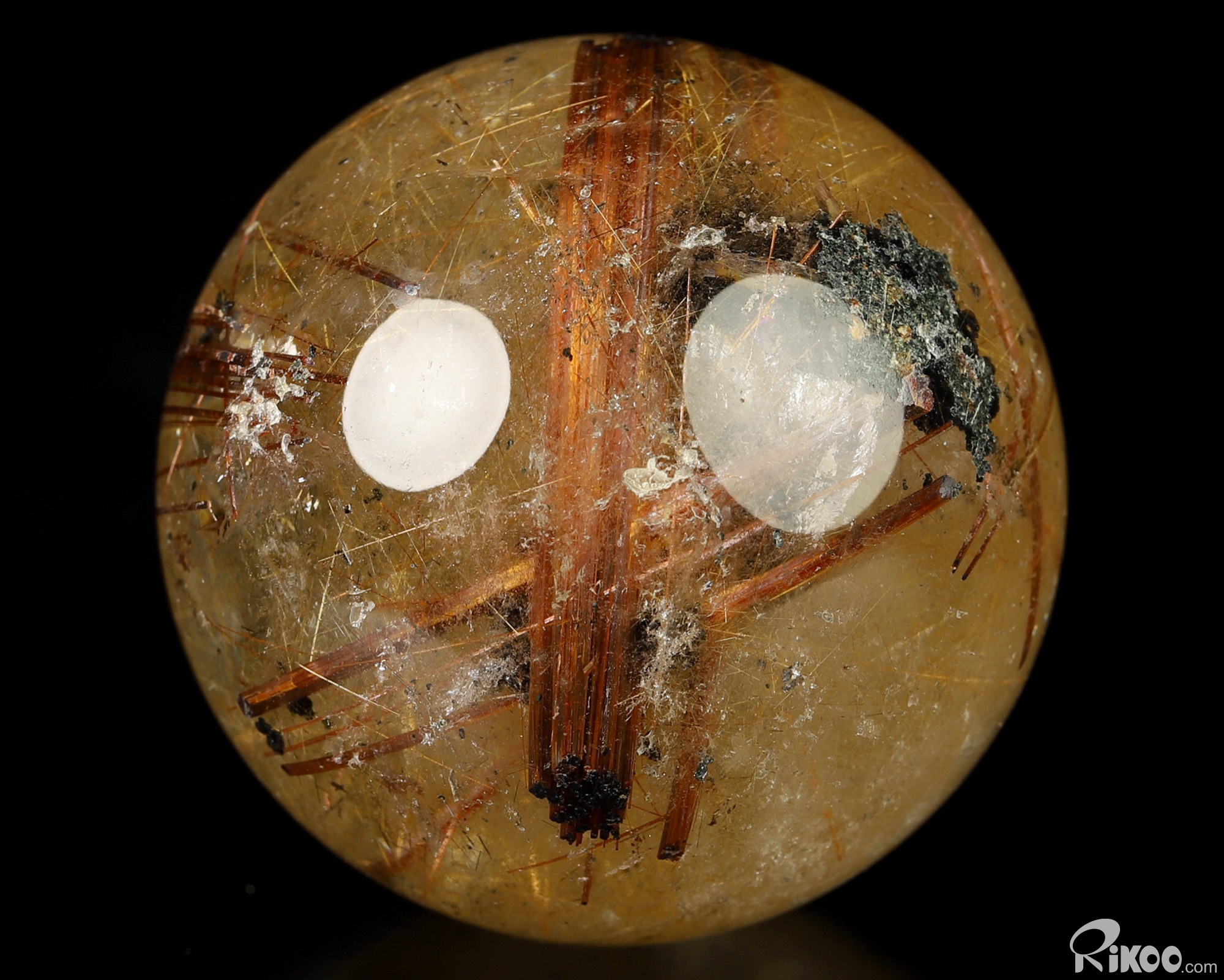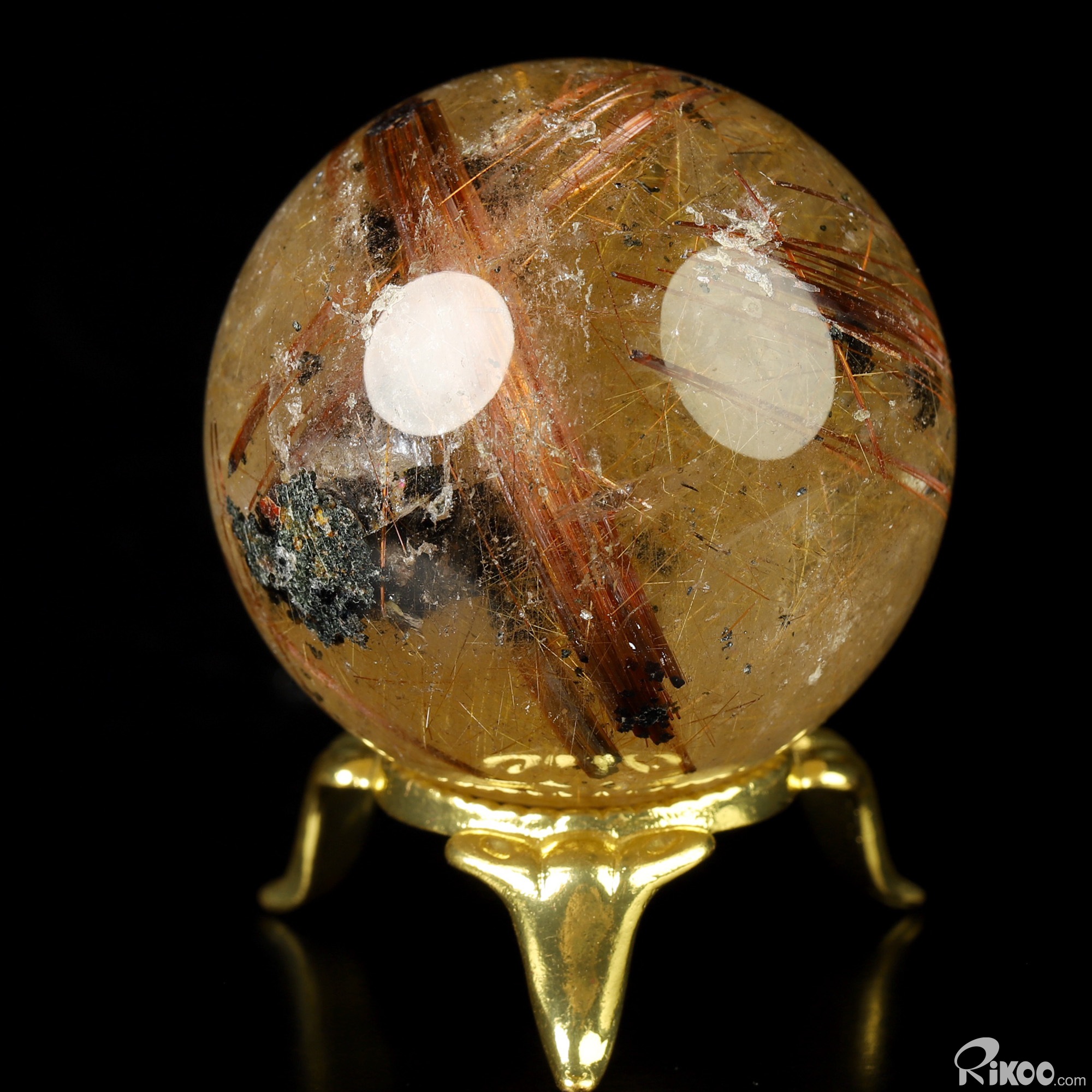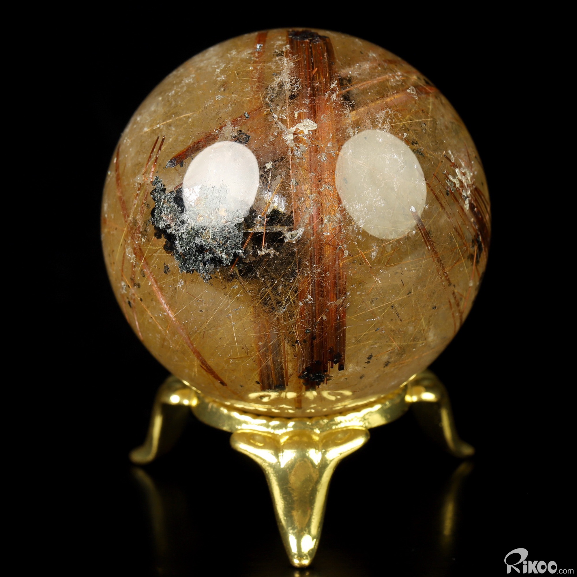 Gemstone 1.7" Rutilated Quartz Rock Crystal Hand Carved Crystal Ball/Sphere, Crystal Healing