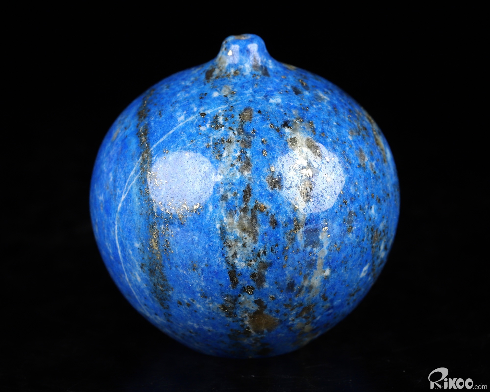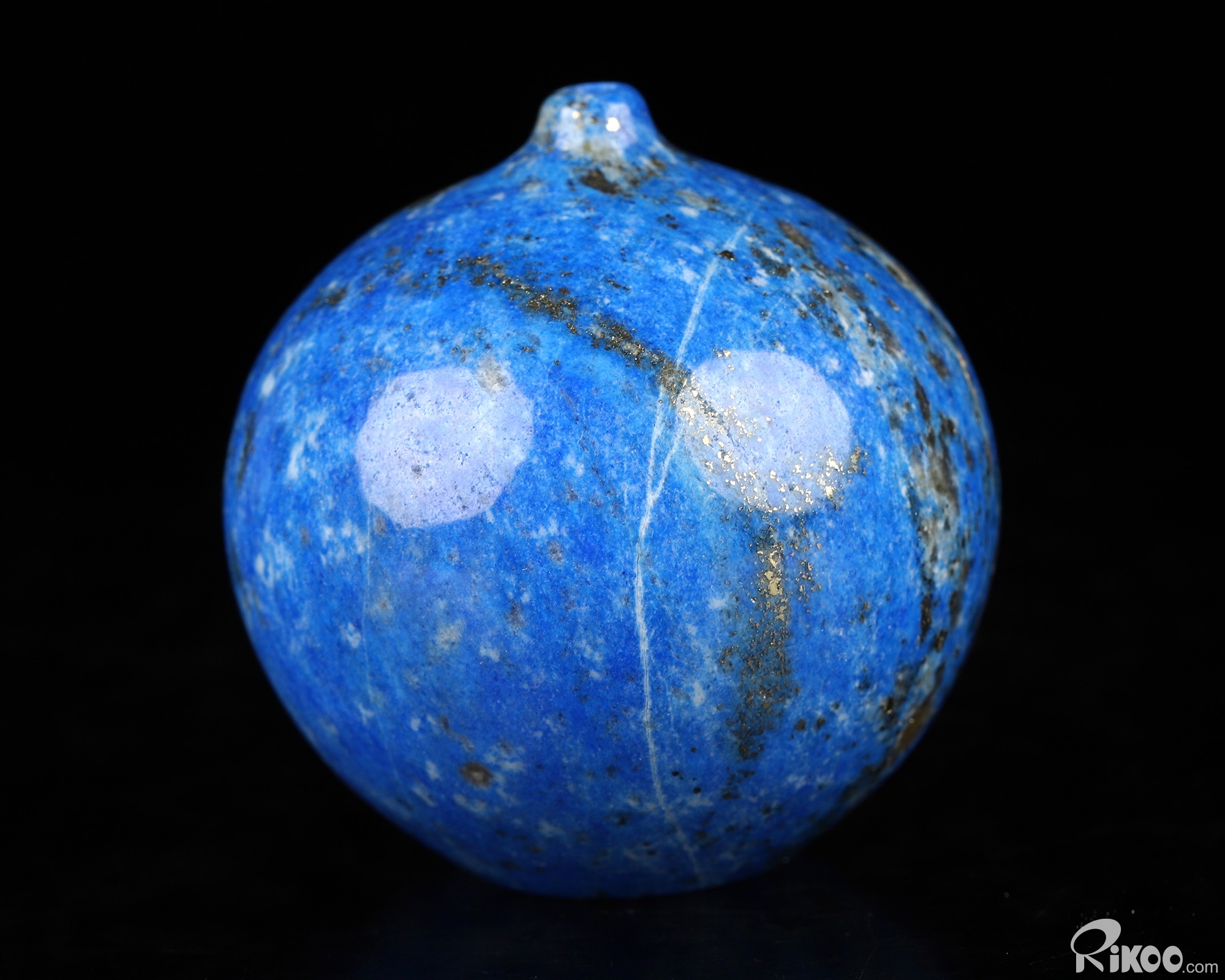 This vase with limited functionality is mainly for display.Solid, med. to dk. blue. In meditation, opens Brow Chakra: higher guidance, intuition, connection to higher self, overview, decisions for good of all. Organizes, quiets mind. Opens Throat/Thyroid Chakra: Self-expression, writing, creativity, dream insight, allows total awareness...Anxiety, restlessness, insomnia, autism, shyness, nervous system, depression, serenity, self-acceptance; MS, speech, hearing, pituitary, DNA, lymph, inflammation, pain (especially head), protection stone. Shelters the wearer like a shield. . Extraordinarily deep blue stone often flecked with Pyrite. Can also be mottled with white Calcite. Most is currently mined in the USSR and Afghanistan. Beneficial to the respiratory system, especially the throat and lungs, the cleansing organs, and the nervous system. A good stone for blood purification and for boosting the immune system. A powerful thought-amplifier and is helpful in aligning all the elements of the body and mind. Can increase psychic abilities and will open the third eye. Can guide you in teh direction of mental and spiritual purity. It should be worn as close to the throat as possible or at least above the diaphragm so that the energy of the wearer is drawn upward.