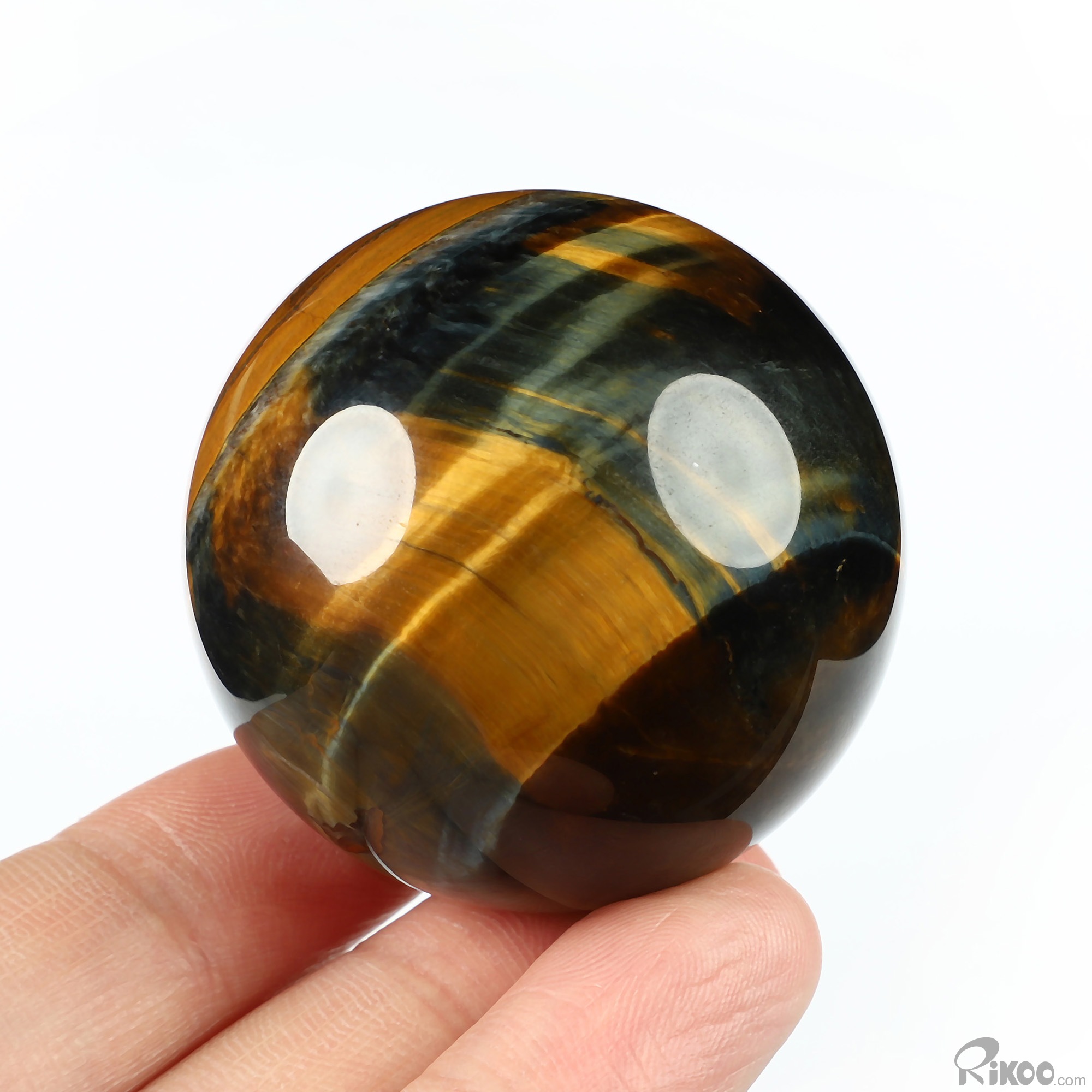 Gemstone 1.9" Blue & Gold Tiger's Eye Hand Carved Crystal Ball/Sphere, Crystal Healing