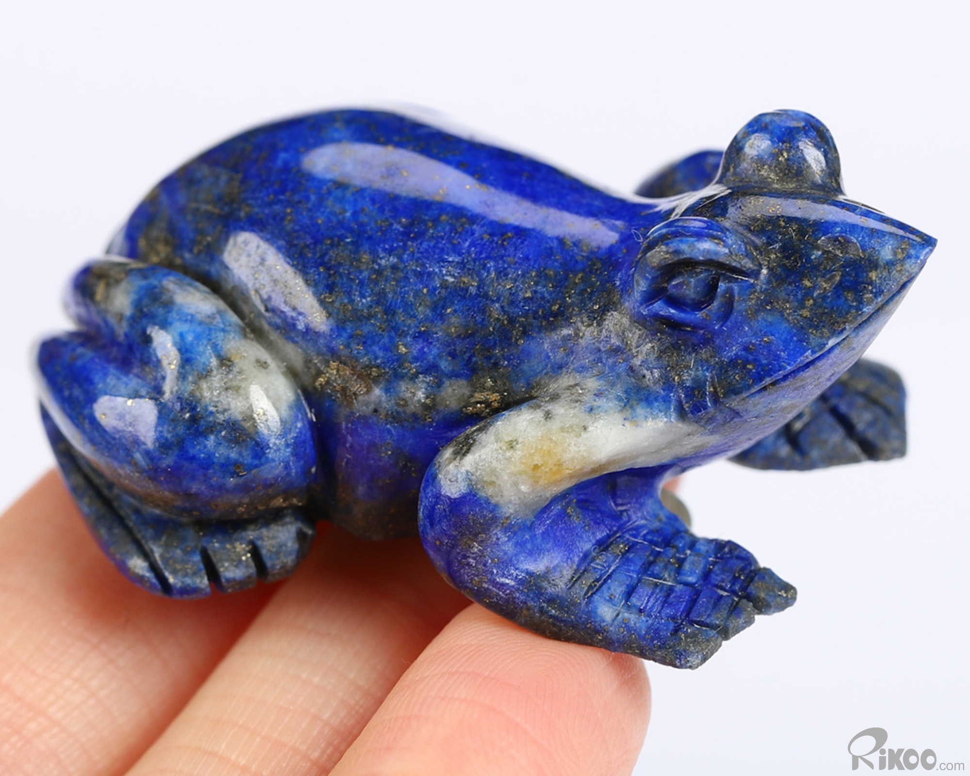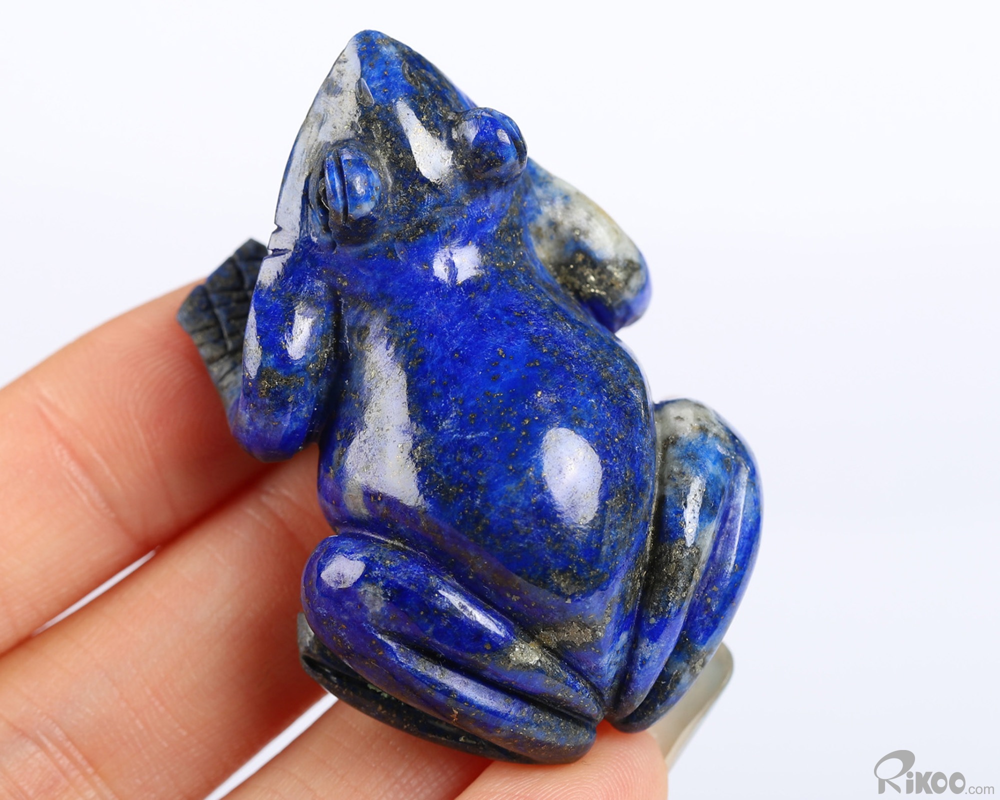 Gemstone 1.9" Lapis Lazuli Hand Carved Crystal Frog Sculpture, Crystal Healing