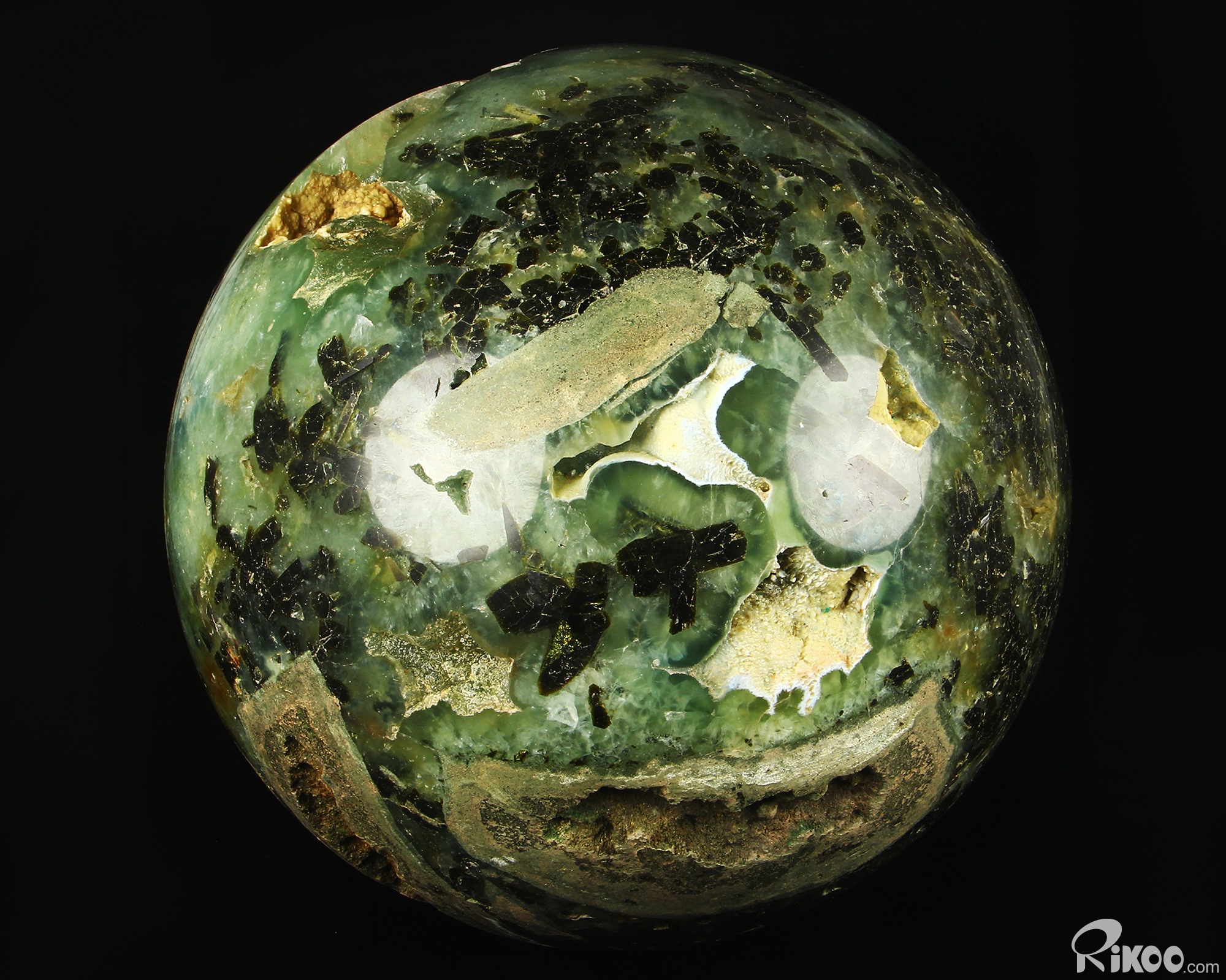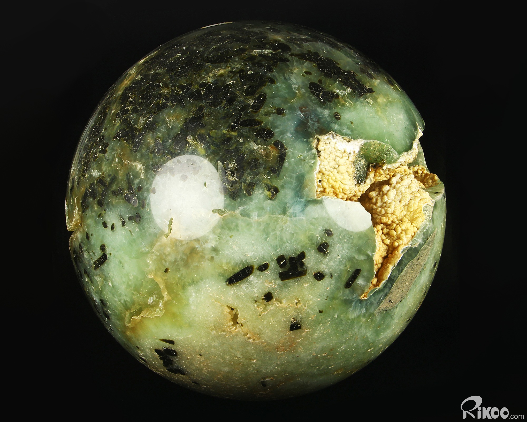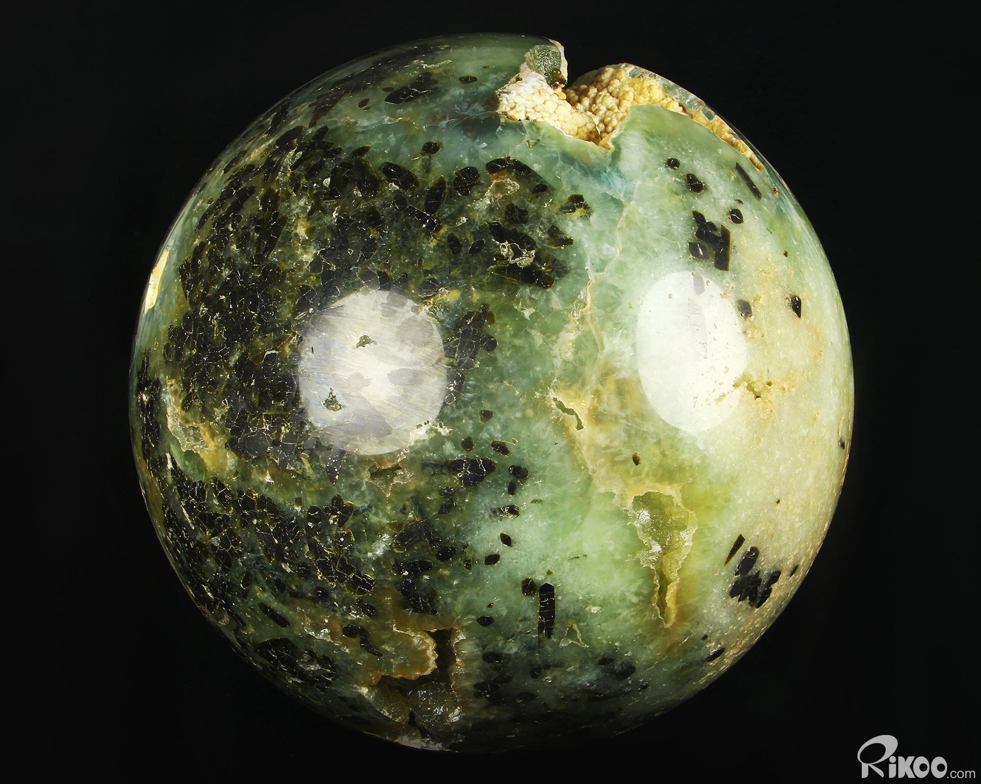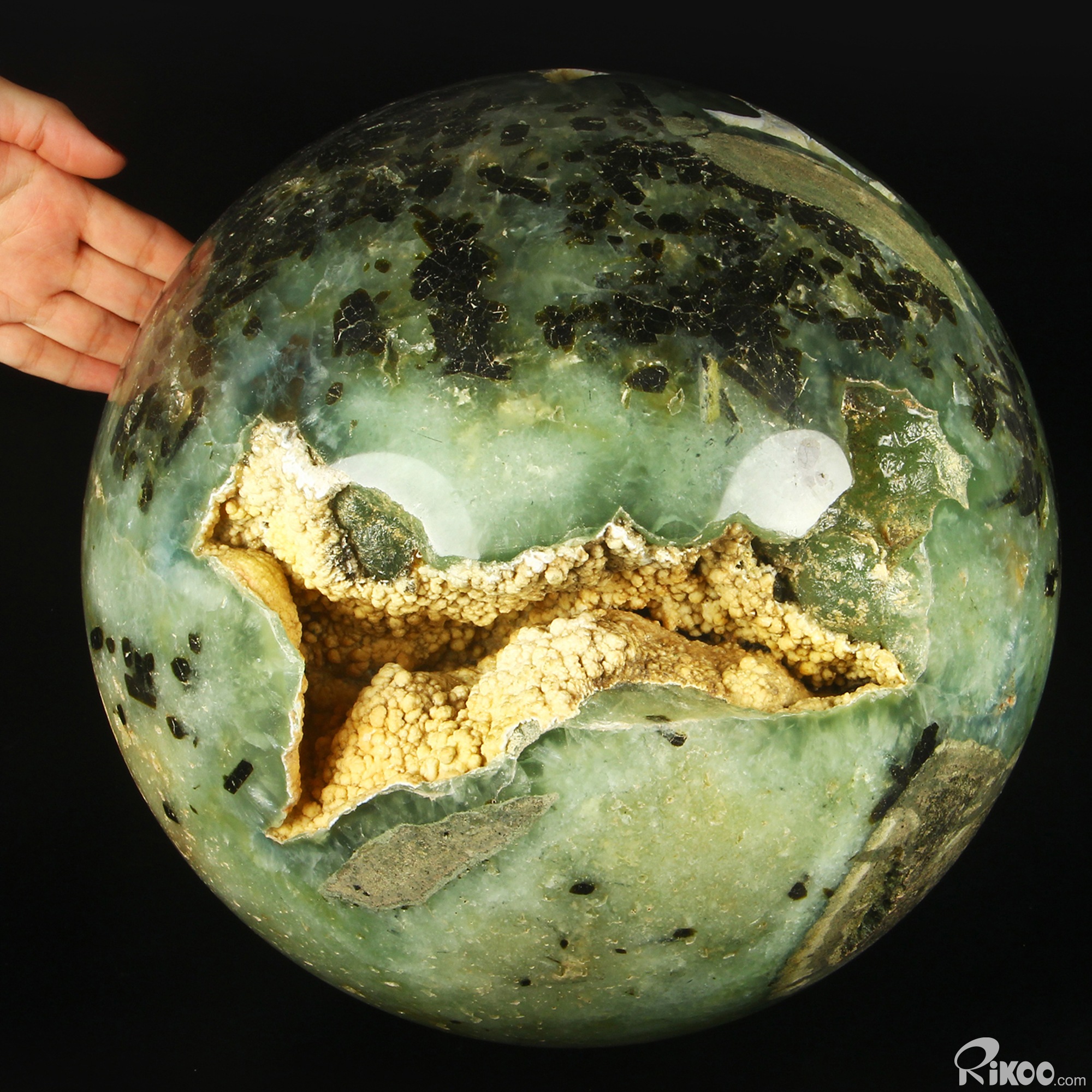 Gemstone 11.7" Prehnite Hand Carved Crystal Ball/Sphere, Crystal Healing