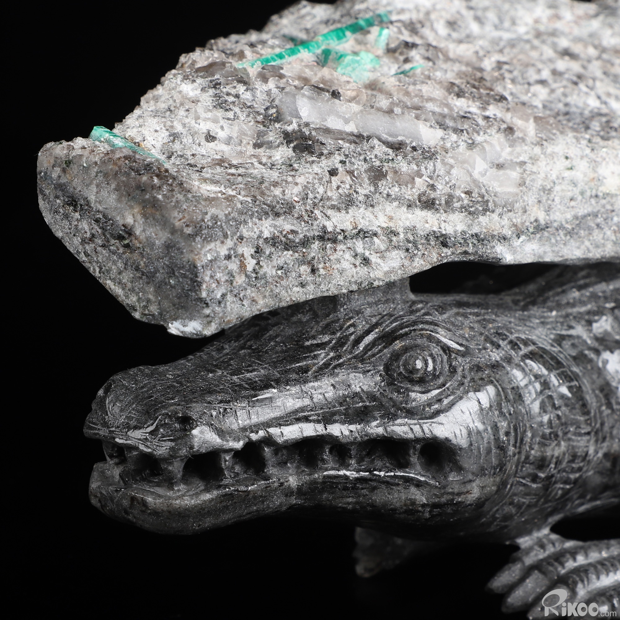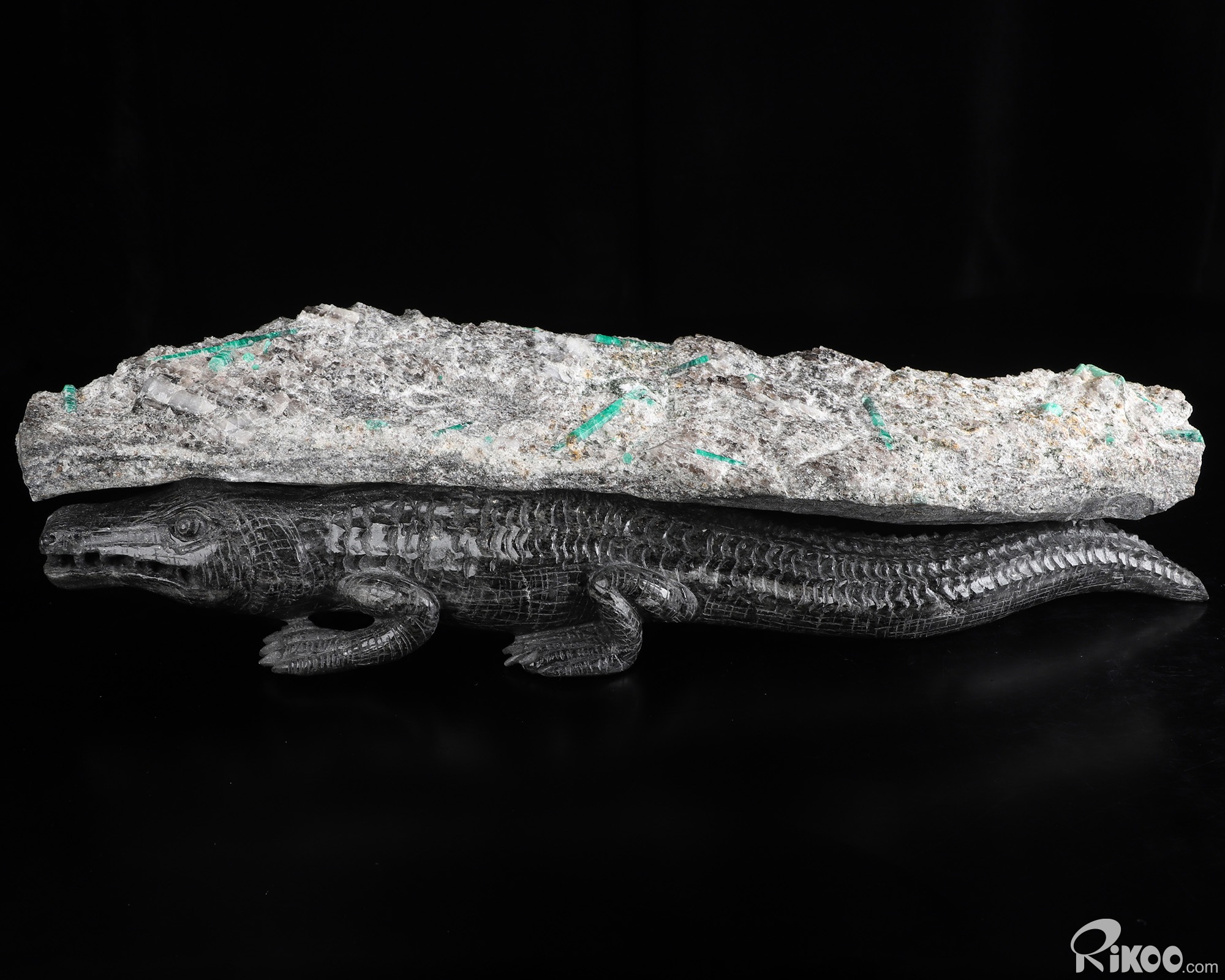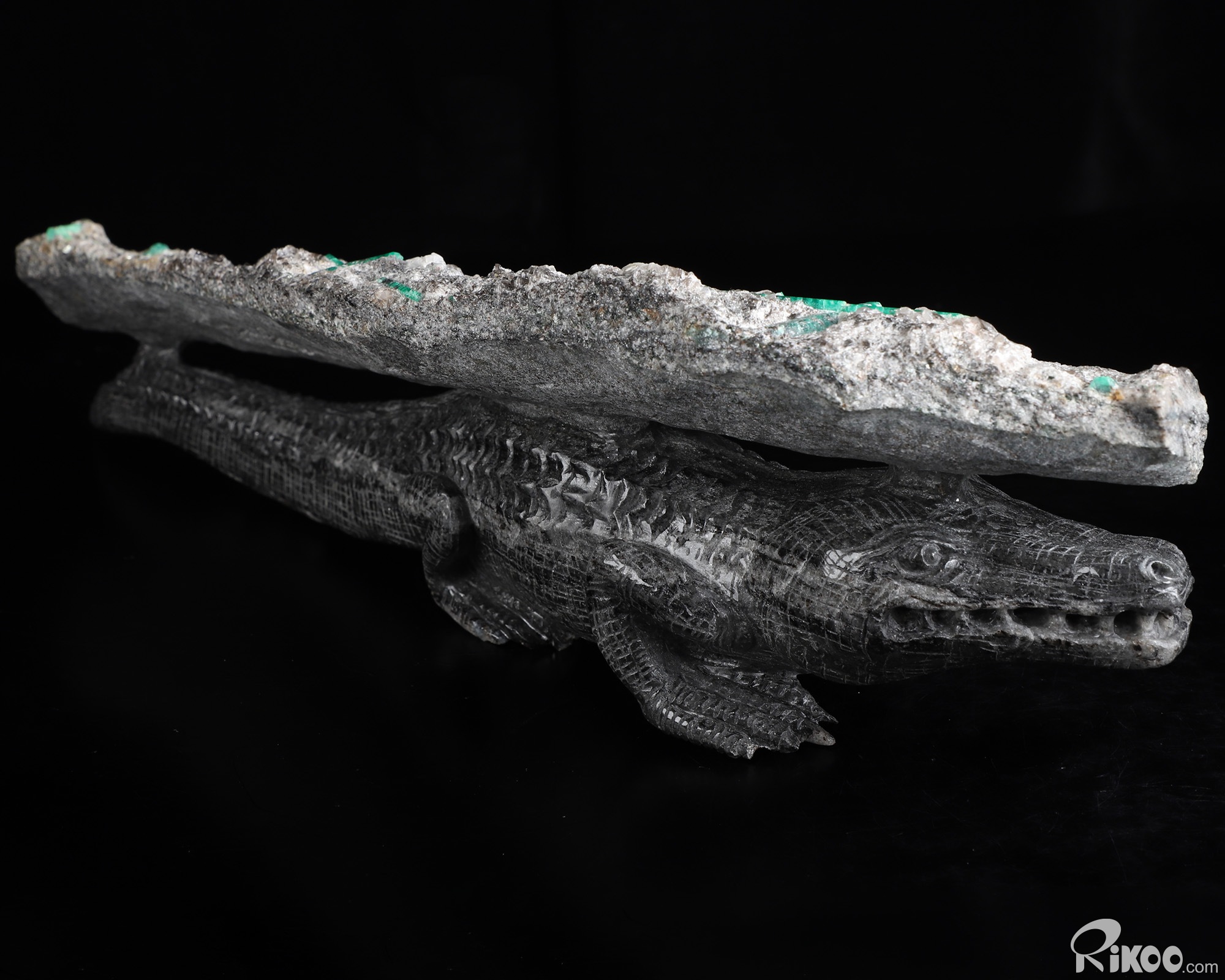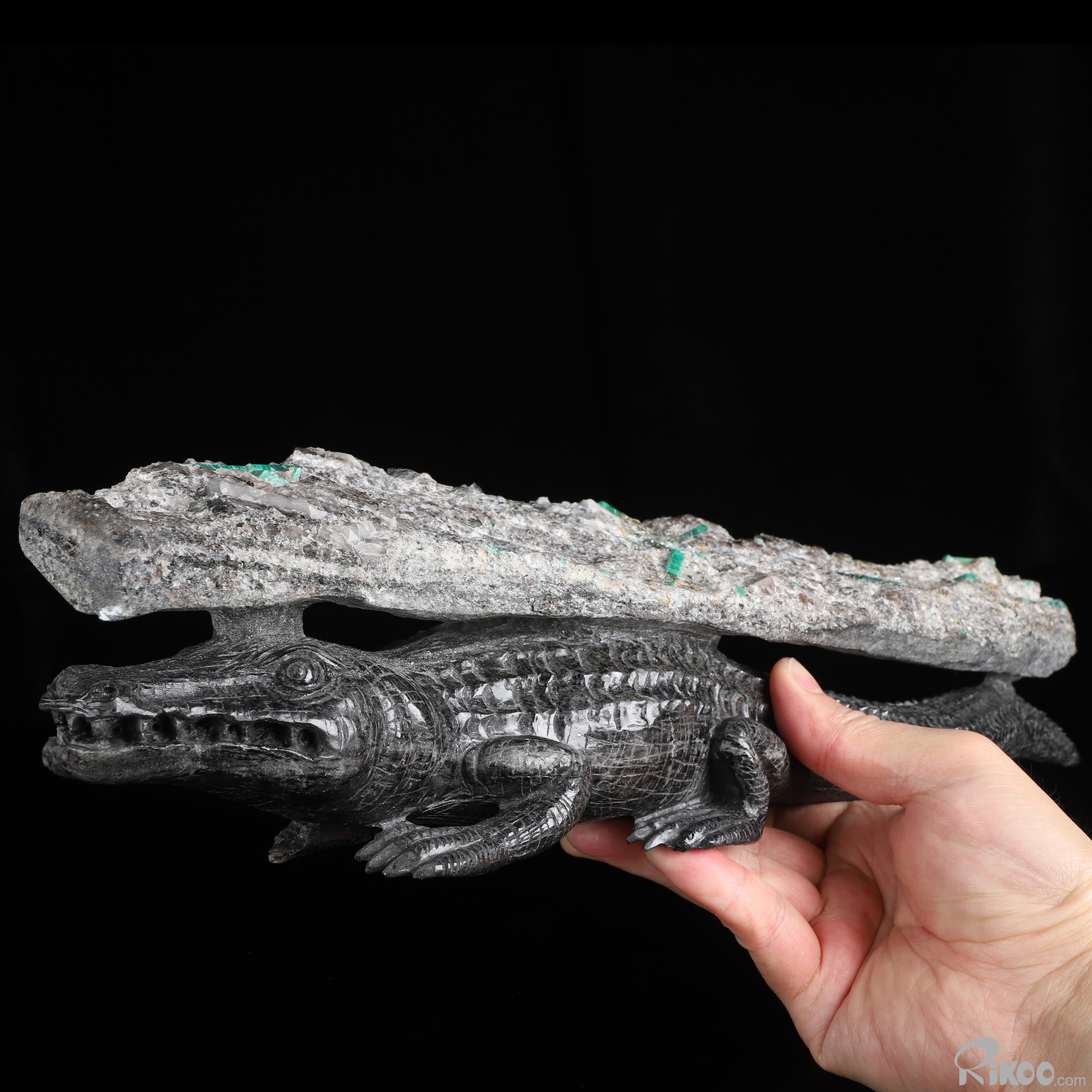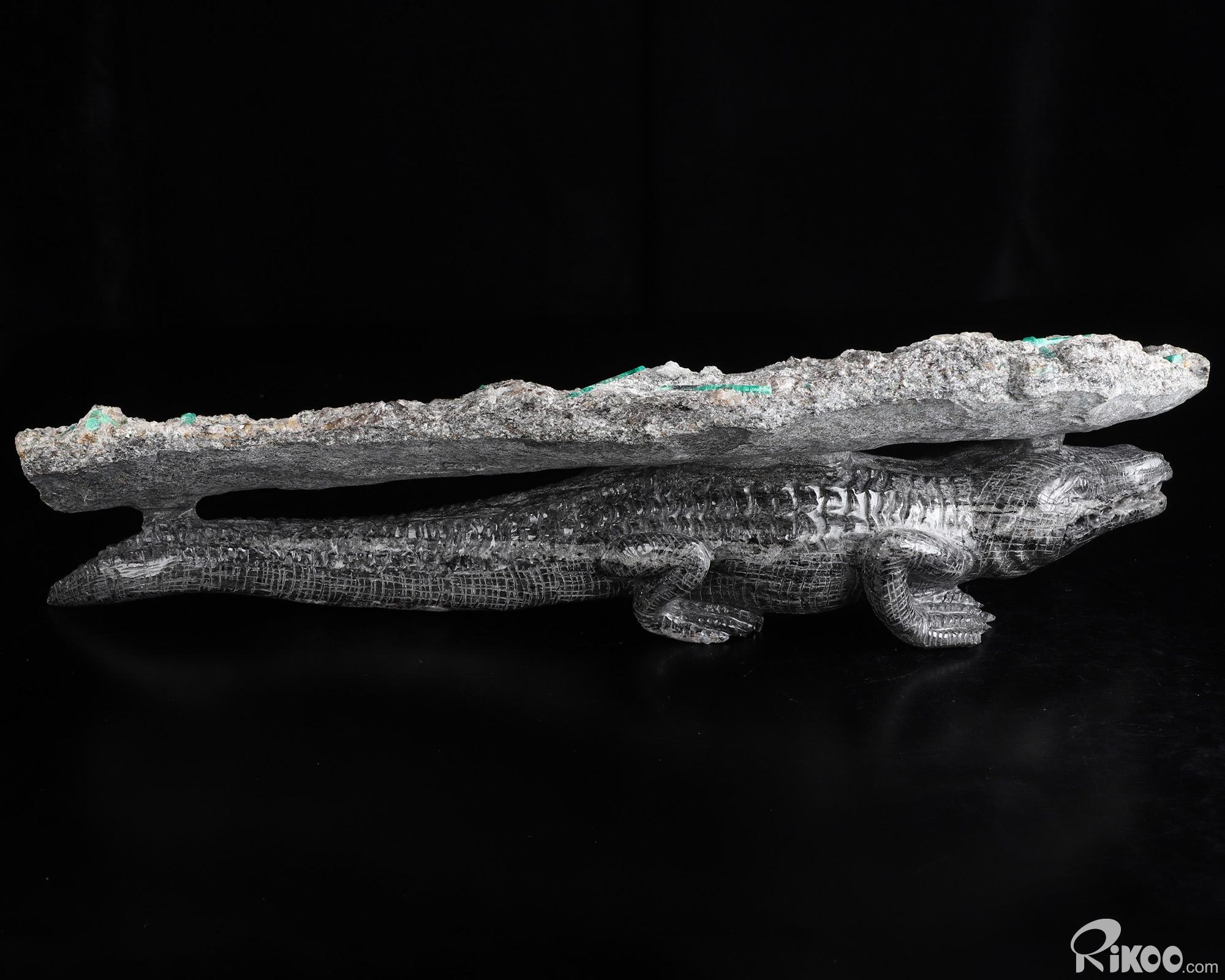 Gemstone 15.2" Emerald Hand Carved Crystal Crocodile Sculpture, Crystal Healing