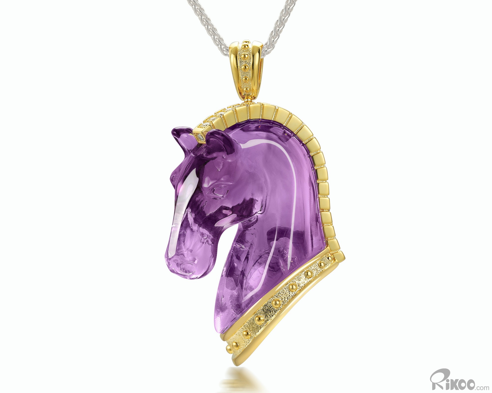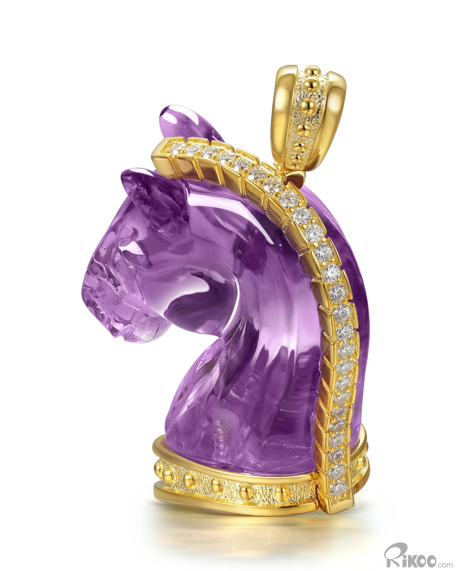 You are looking at an Amethyst Horse Pendant. The Pendant is 2 inches long.