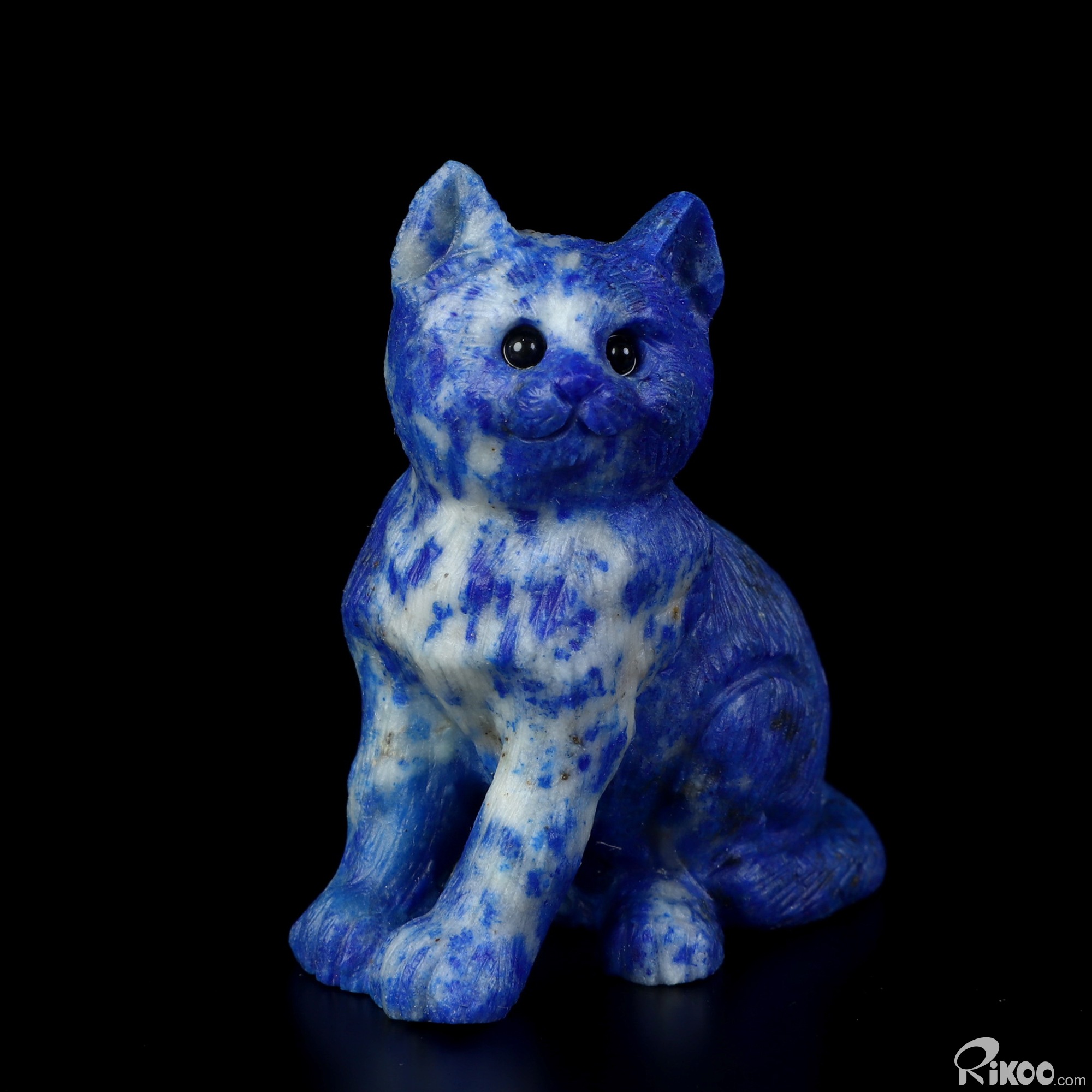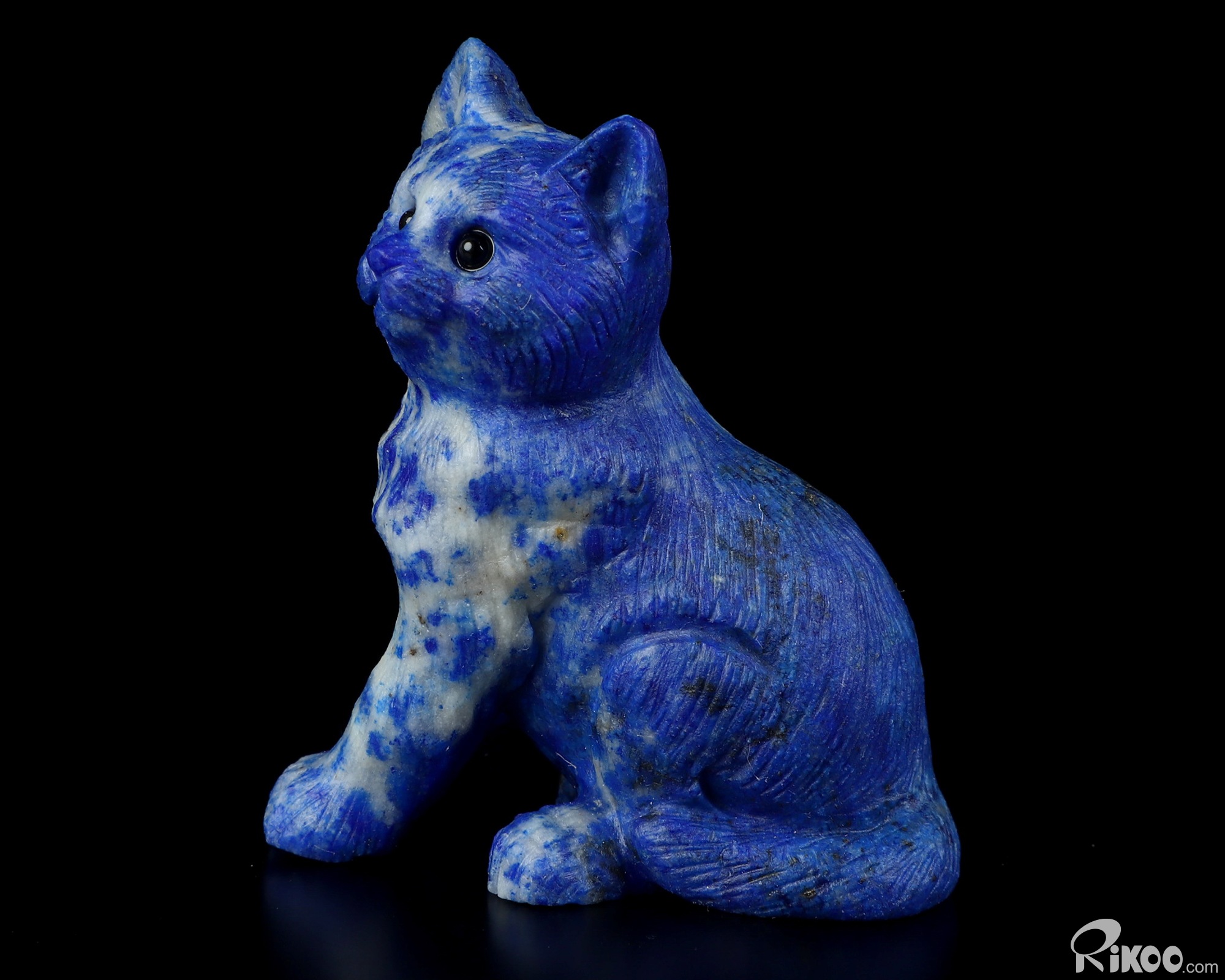 Gemstone 2.0" Lapis Lazuli Hand Carved Crystal Cat Sculpture, Crystal Healing