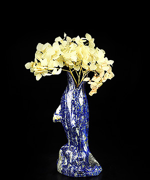 Solid, med. to dk. blue. In meditation, opens Brow Chakra: higher guidance, intuition, connection to higher self, overview, decisions for good of all. Organizes, quiets mind. Opens Throat/Thyroid Chakra: Self-expression, writing, creativity, dream insight, allows total awareness...Anxiety, restlessness, insomnia, autism, shyness, nervous system, depression, serenity, self-acceptance; MS, speech, hearing, pituitary, DNA, lymph, inflammation, pain (especially head), protection stone. Shelters the wearer like a shield. . Extraordinarily deep blue stone often flecked with Pyrite. Can also be mottled with white Calcite. Most is currently mined in the USSR and Afghanistan. Beneficial to the respiratory system, especially the throat and lungs, the cleansing organs, and the nervous system. A good stone for blood purification and for boosting the immune system. A powerful thought-amplifier and is helpful in aligning all the elements of the body and mind. Can increase psychic abilities and will open the third eye. Can guide you in teh direction of mental and spiritual purity. It should be worn as close to the throat as possible or at least above the diaphragm so that the energy of the wearer is drawn upward.