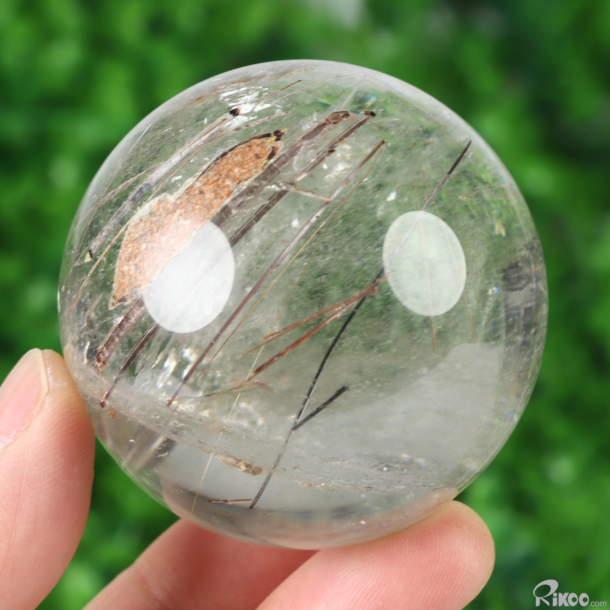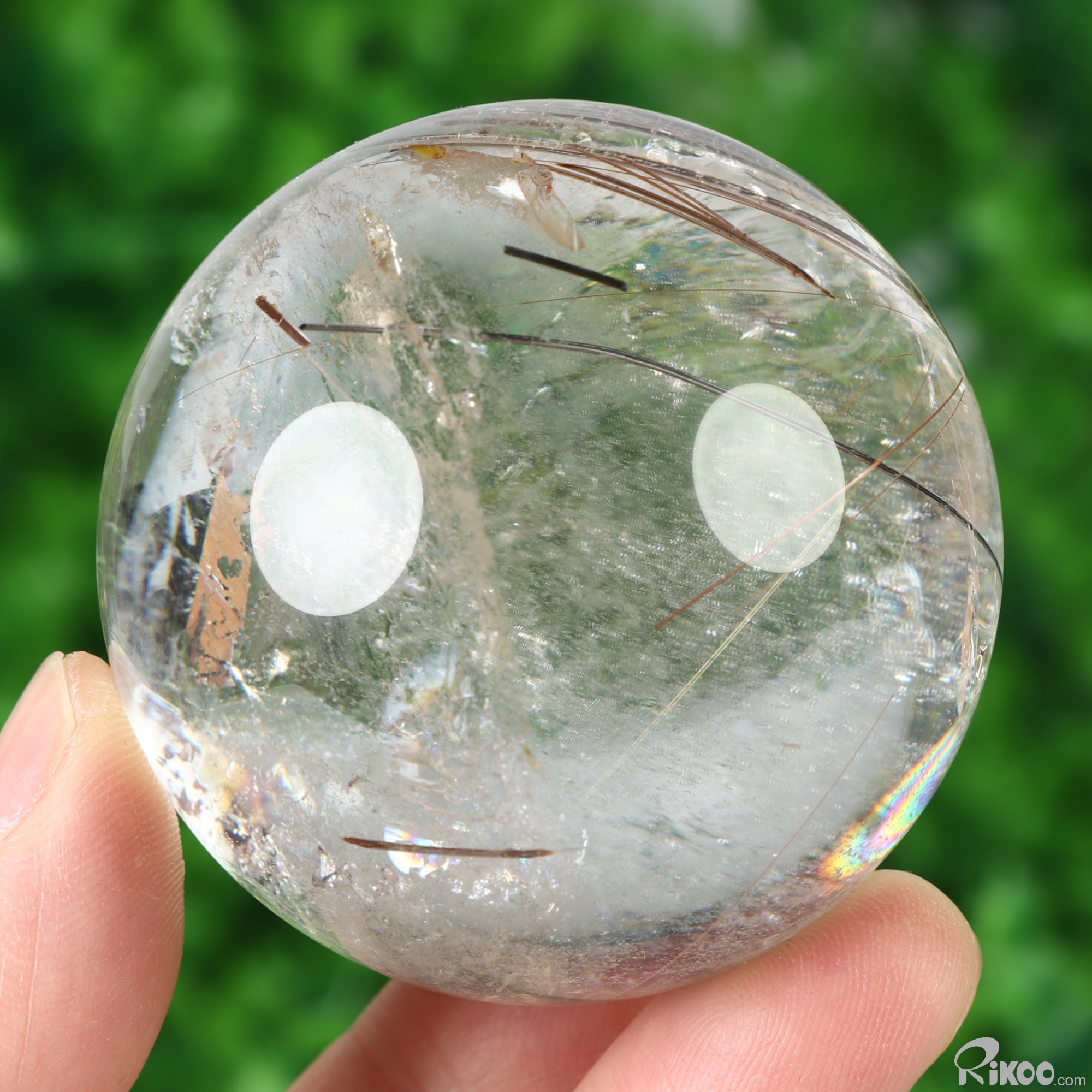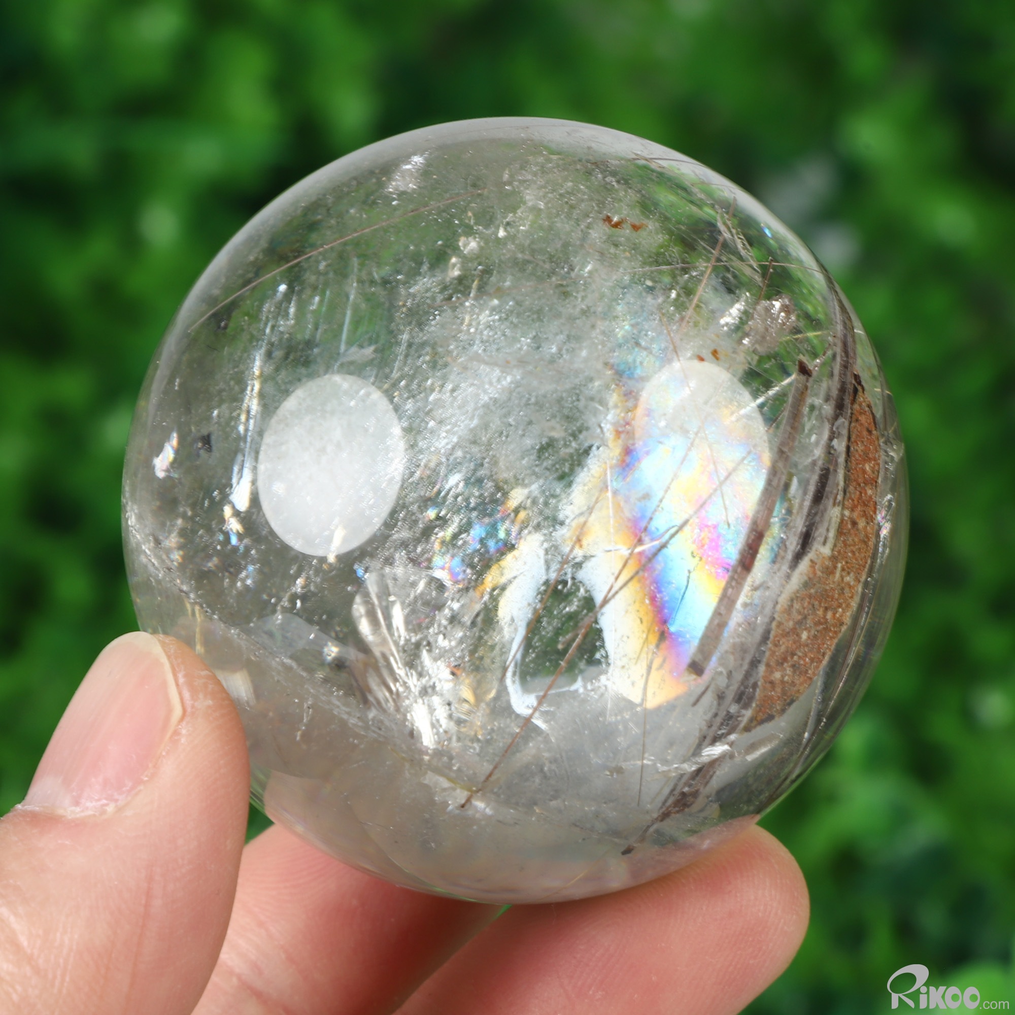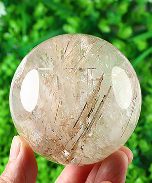 Gemstone 2.2" Rutilated Quartz Rock Crystal Hand Carved Crystal Ball/Sphere, Crystal Healing