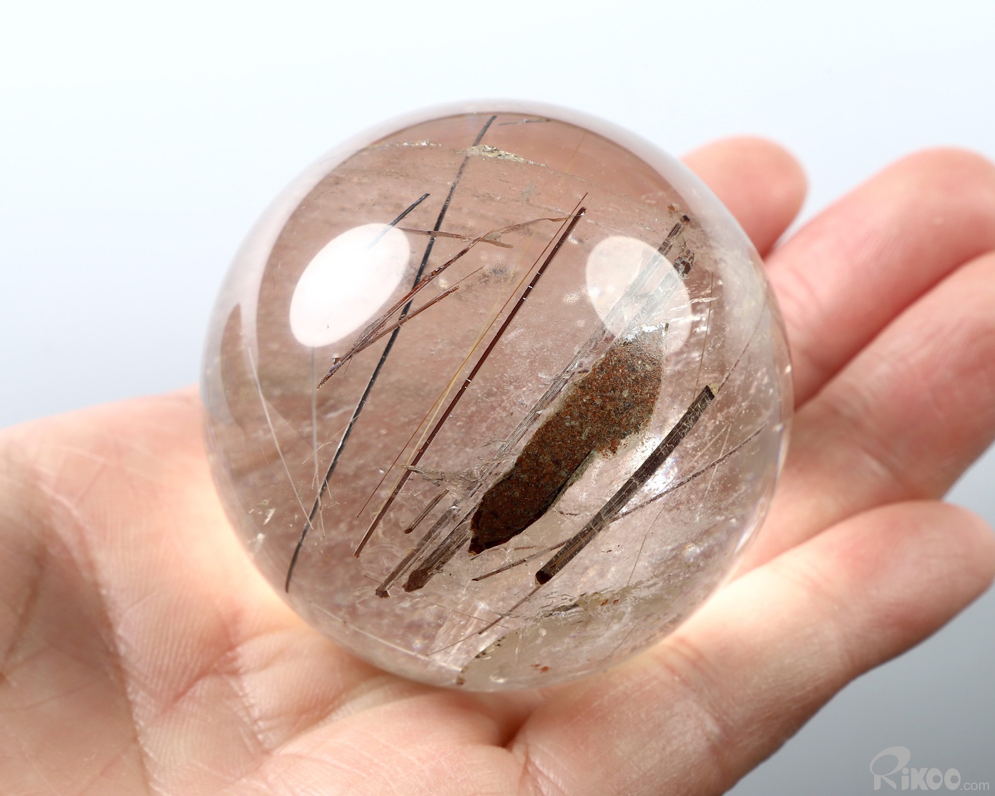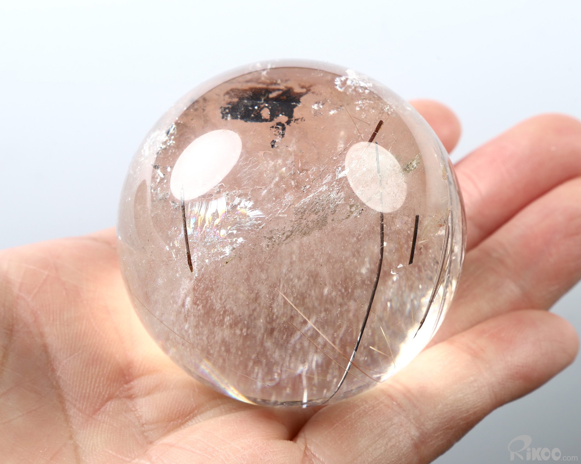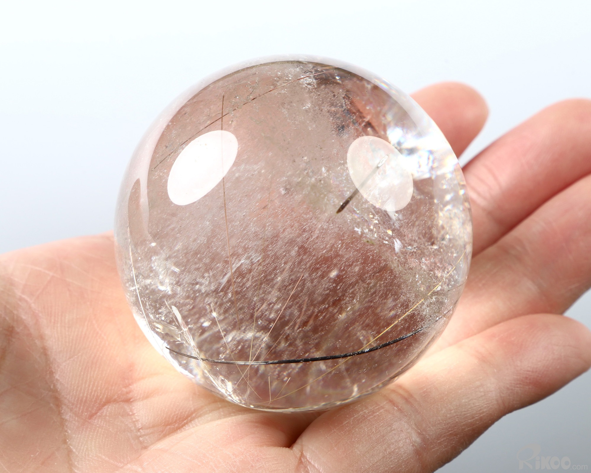 Gemstone 2.2" Rutilated Quartz Rock Crystal Hand Carved Crystal Ball/Sphere, Crystal Healing