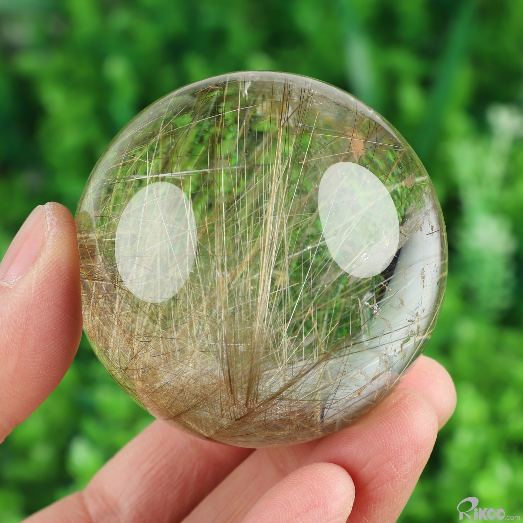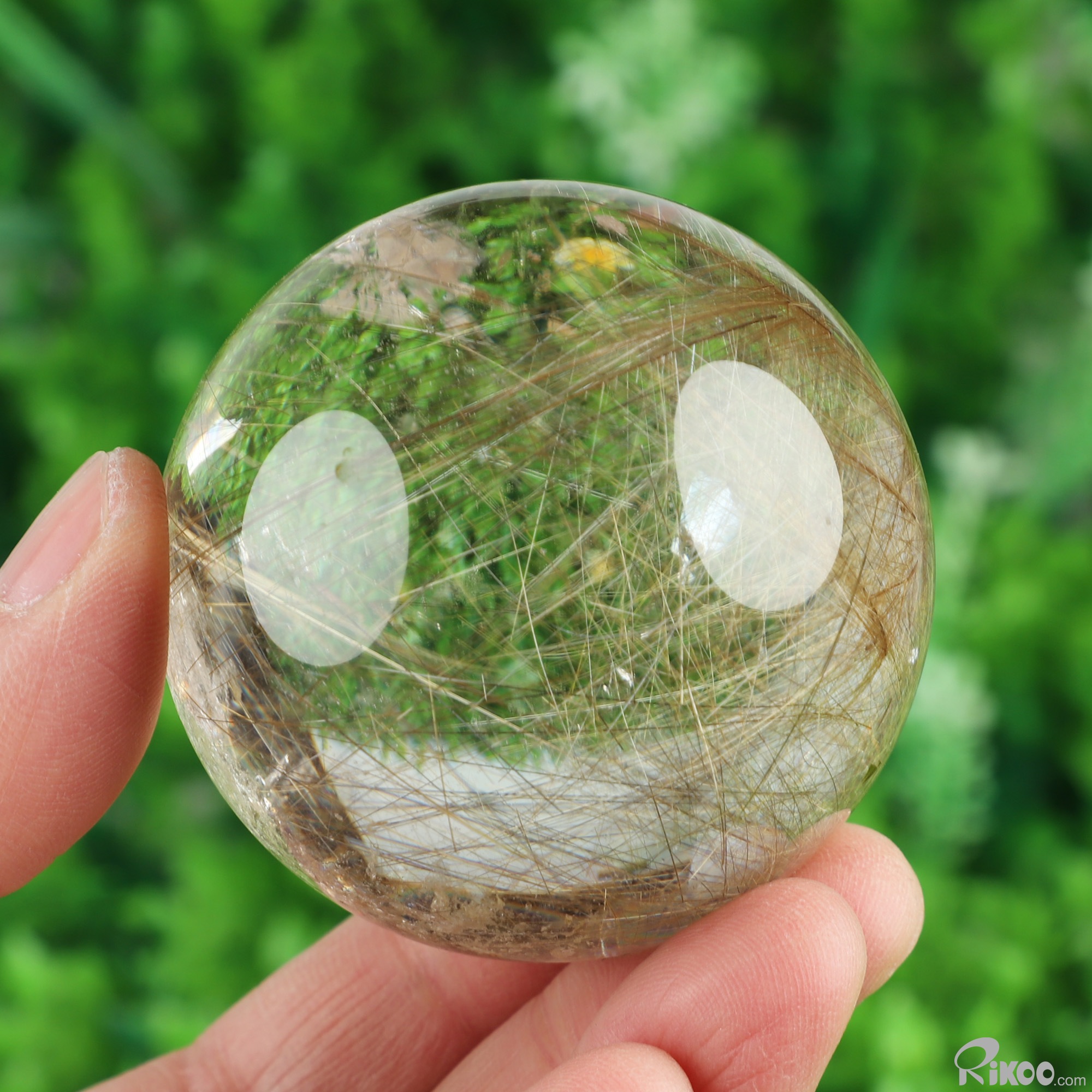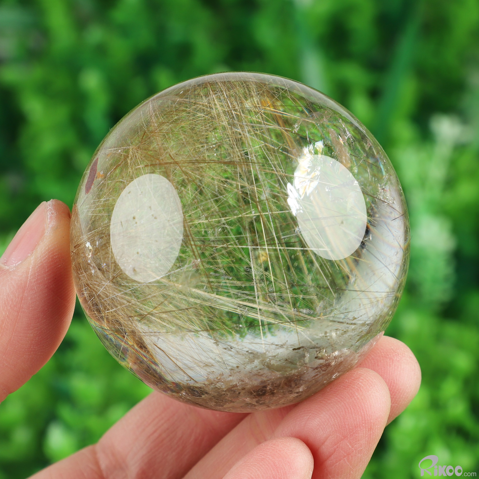 Gemstone 2.2" Rutilated Quartz Rock Crystal Hand Carved Crystal Ball/Sphere, Crystal Healing