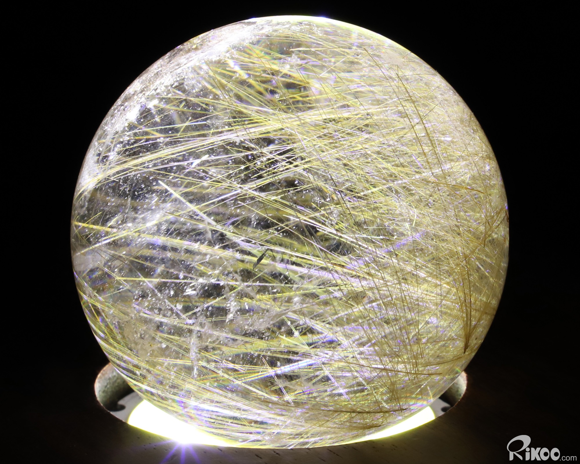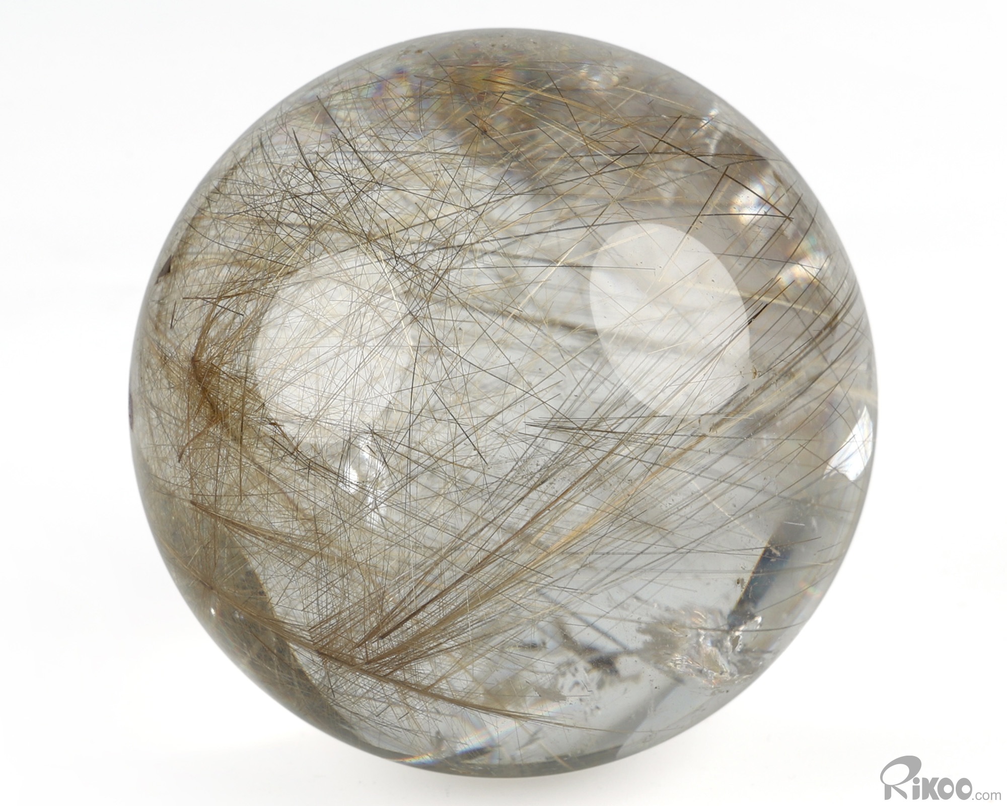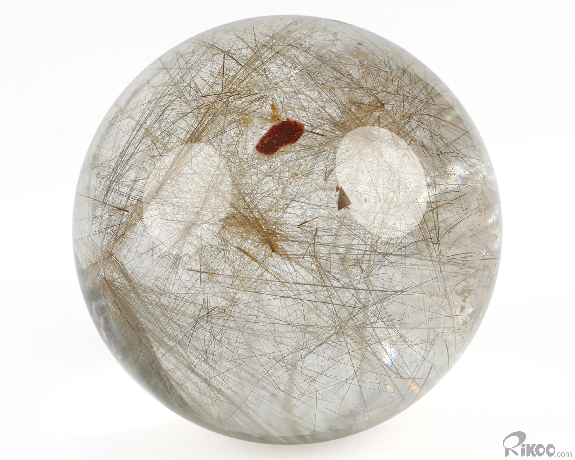 Gemstone 2.2" Rutilated Quartz Rock Crystal Hand Carved Crystal Ball/Sphere, Crystal Healing