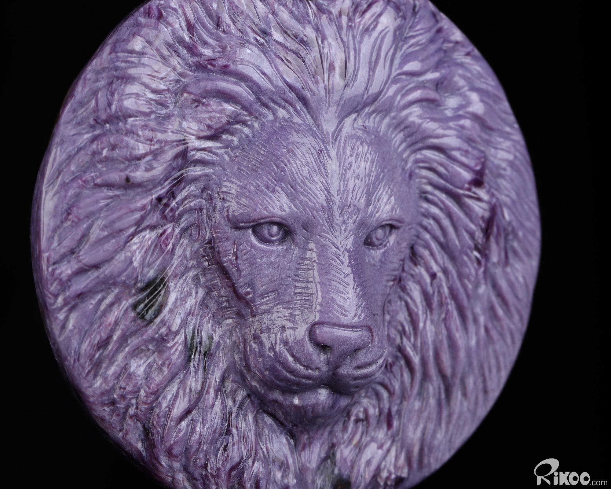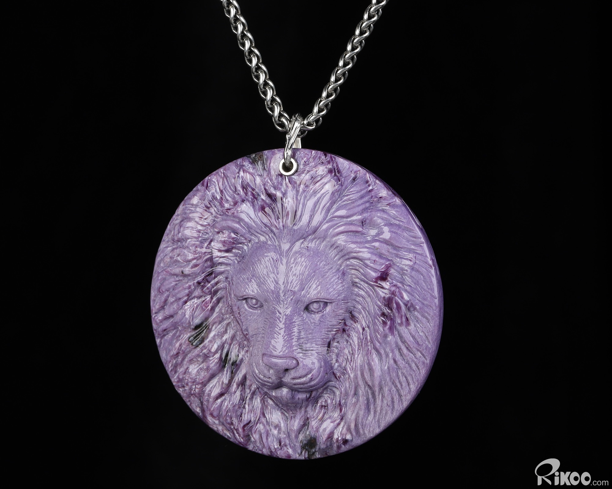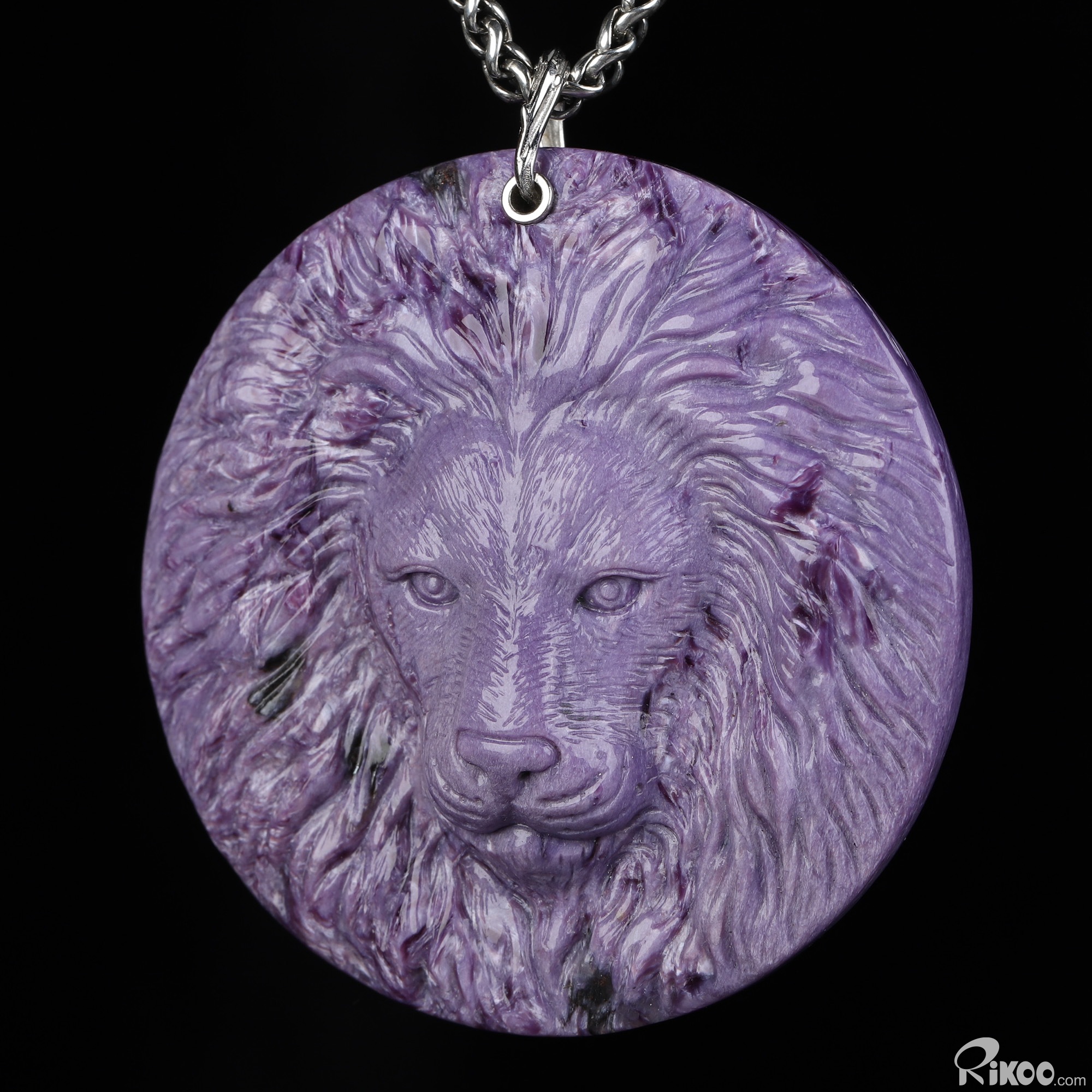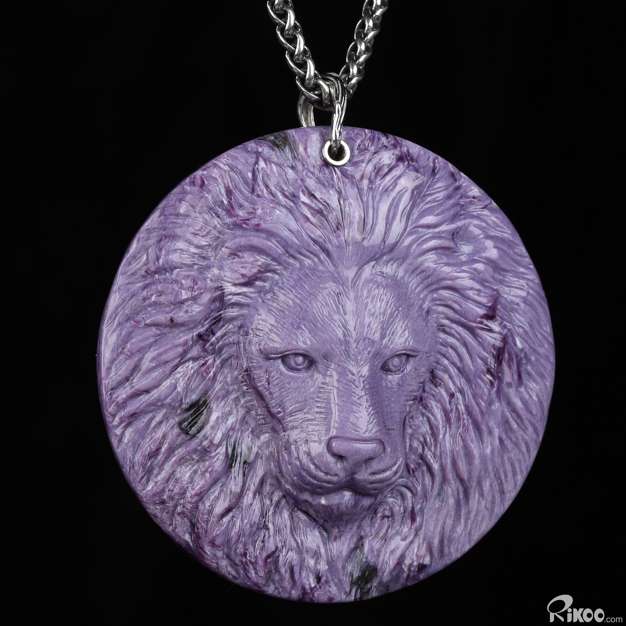 Gemstone 2.3" Russian Charoite Hand Carved Crystal Lion Necklace, Crystal Healing